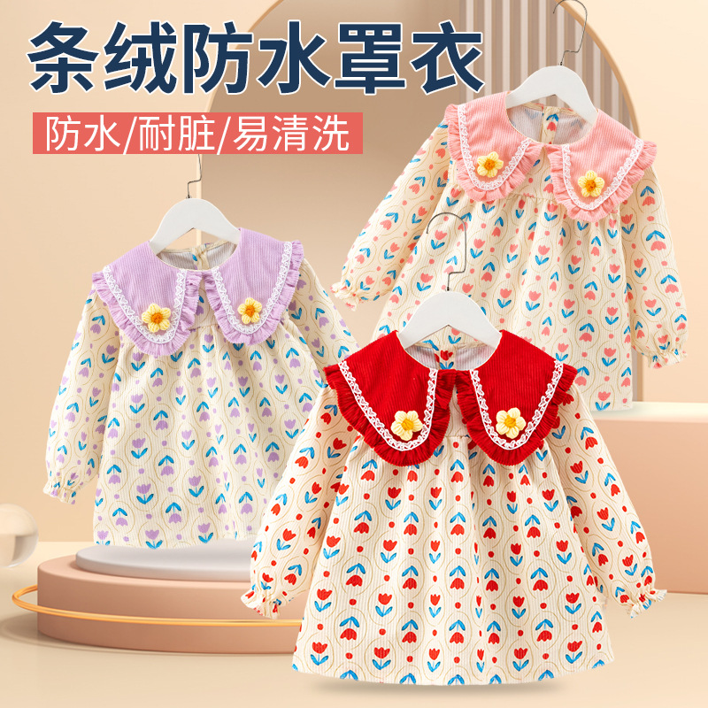 어린이 공주 치마 커버 옷 아기 식사 턱받이 가을과 겨울 방수 앞치마 긴 소매 안티 드레싱 소녀의 서양식 의류