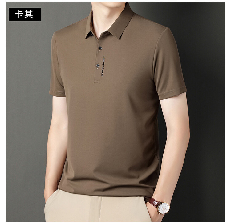 跨境外贸冰丝短袖T恤男士夏季薄款简约百搭翻领弹力男式Polo衫哈