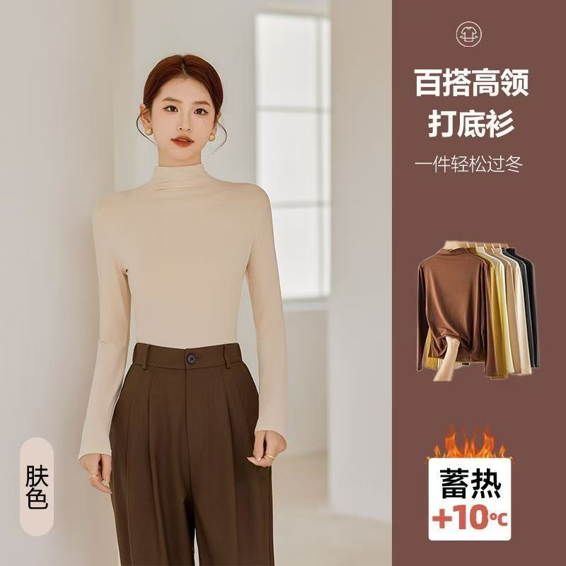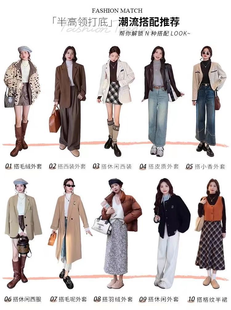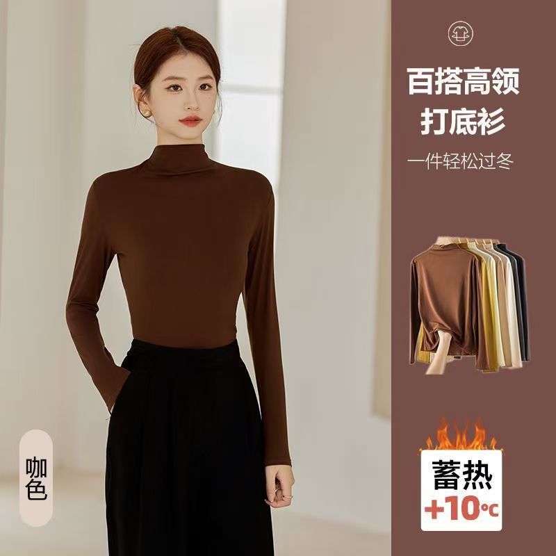 • 【XXL 여성용 얇은 반폴라넥】 커피색