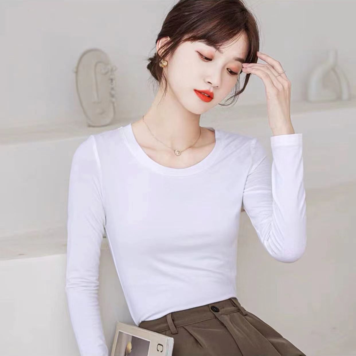 • [XXL 여성용 얇은 라운드넥] 화이트