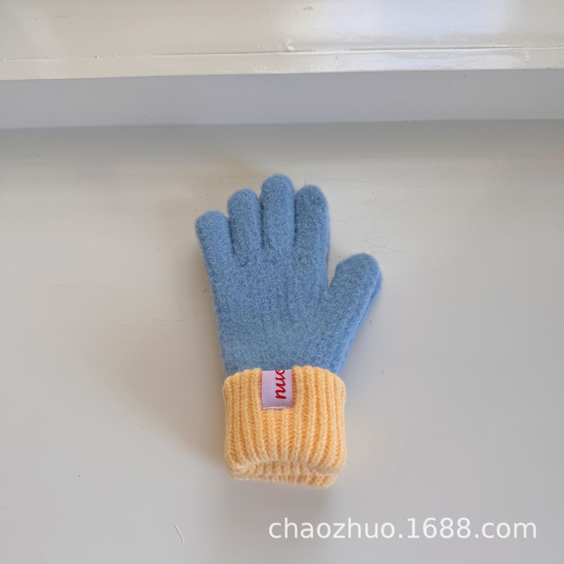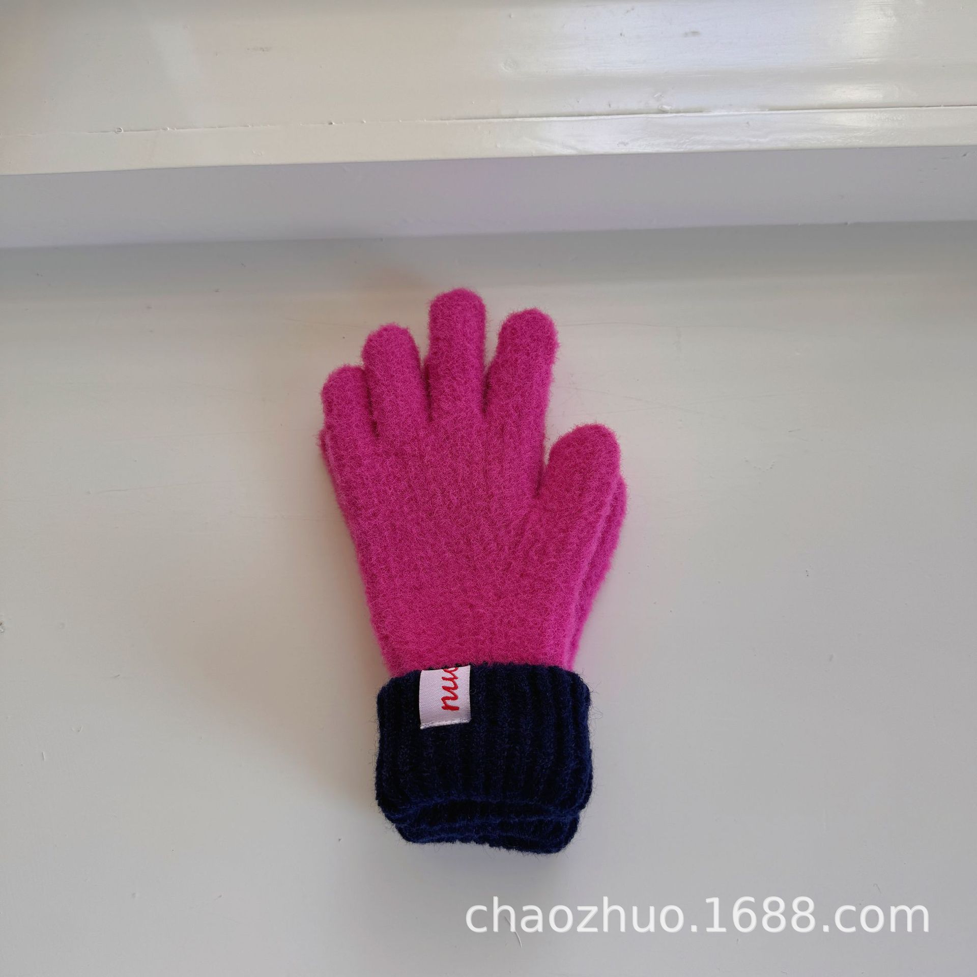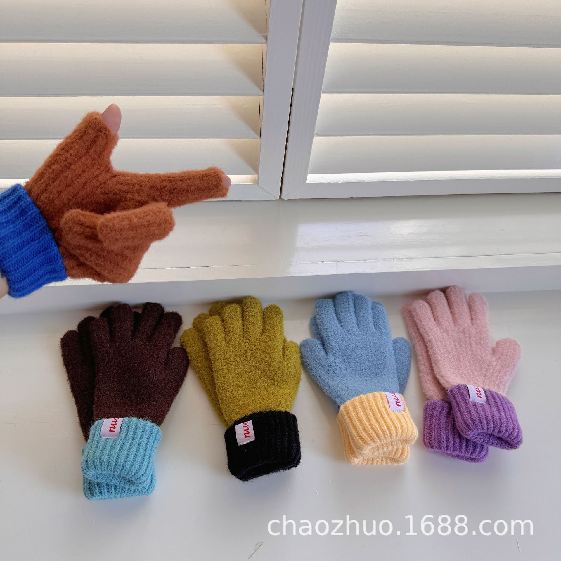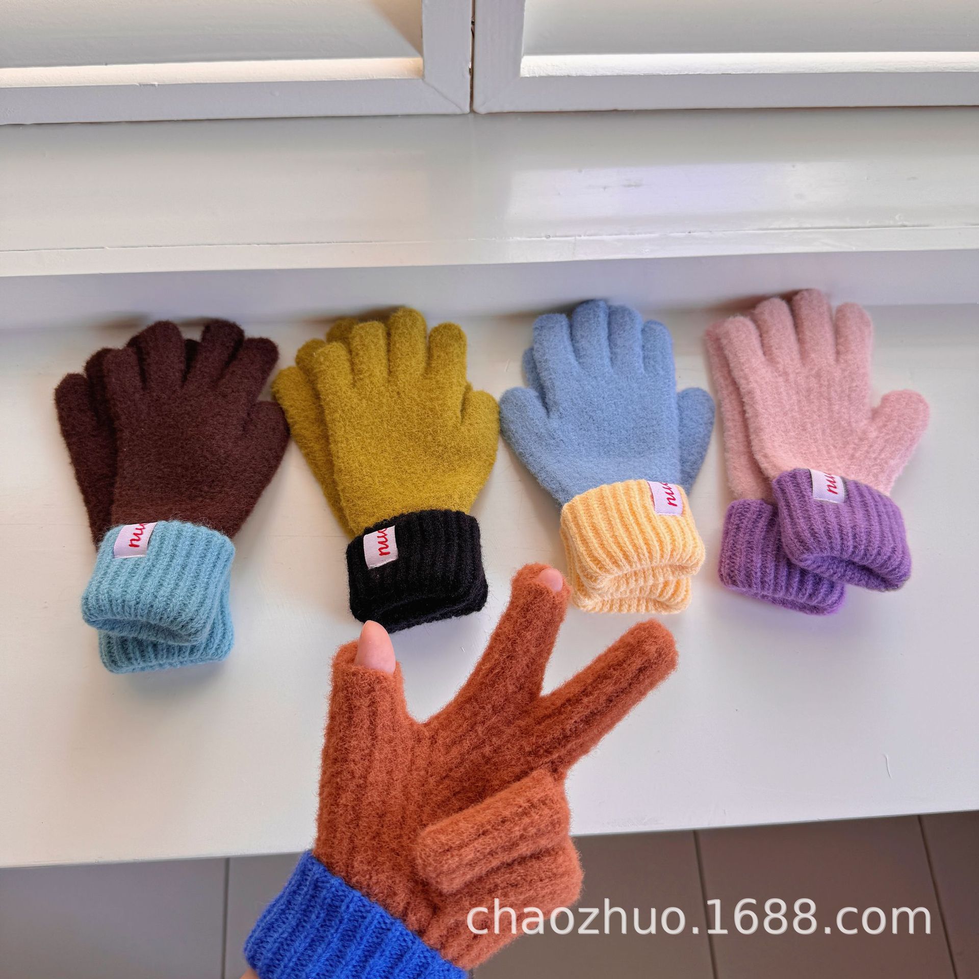겨울 컬러블록 펠트 벨벳 따뜻한 다섯손가락 장갑 어린이용 패셔너블 겨울 장갑스토어 가기