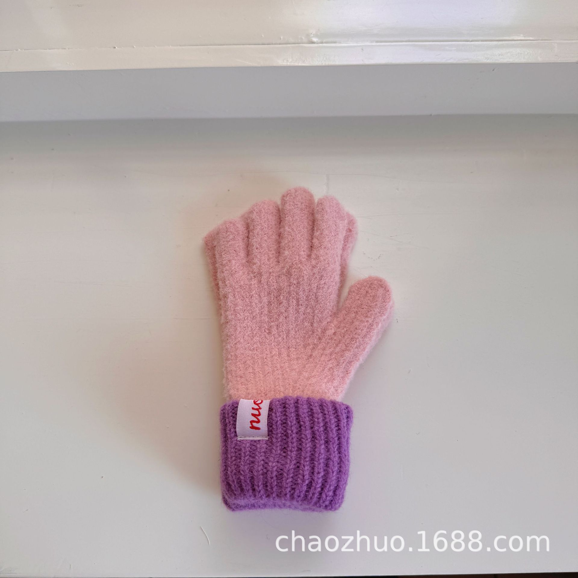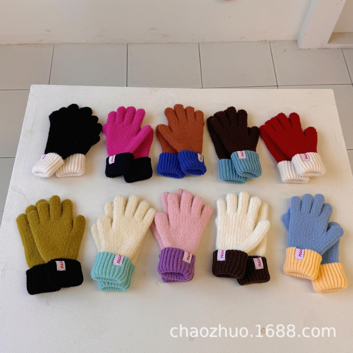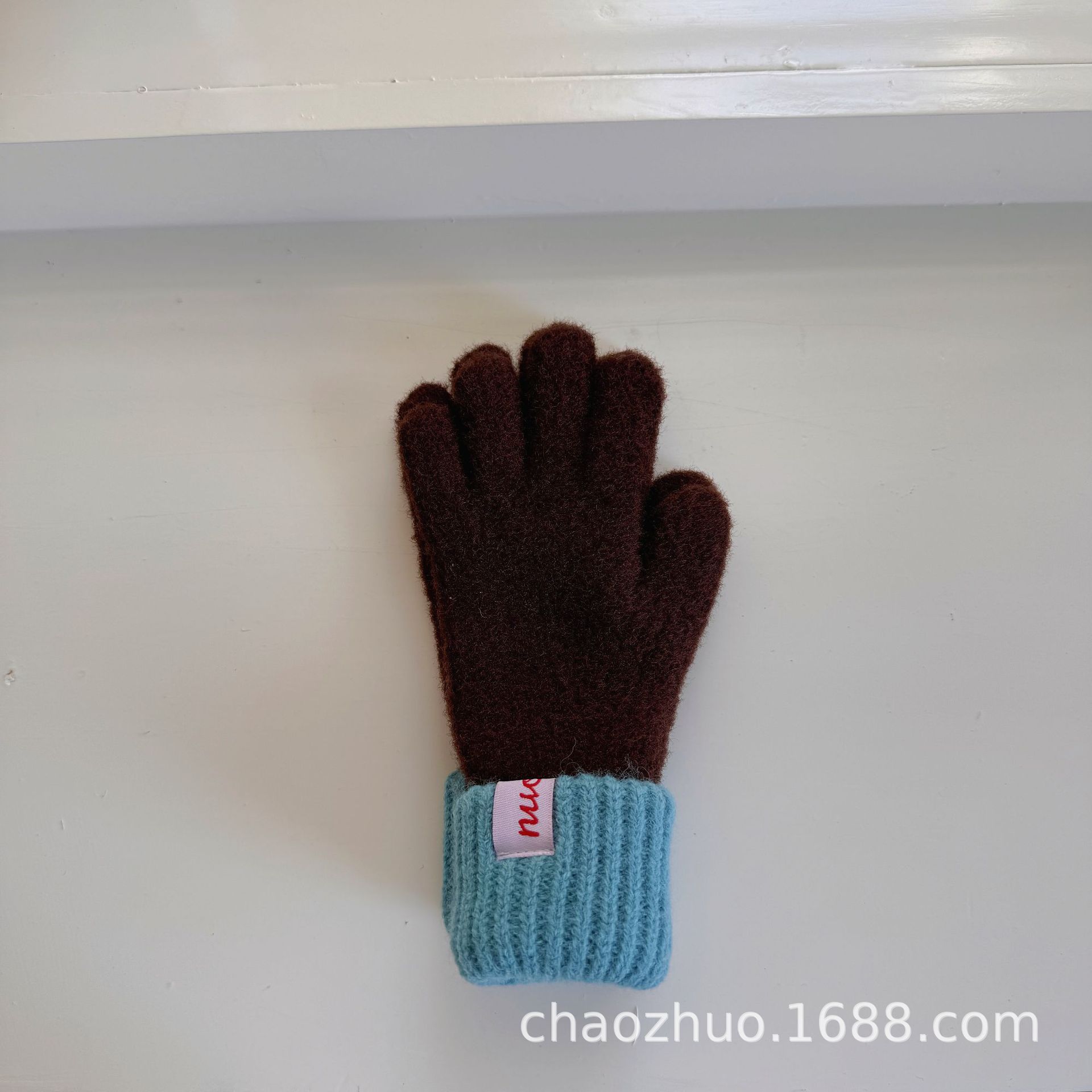 겨울 컬러블록 펠트 벨벳 따뜻한 다섯손가락 장갑 어린이용 패셔너블 겨울 장갑스토어 가기