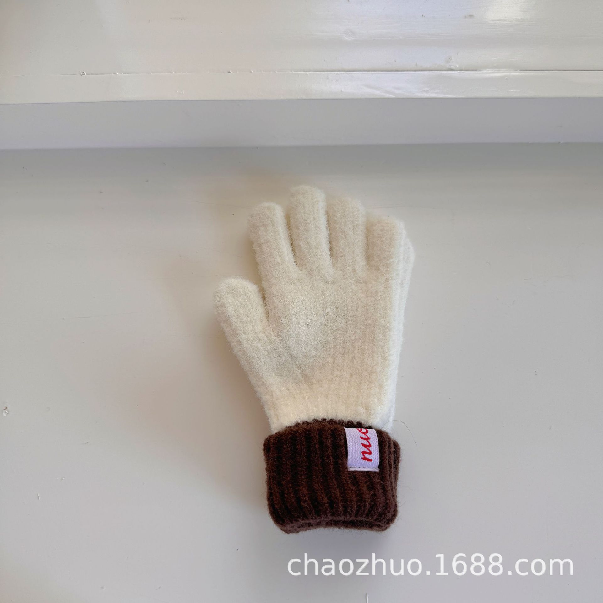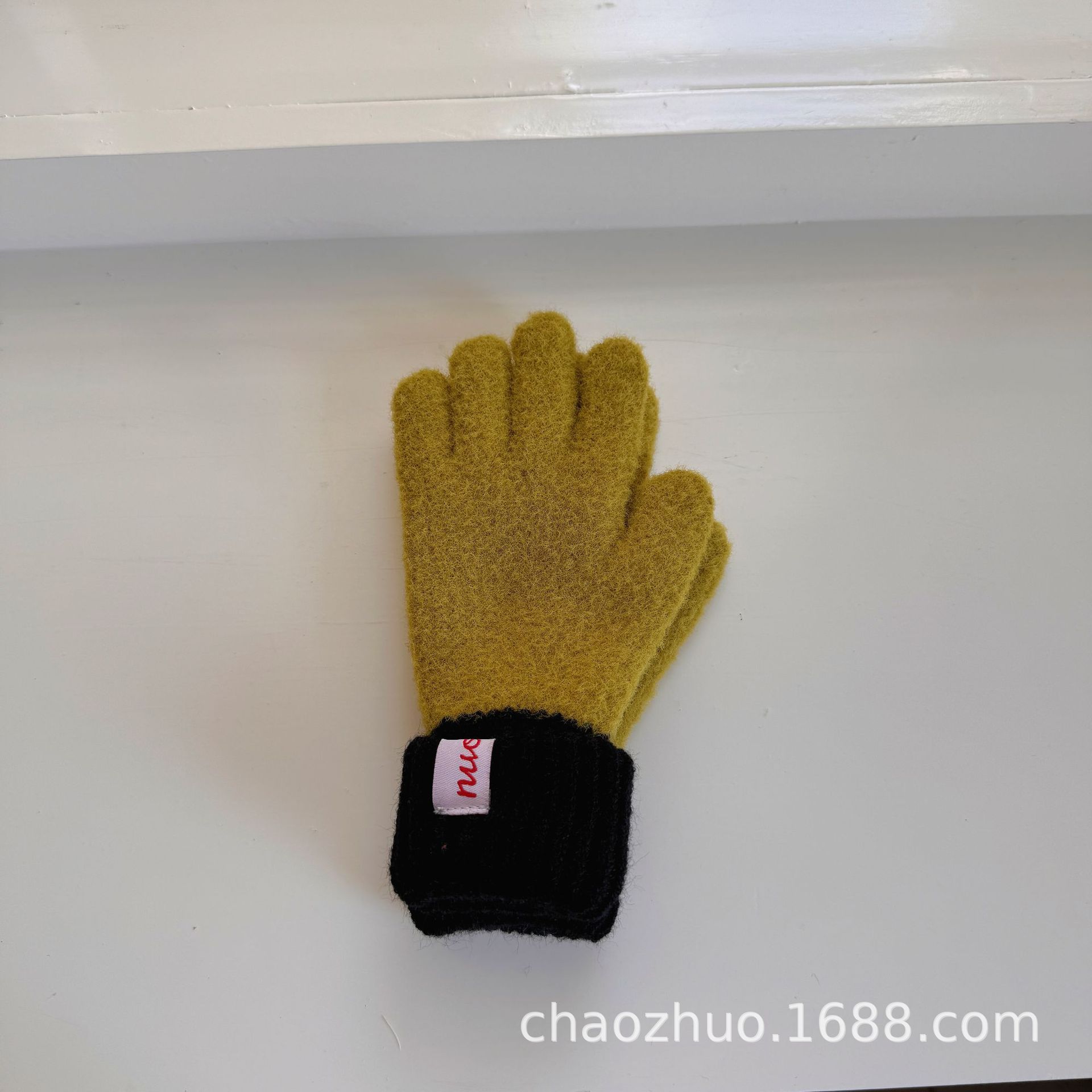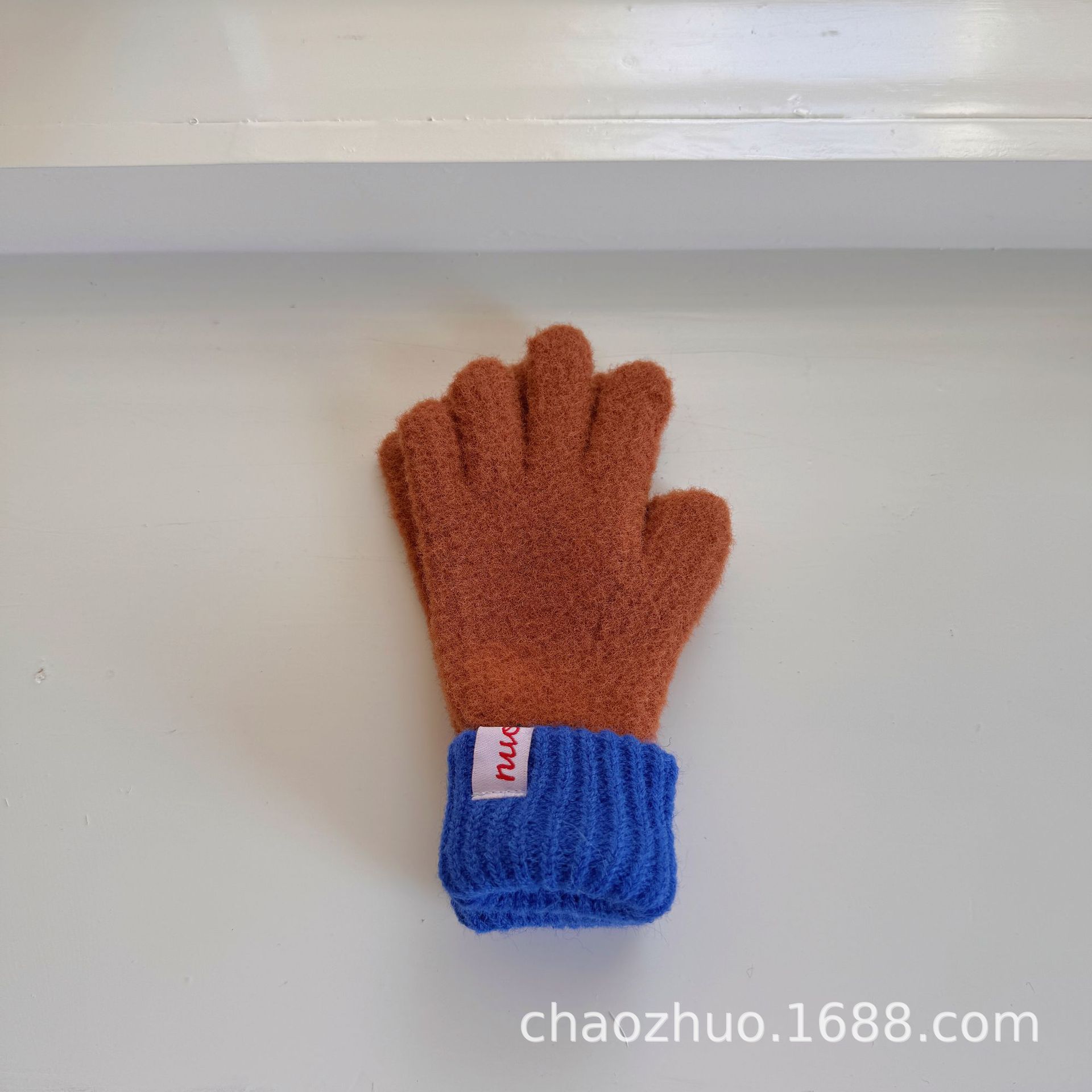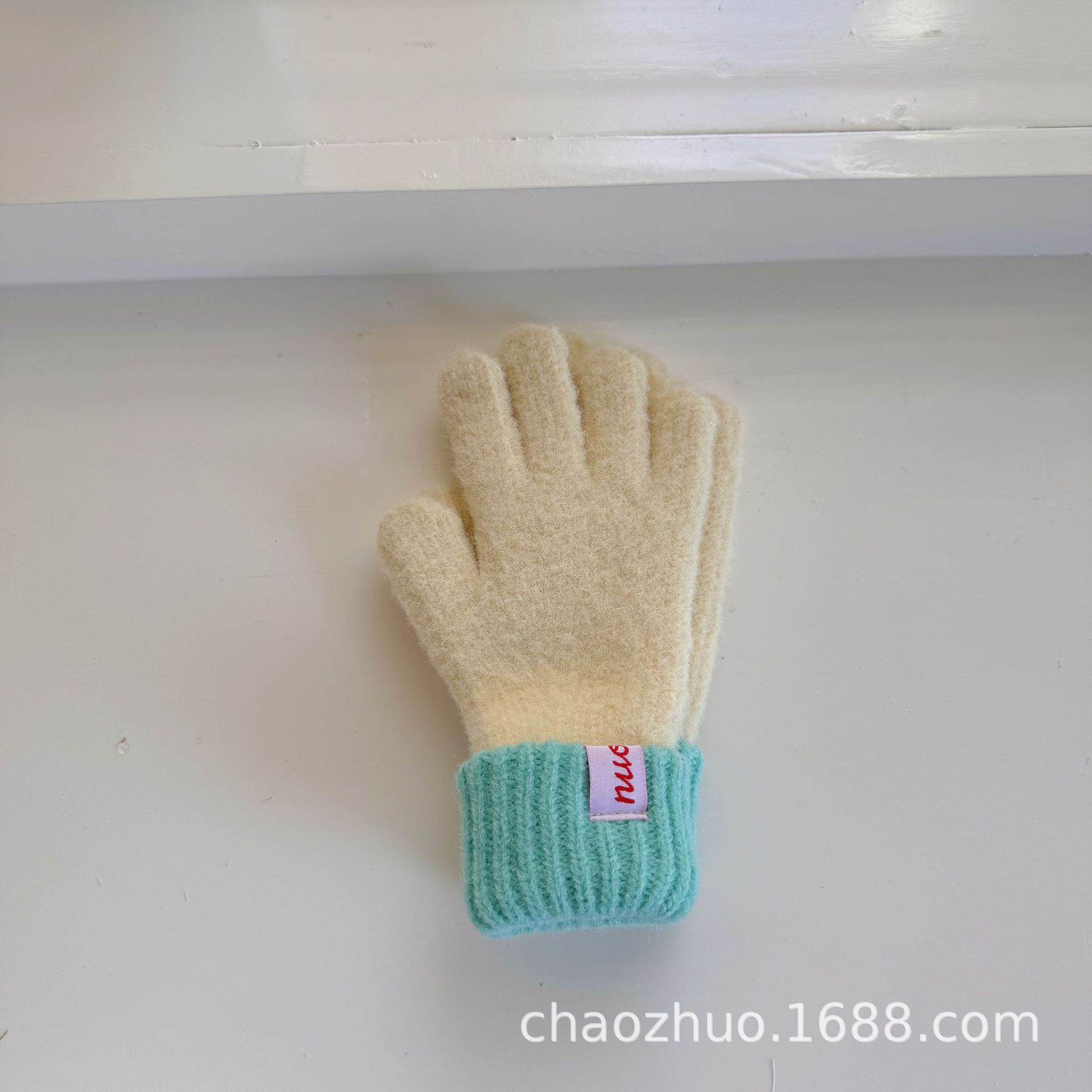 겨울 컬러블록 펠트 벨벳 따뜻한 다섯손가락 장갑 어린이용 패셔너블 겨울 장갑스토어 가기