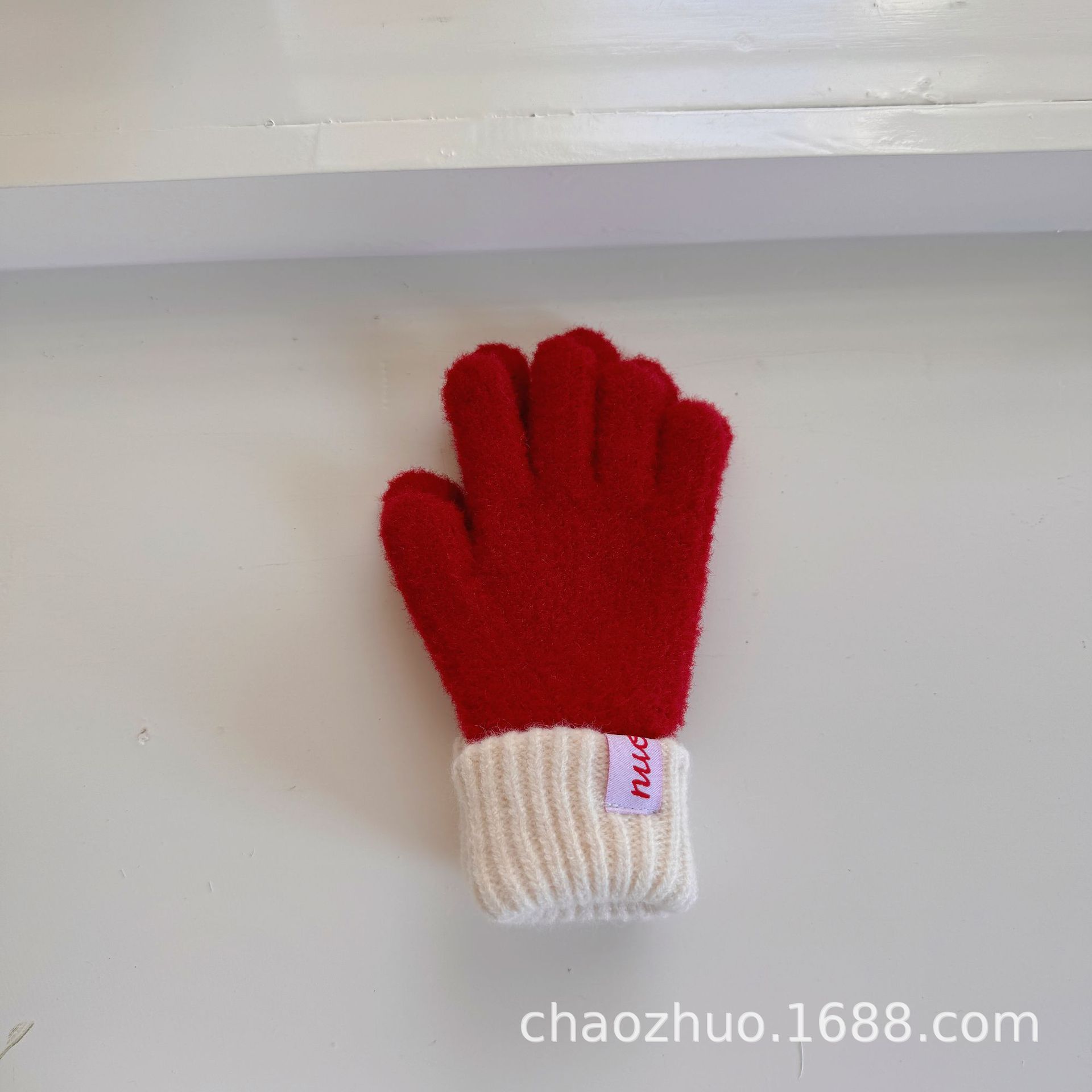 겨울 컬러블록 펠트 벨벳 따뜻한 다섯손가락 장갑 어린이용 패셔너블 겨울 장갑