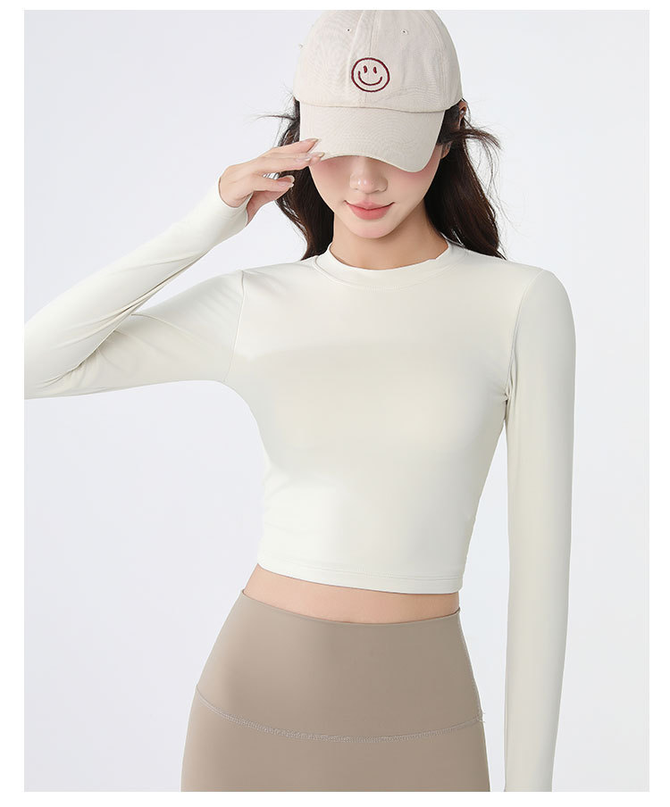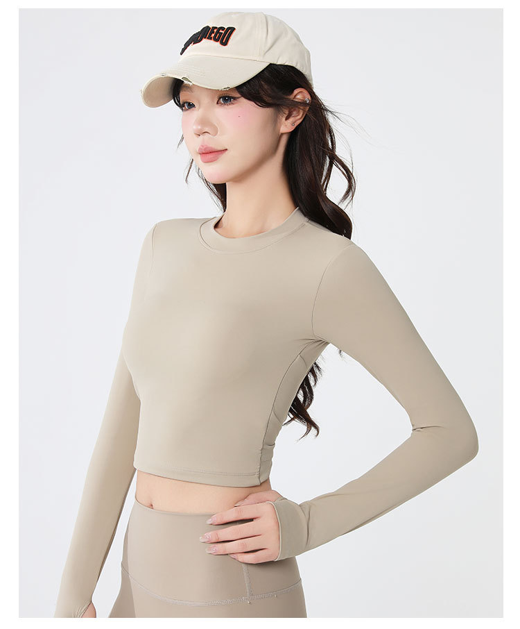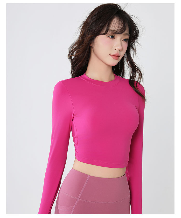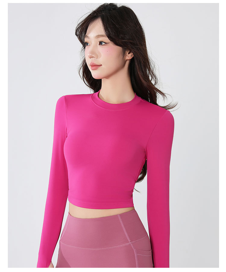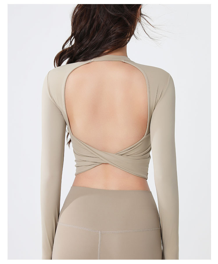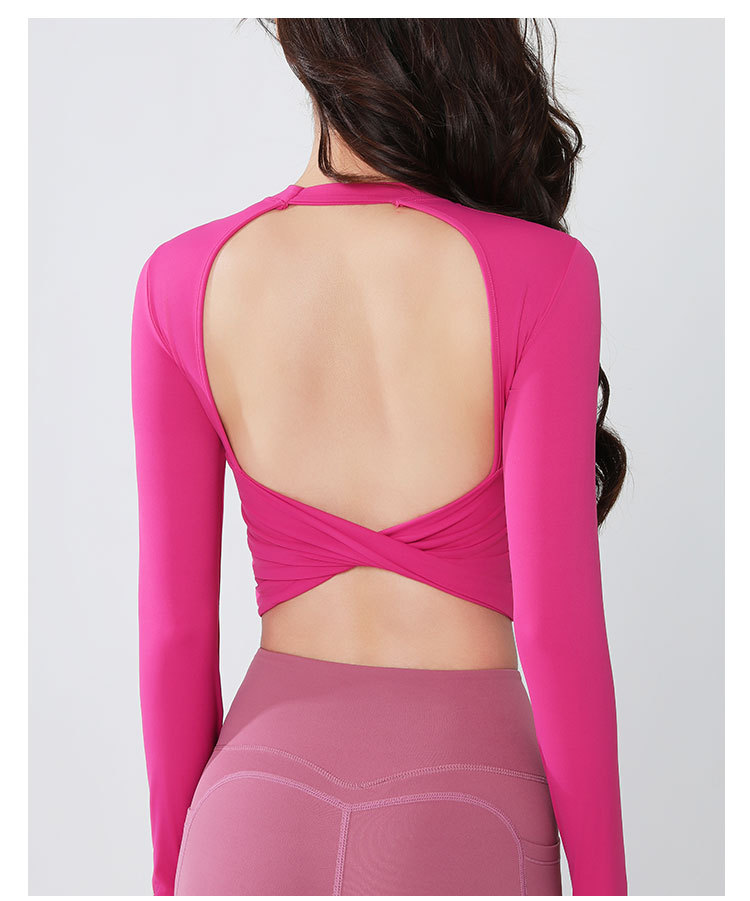 요가복 긴팔 여성 요가 상의 가슴 패드 포함 아름다운 등 라인 봄철 러닝 실내 운동 트레이닝 피트니스복 도매