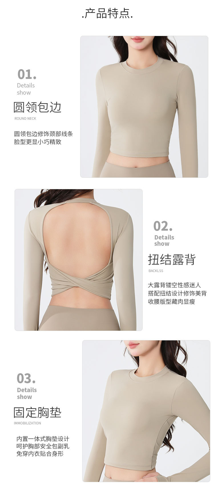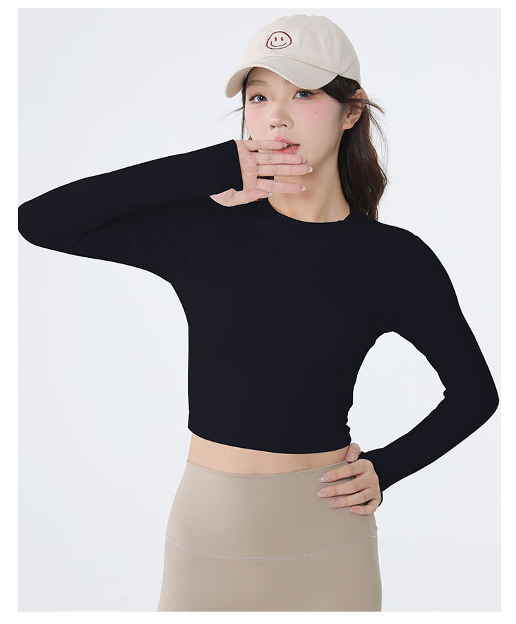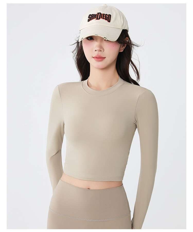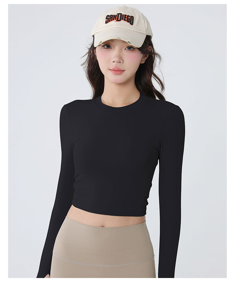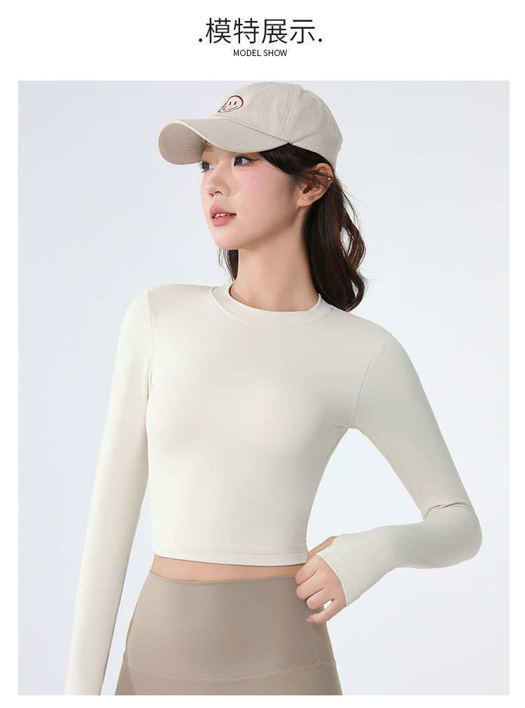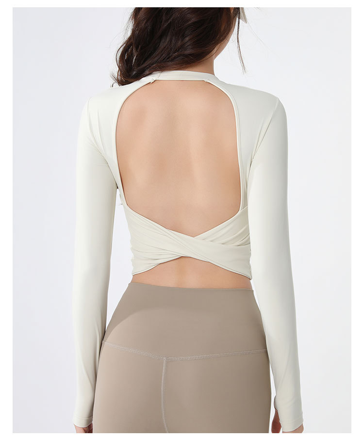 요가복 긴팔 여성 요가 상의 가슴 패드 포함 아름다운 등 라인 봄철 러닝 실내 운동 트레이닝 피트니스복 도매스토어 가기