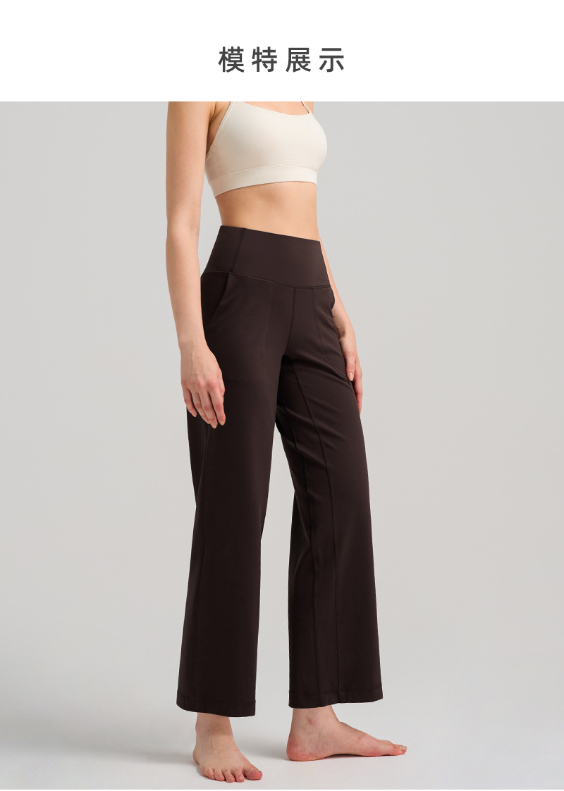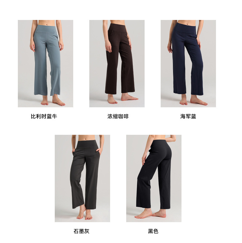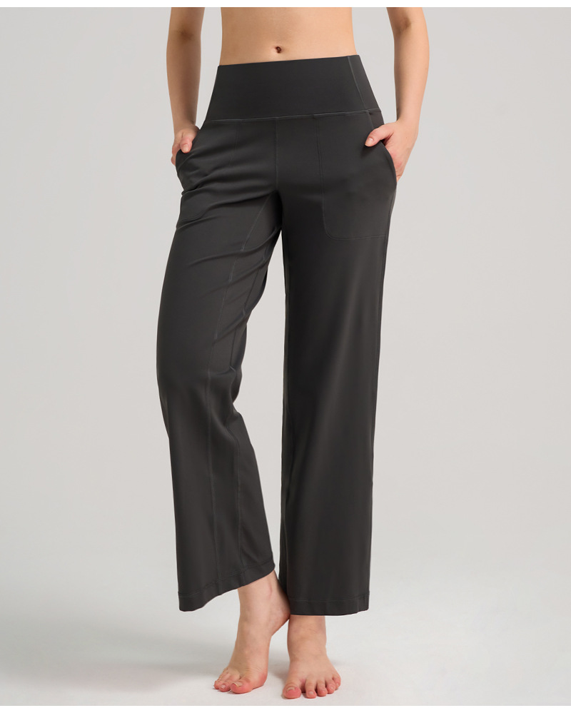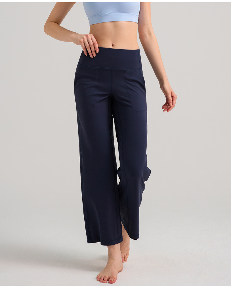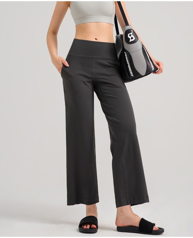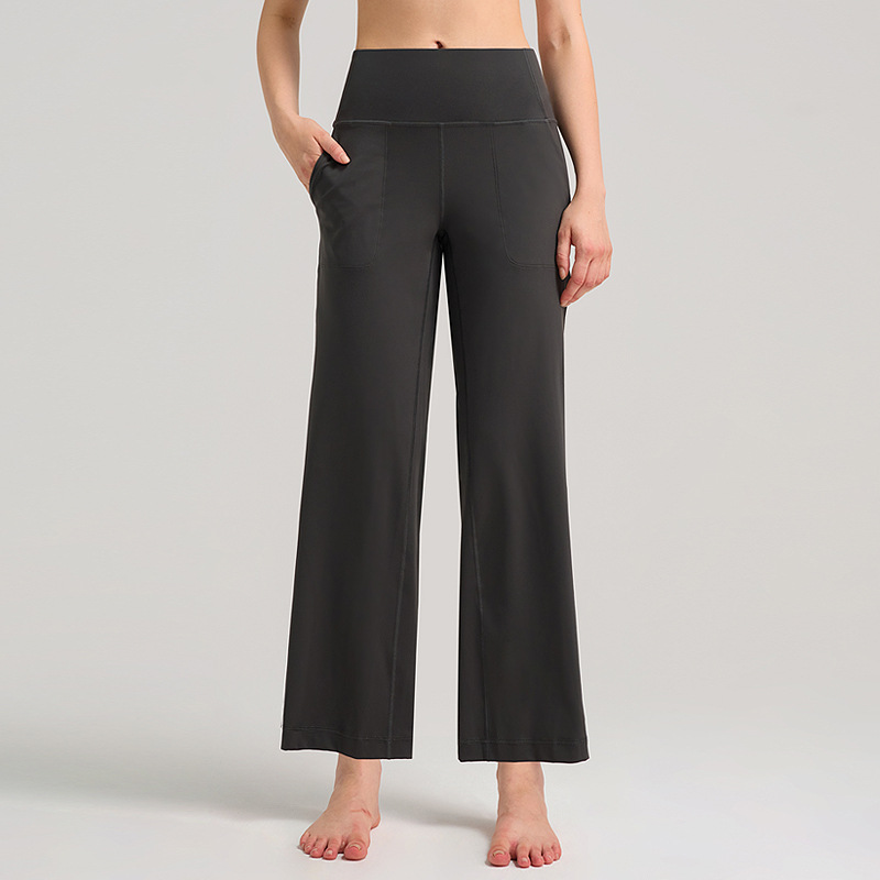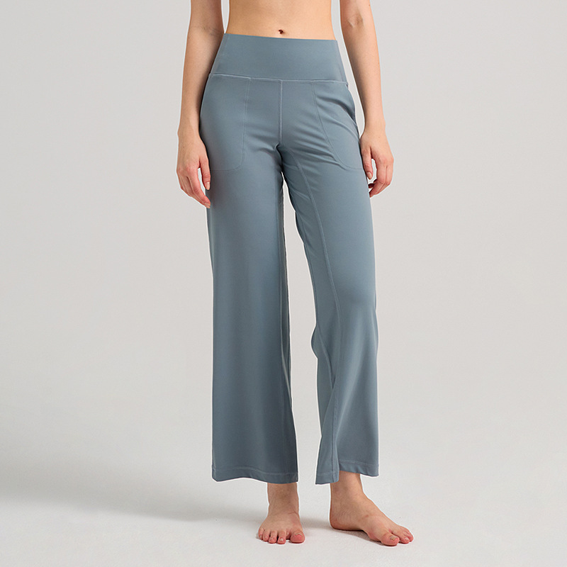 INFLACHI 와이드 레그 스포츠 바지 여성용 스트레이트 루즈 하이 웨이스트 캐주얼 바지 누드 통기성 요가 피트니스 바지 28"