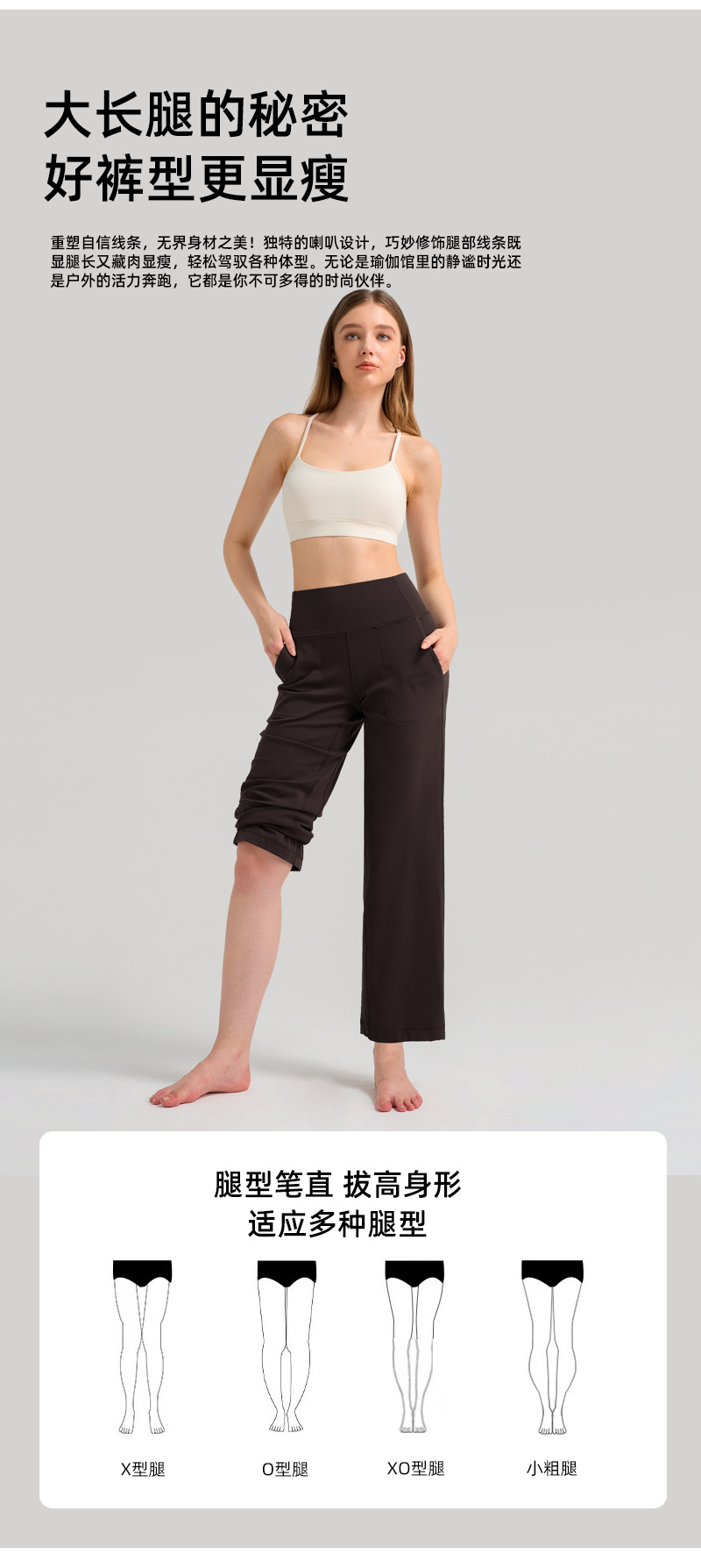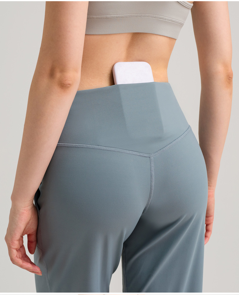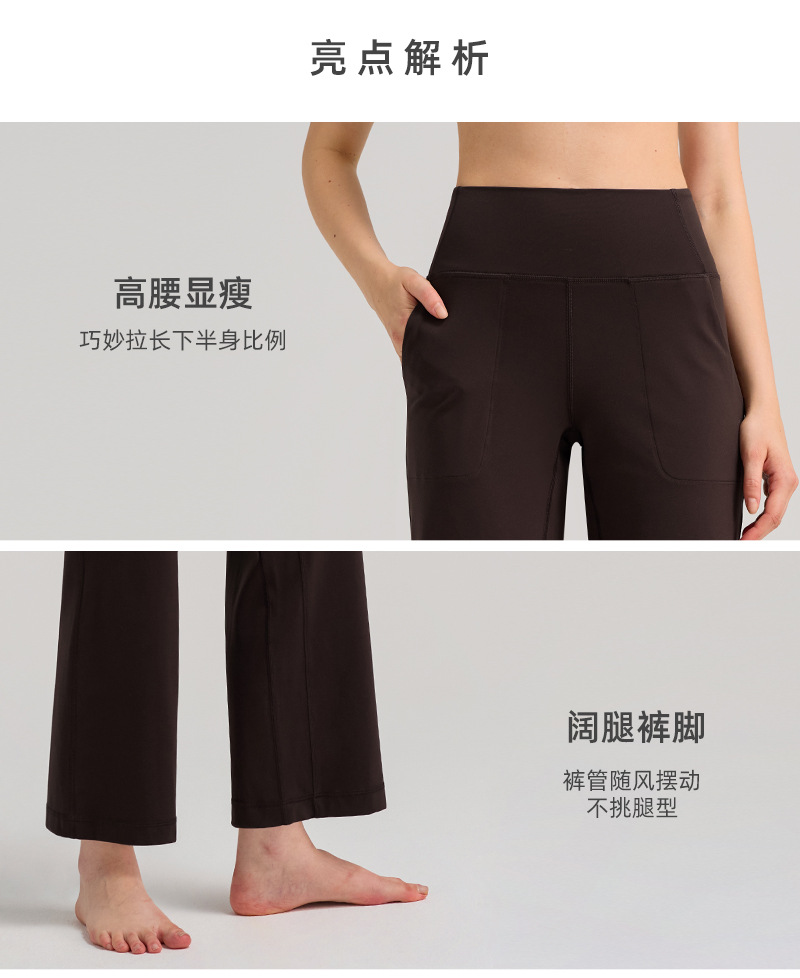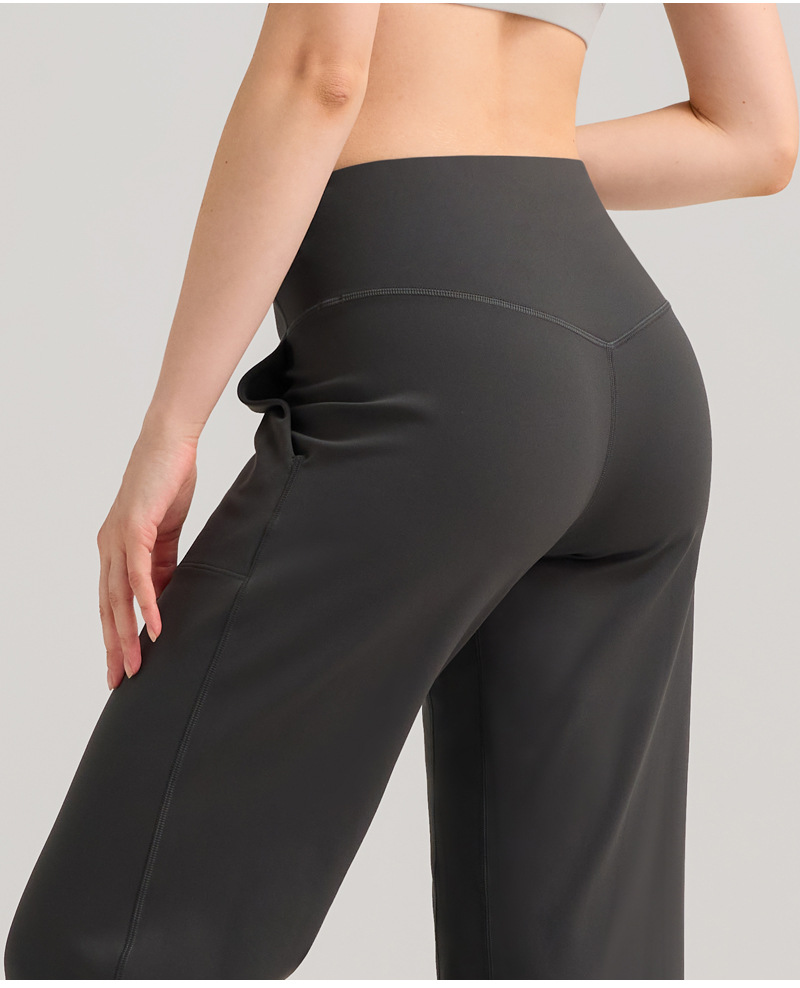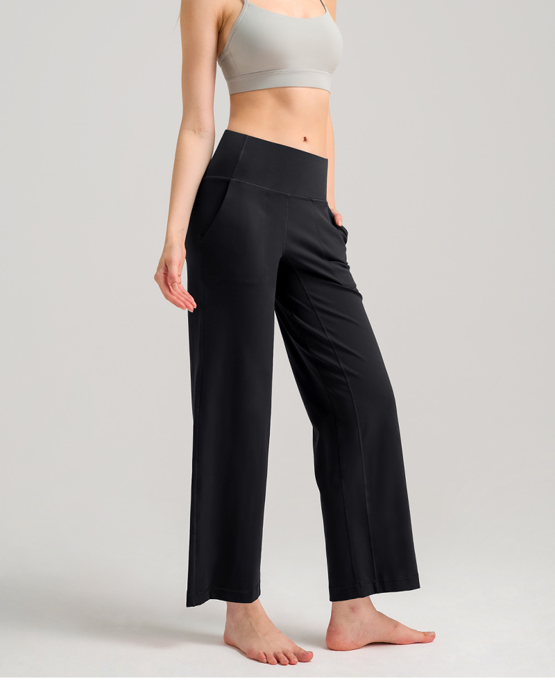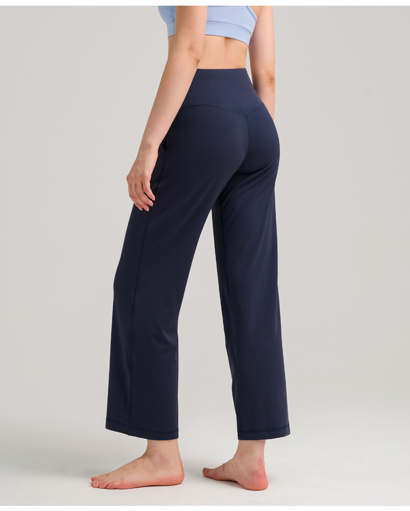 INFLACHI 와이드 레그 스포츠 바지 여성용 스트레이트 루즈 하이 웨이스트 캐주얼 바지 누드 통기성 요가 피트니스 바지 28"