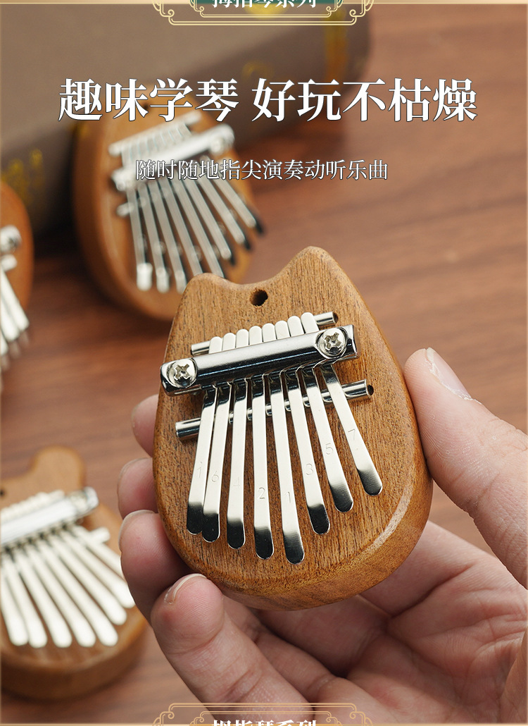 8음 미니 엄지 피아노 칼림바 단단한 나무 다섯 손가락 피아노 휴대용 초보자 손가락 피아노 작고 배우기 쉬운 악기 스타일