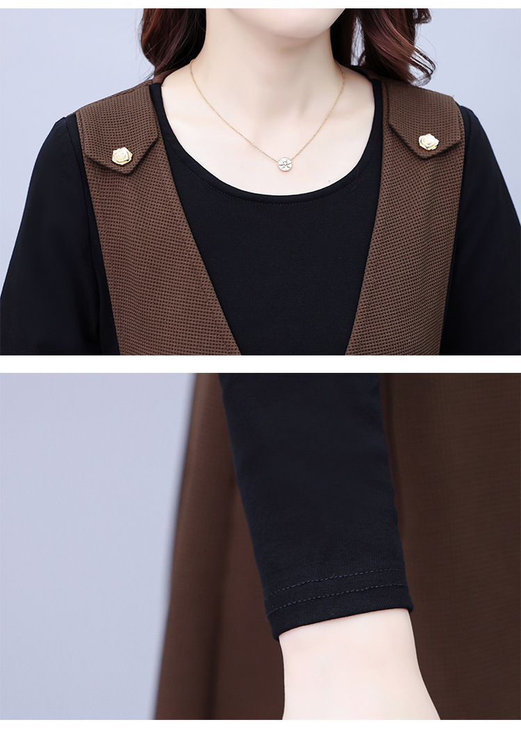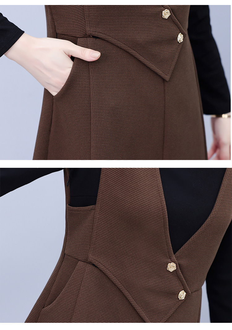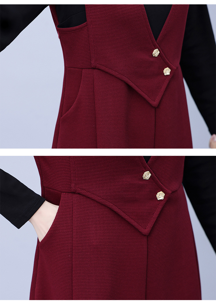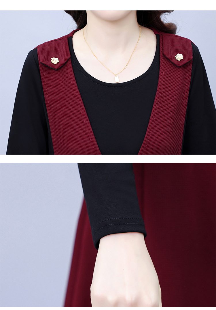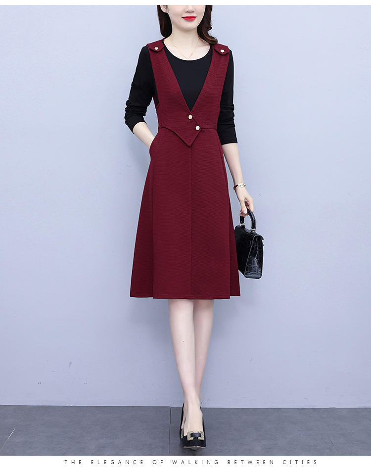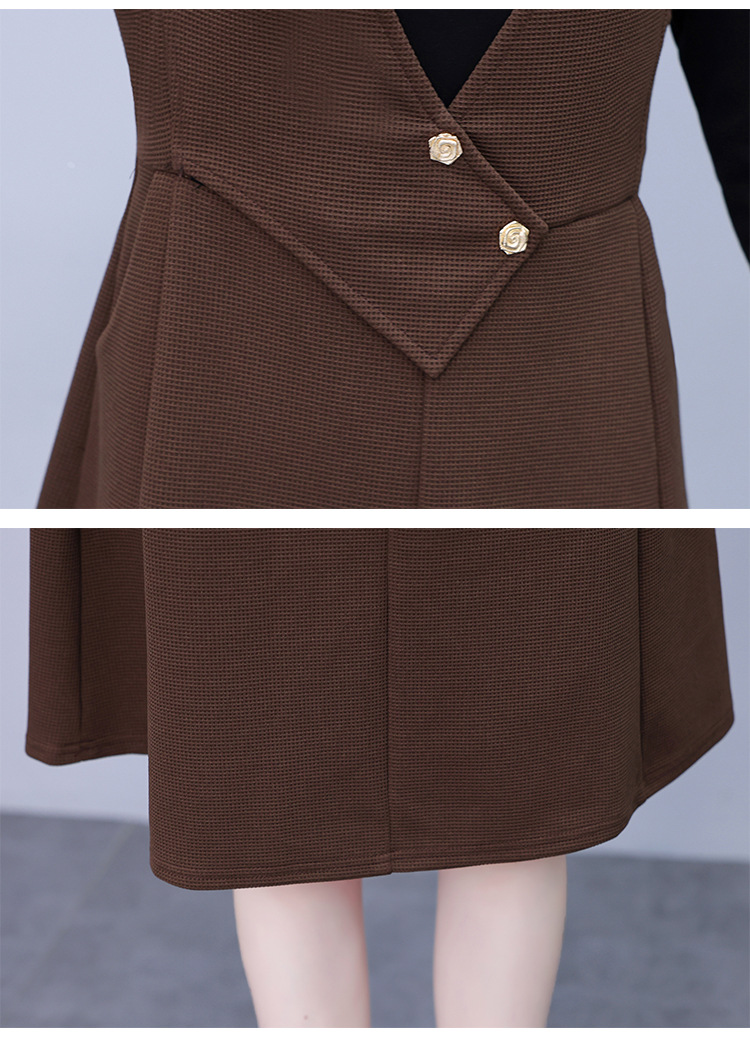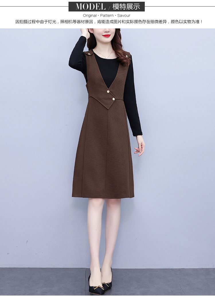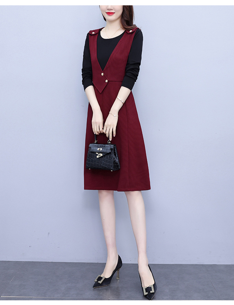 2024 년 가을 새로운 한국식 접합 치마 가짜 2 피스 세트 플러스 사이즈 슬림 핏 슬리밍 원피스스토어 가기