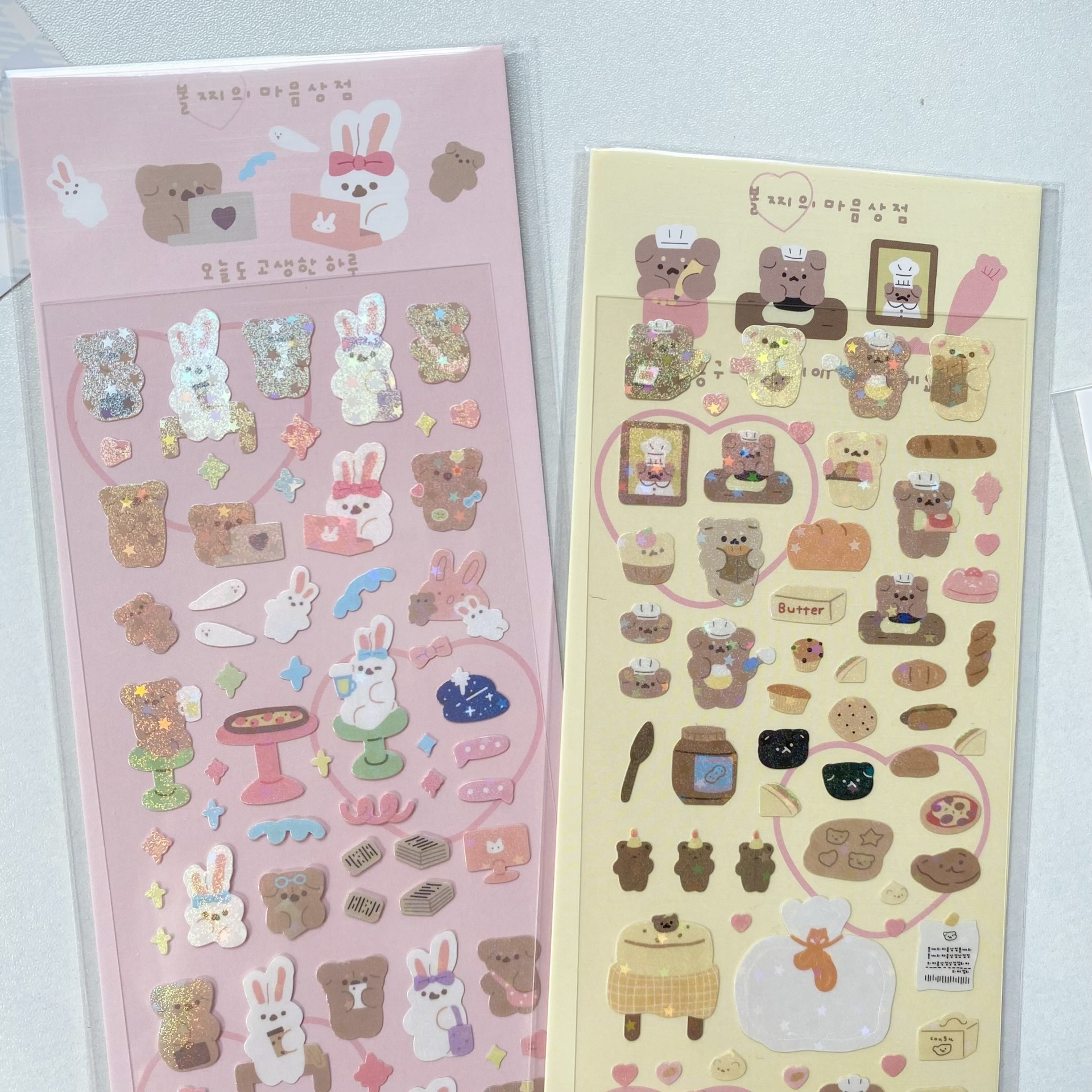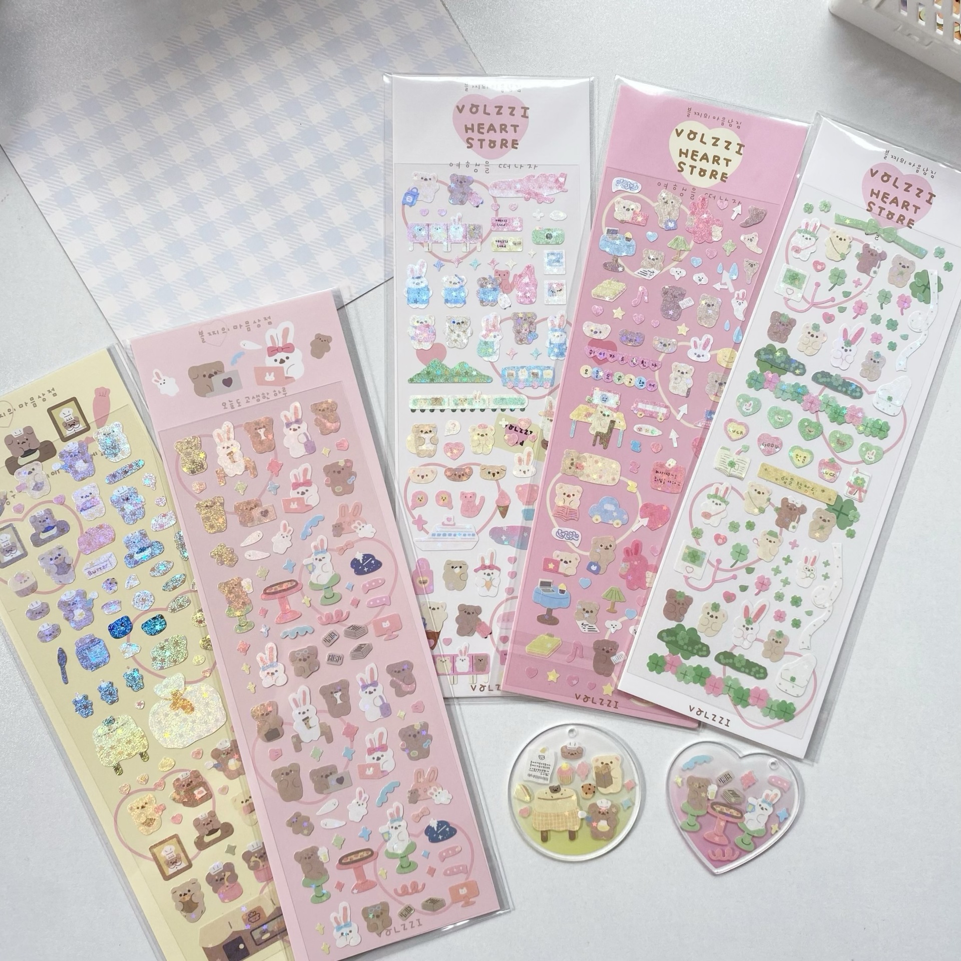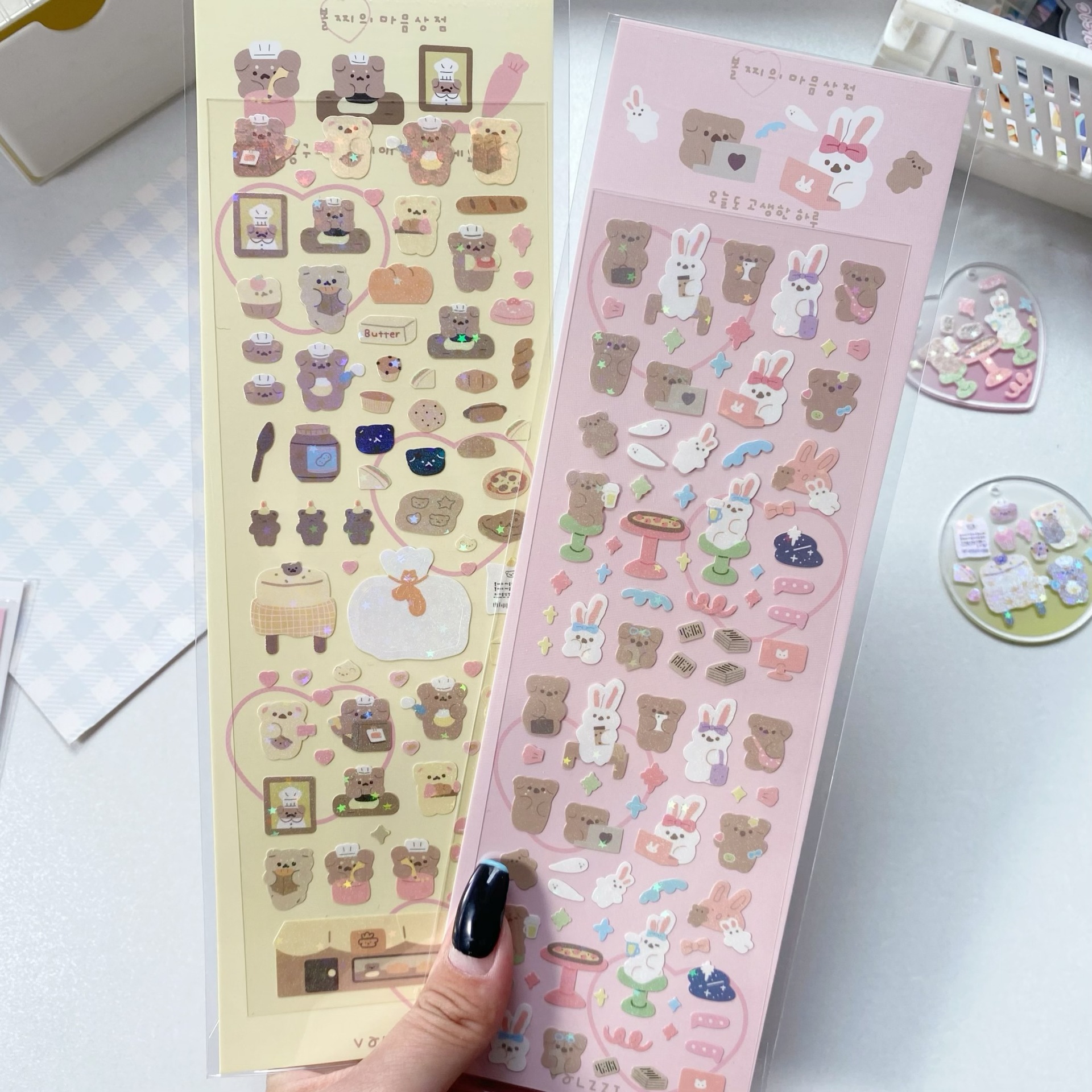 귀여운 만화 곰 스티커, 은도금 토끼 스티커, DIY 장식 재료 핸드북스토어 가기