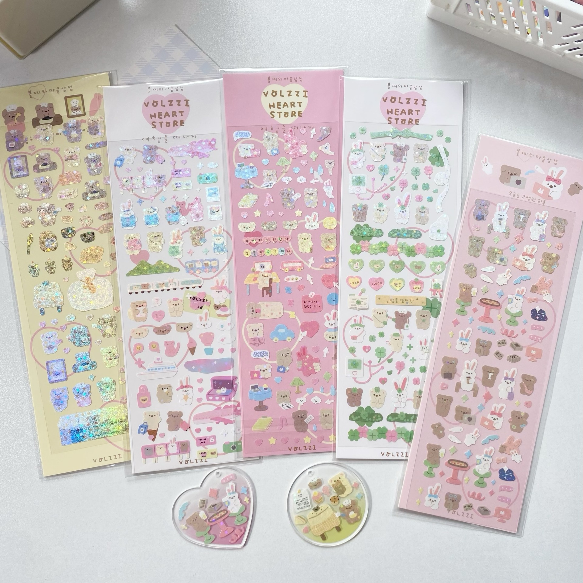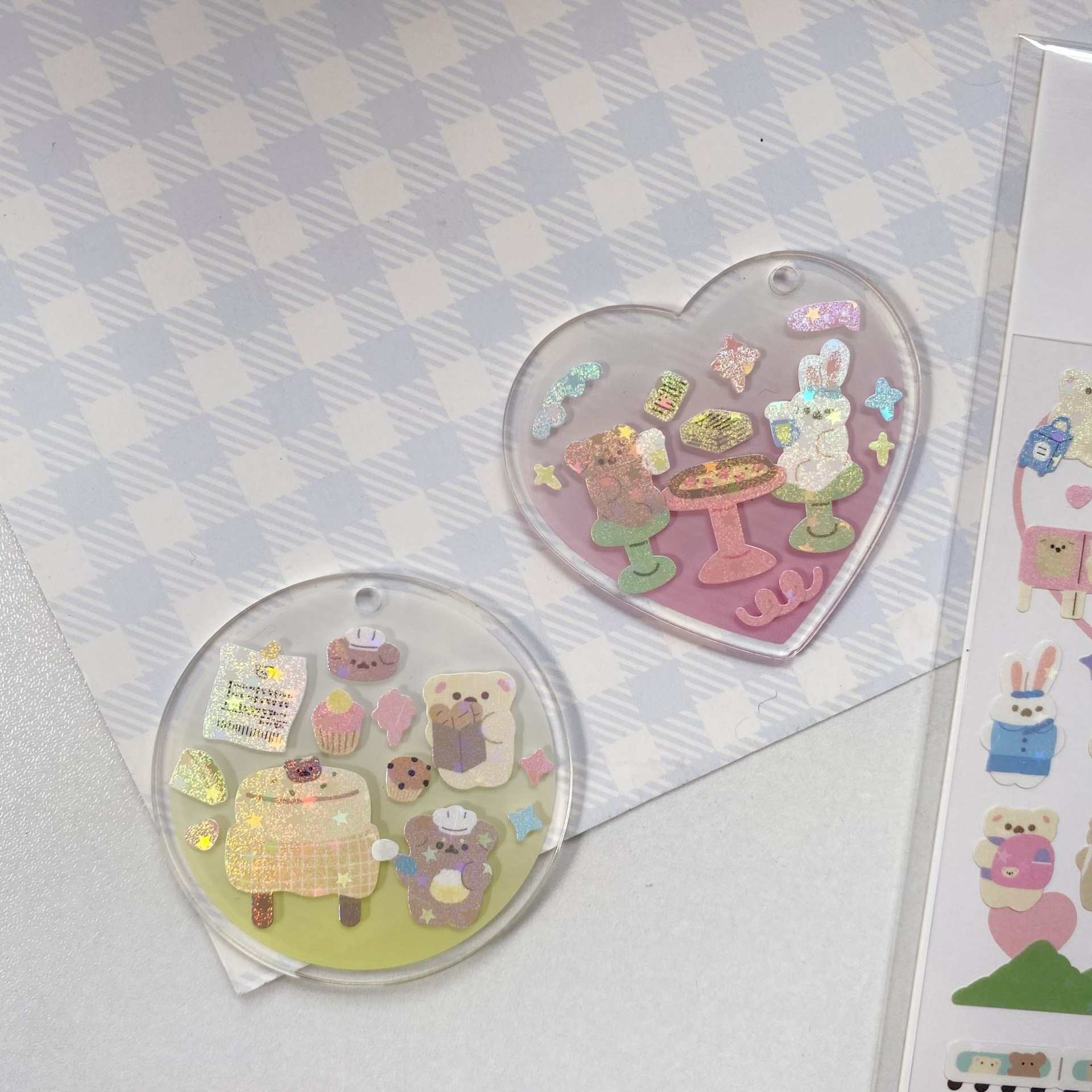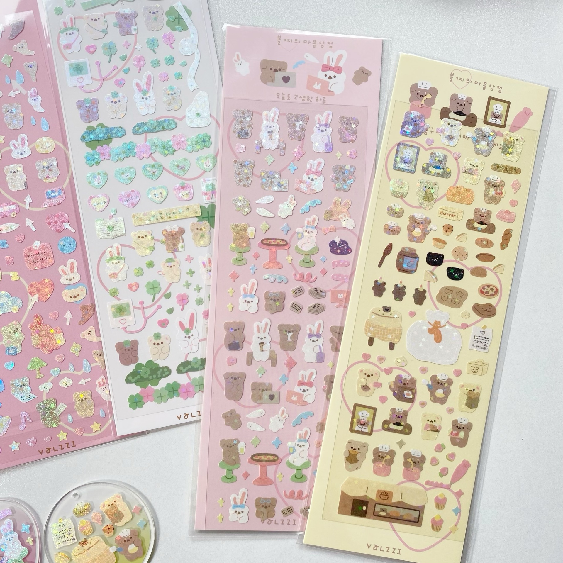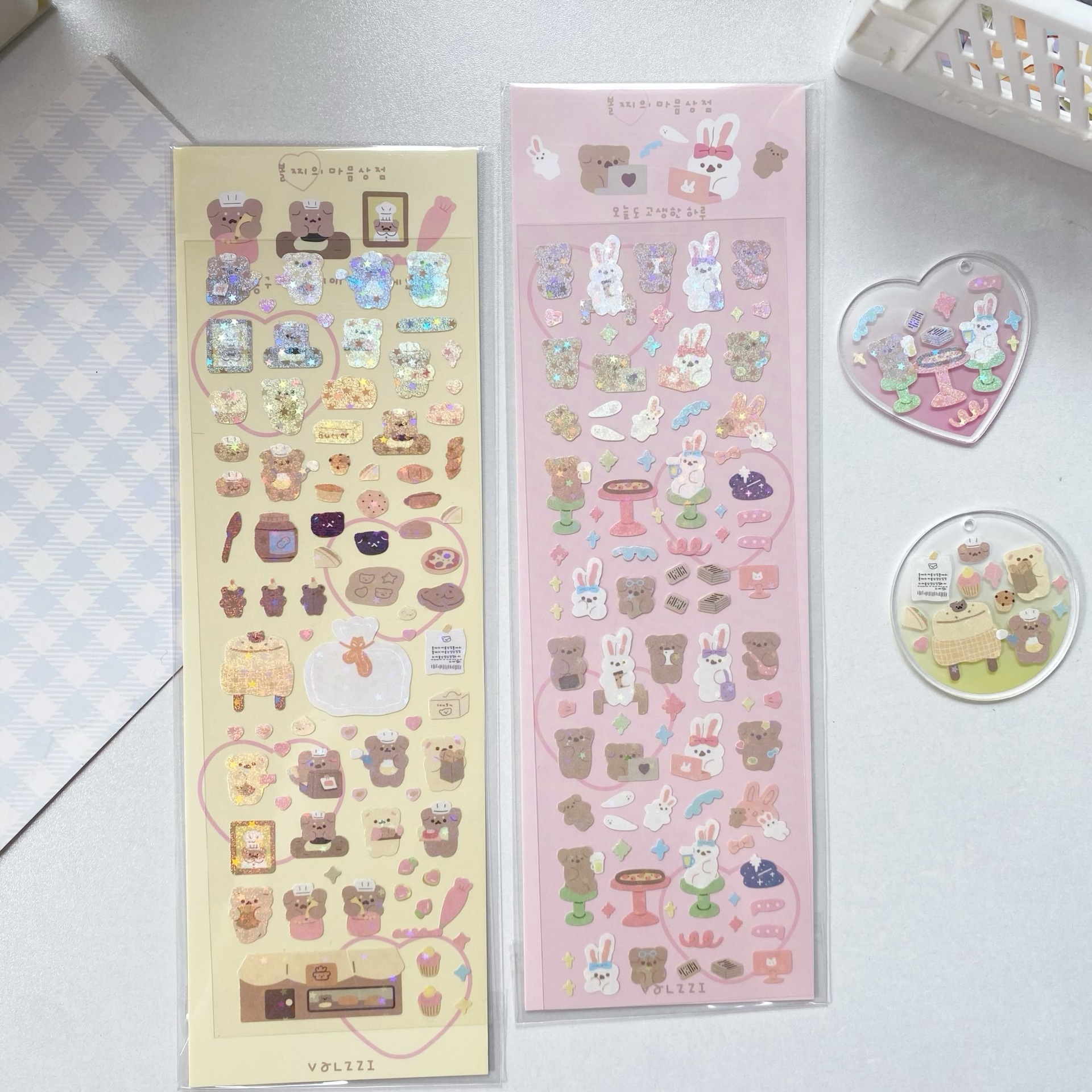 귀여운 만화 곰 스티커, 은도금 토끼 스티커, DIY 장식 재료 핸드북스토어 가기