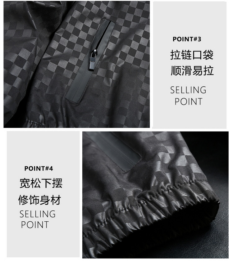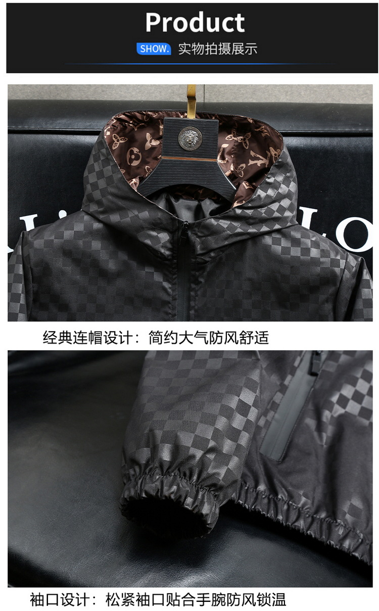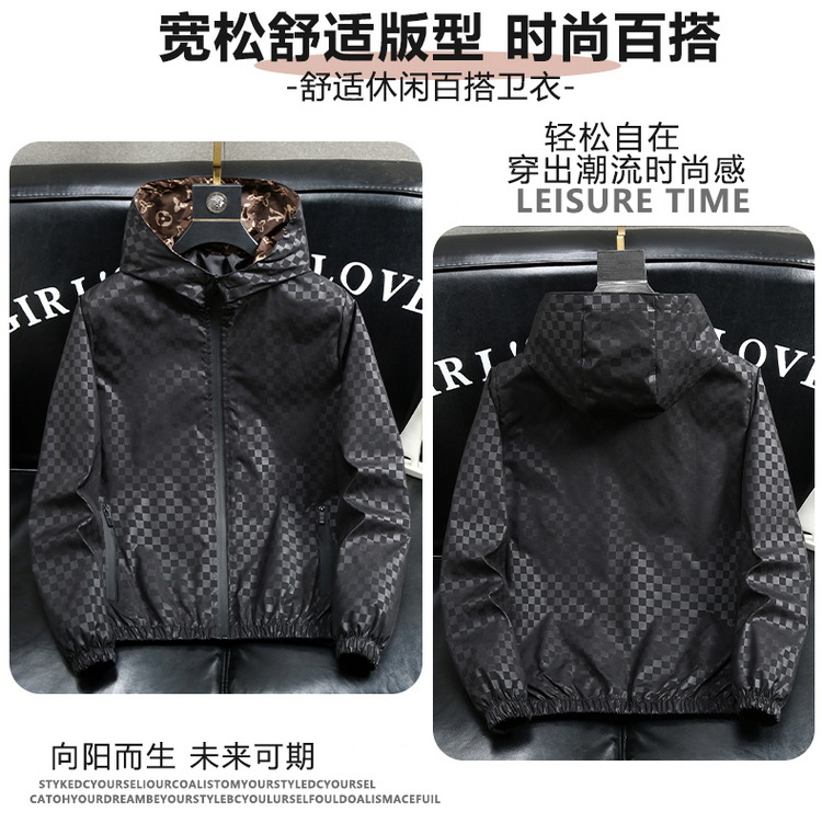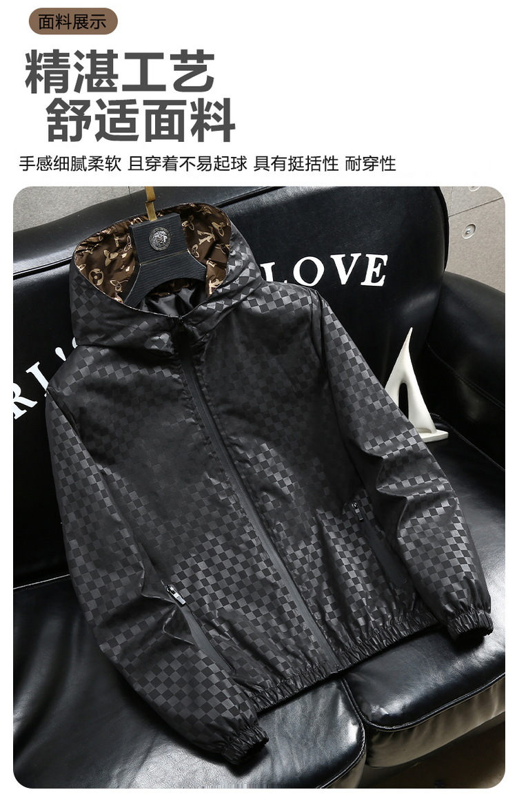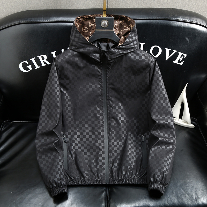 유럽 역 남자의 새로운 후드 재킷 엠보싱 체크 무늬 하이 엔드 센스 인쇄 패션 캐주얼 재킷 트렌디스토어 가기