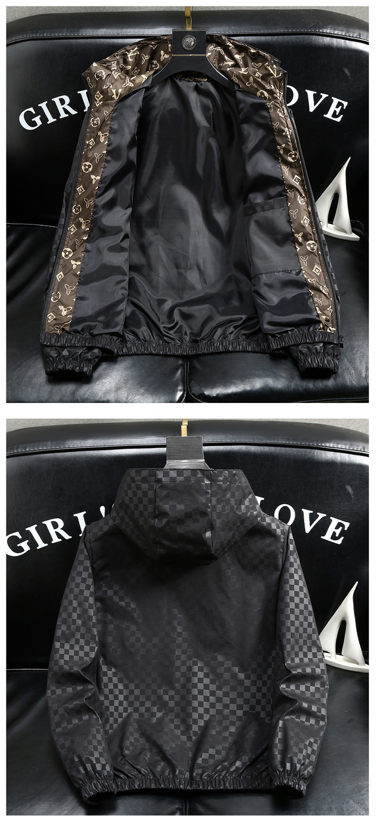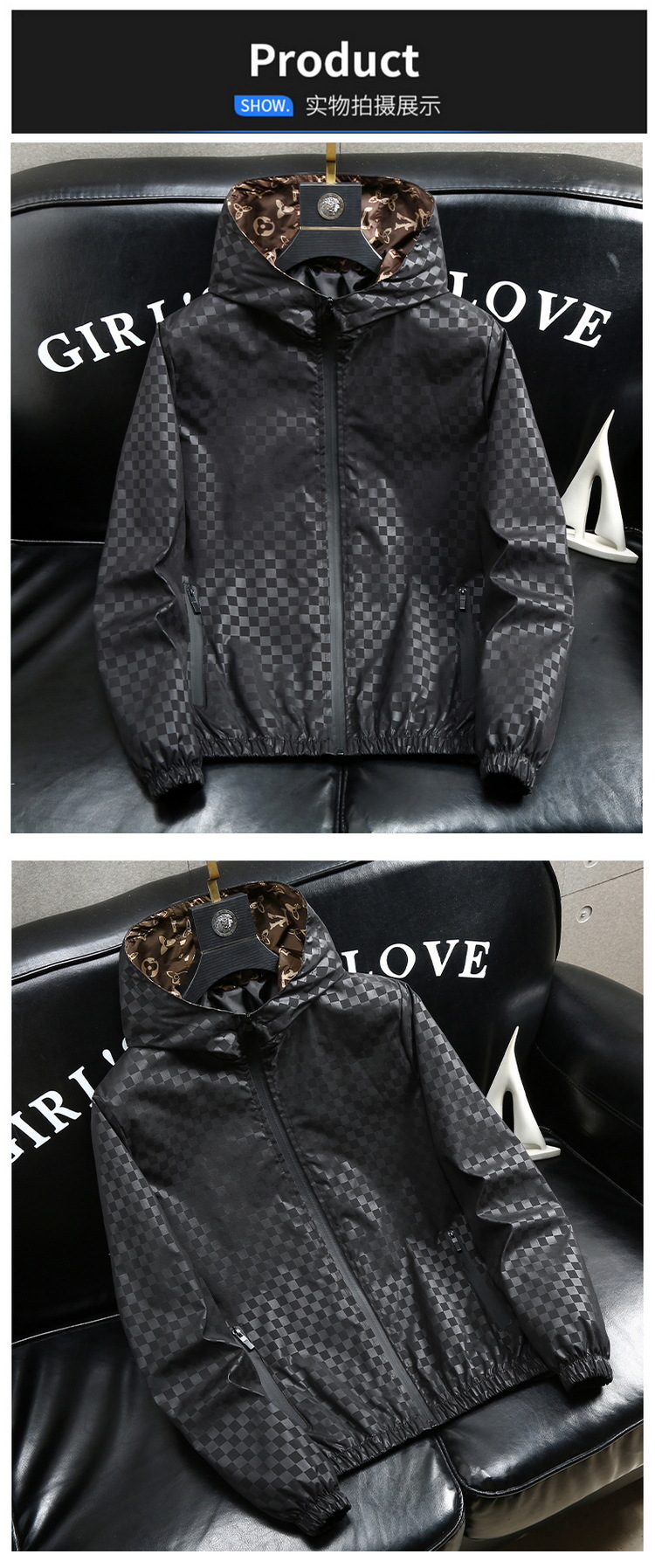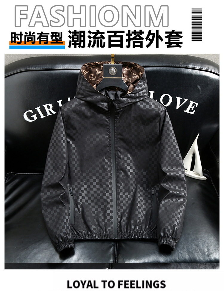 유럽 역 남자의 새로운 후드 재킷 엠보싱 체크 무늬 하이 엔드 센스 인쇄 패션 캐주얼 재킷 트렌디스토어 가기