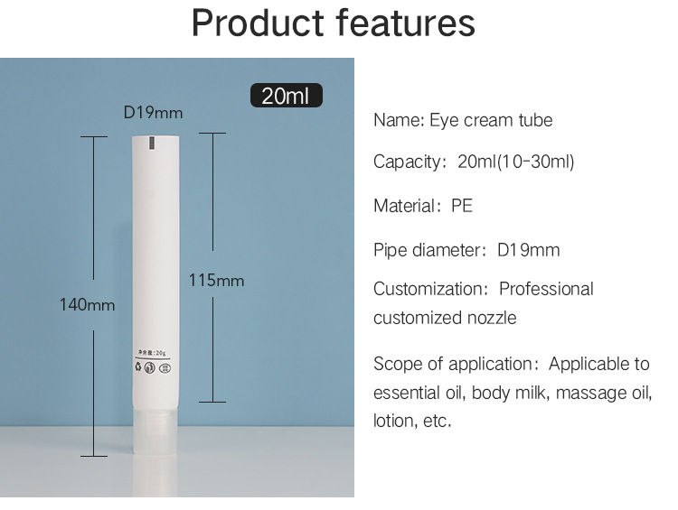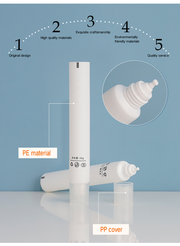 10毫升15毫升白色聚乙烯挤压美容面霜修复护肤容器包装管带滴管喷嘴