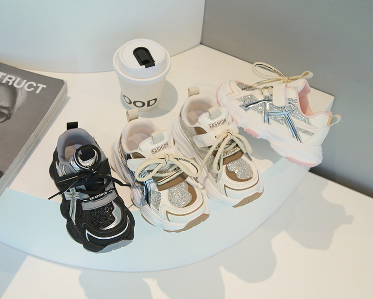 2025 봄 가을 신상 아동 운동화, 유아용 아빠 신발, 반짝이 캐주얼 신발, 부드러운 밑창 통기성 아기 신발스토어 가기