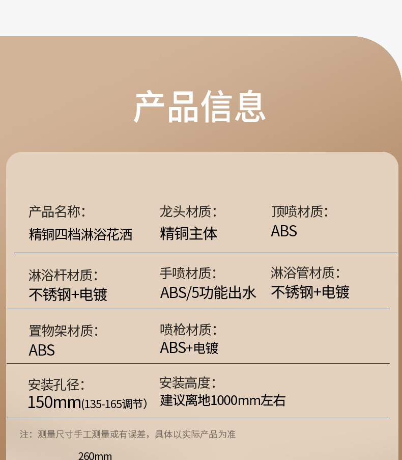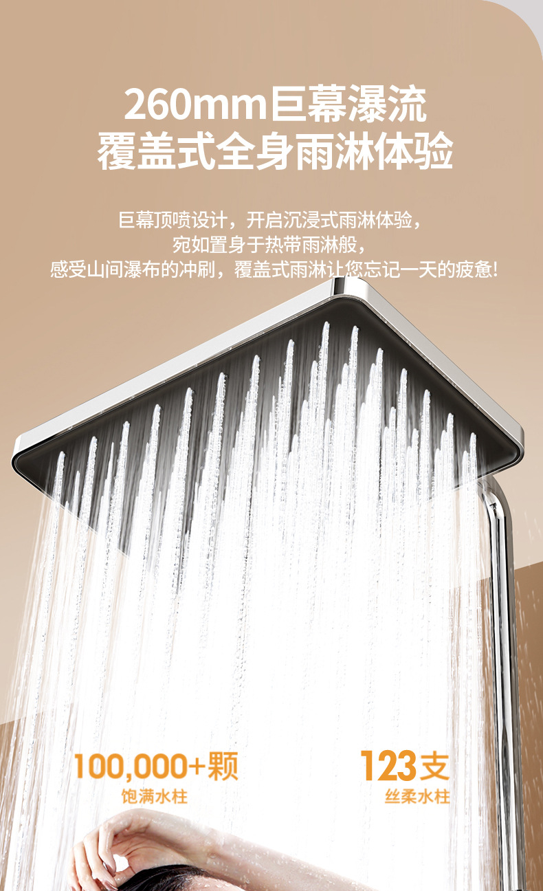 • 8inch 돔 스프레이가 포함된 고급 구리 [실버 4가지 기능 세트]