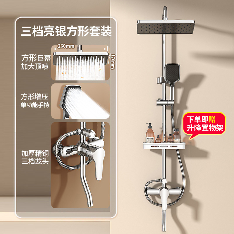 • 13inch 정사각형 탑 스프레이가 포함된 세련된 구리 [실버 3가지 기능 세트]