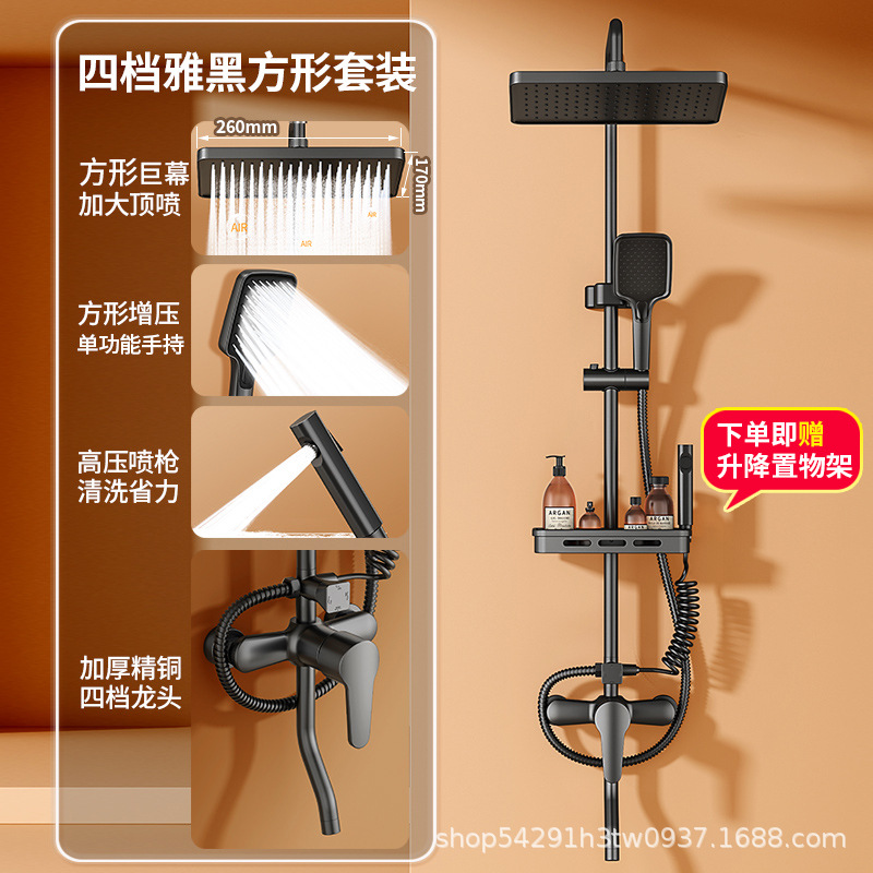 • 13inch 정사각형 상단 스프레이가 포함된 세련된 구리 [검은색 4가지 기능 세트]