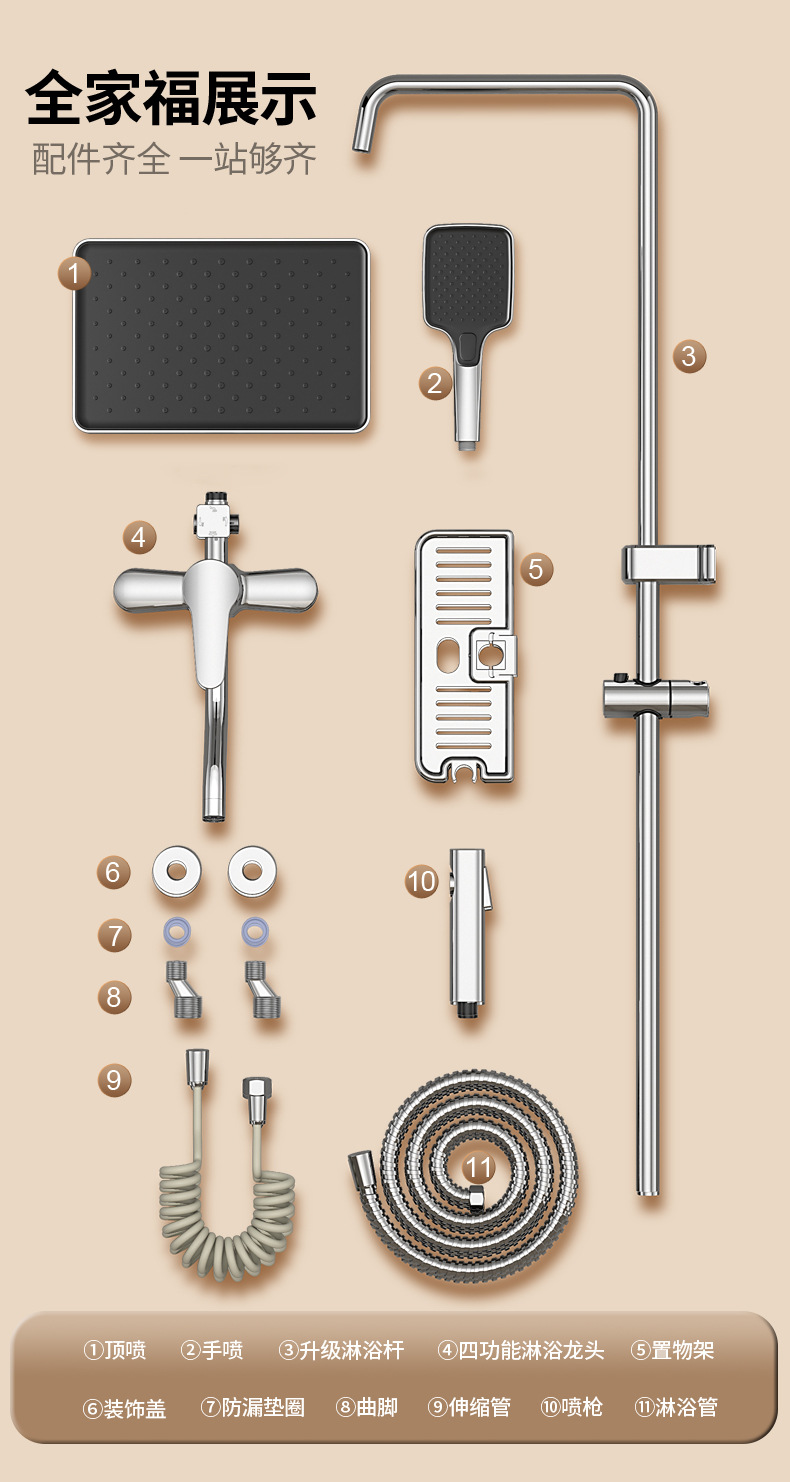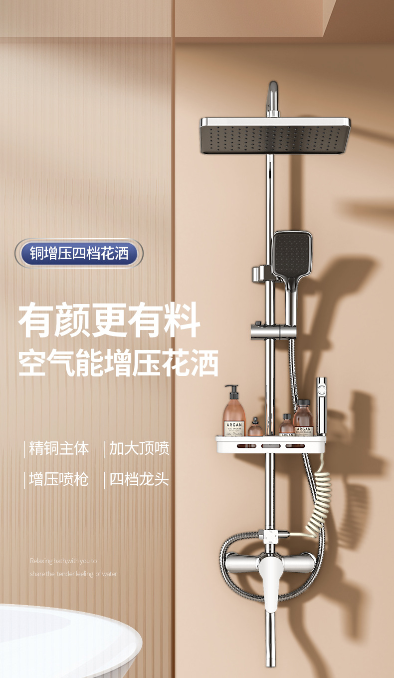 샤워기 세트, 심플한 매립형 샤워기 세트, 가정용 욕실 샤워기, 샤워기, 고급 구리 샤워기스토어 가기