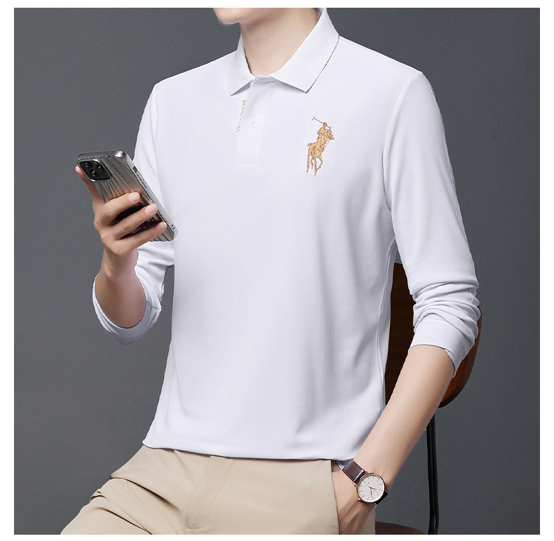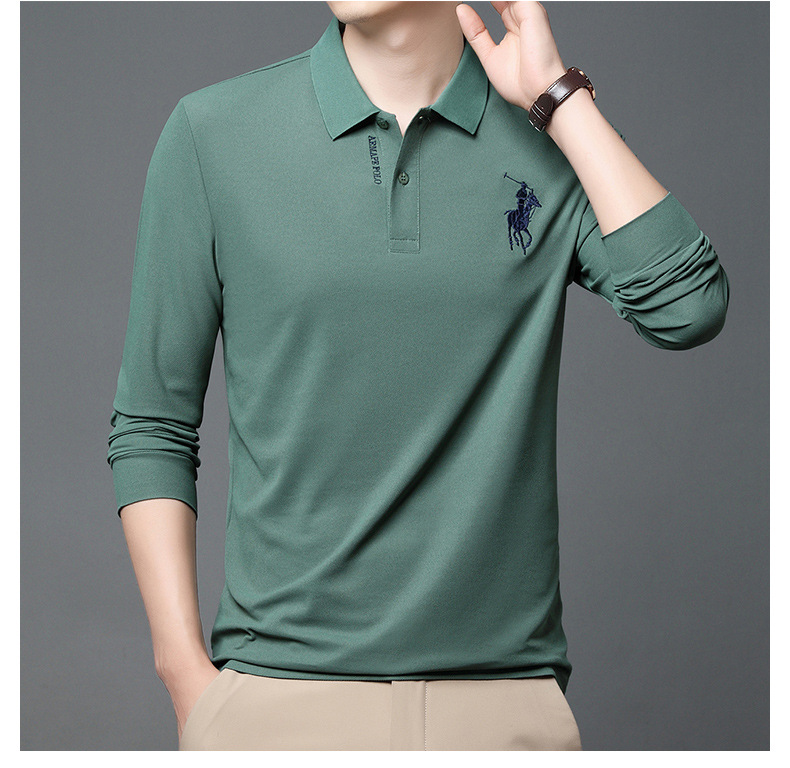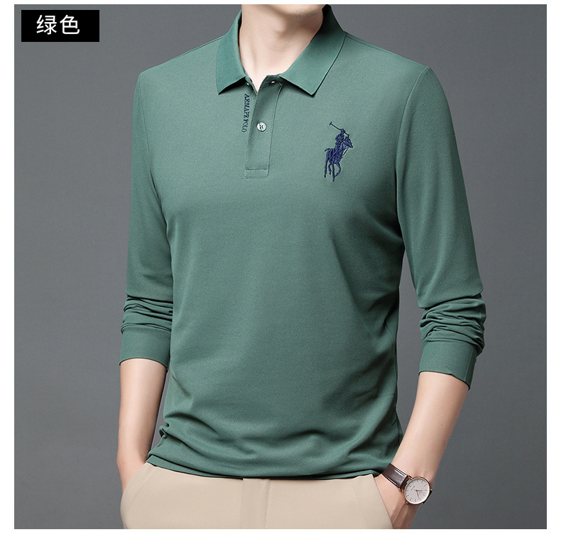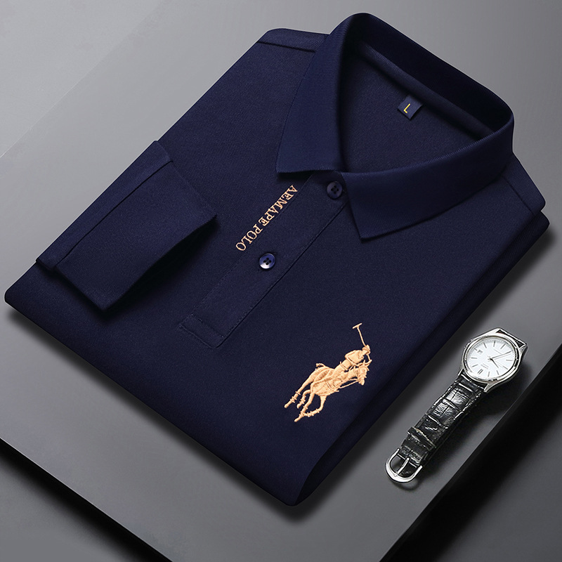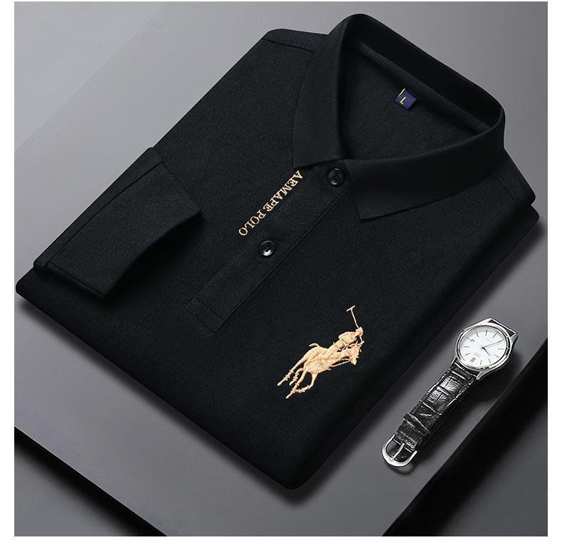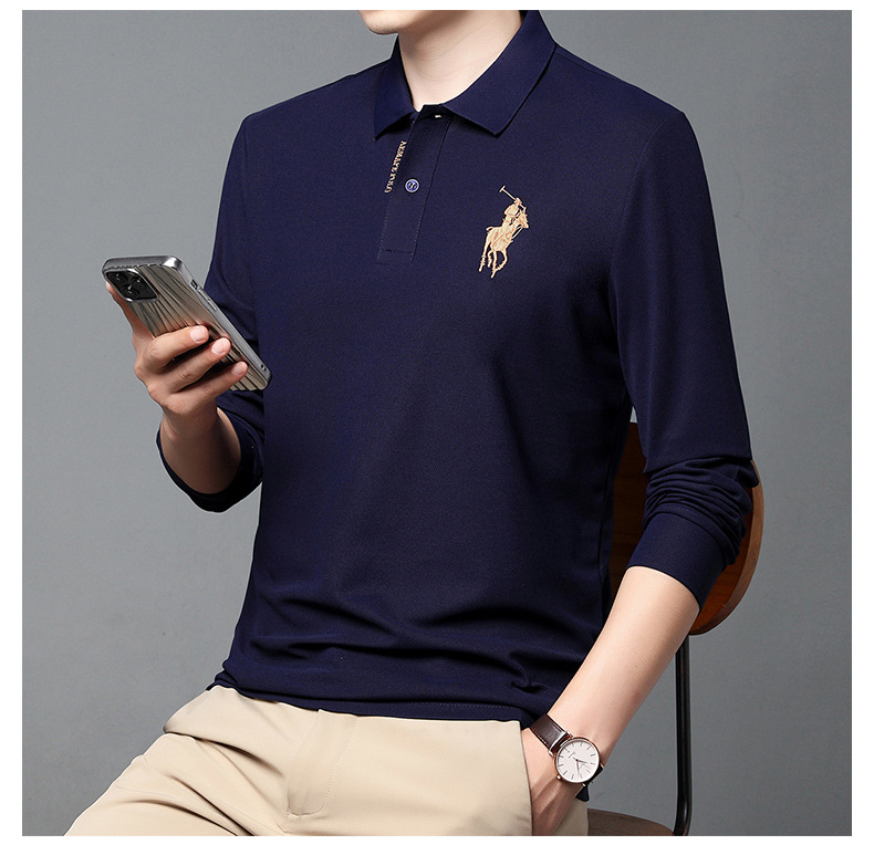 국경 간 대외 무역 봄과 가을 남자 긴팔 자수 젊고 중년의 POLO 셔츠 옷깃 패션 올 매치 캐주얼 아빠 탑