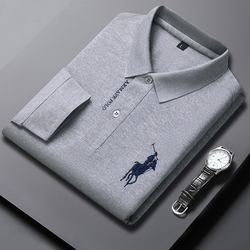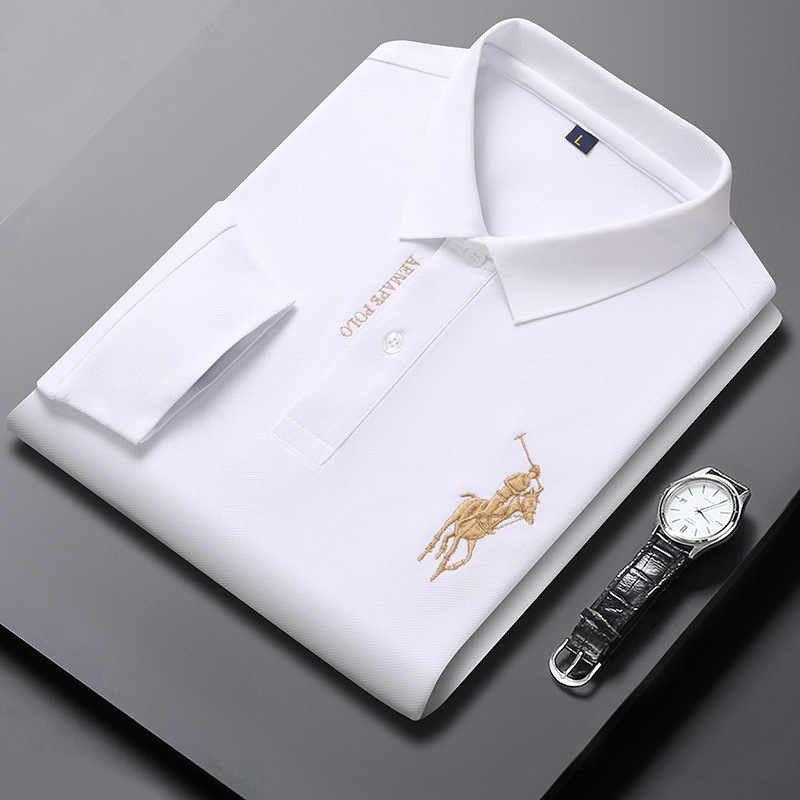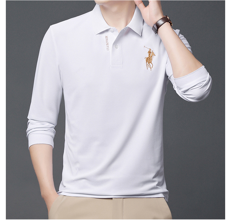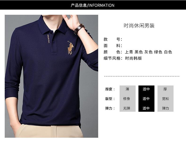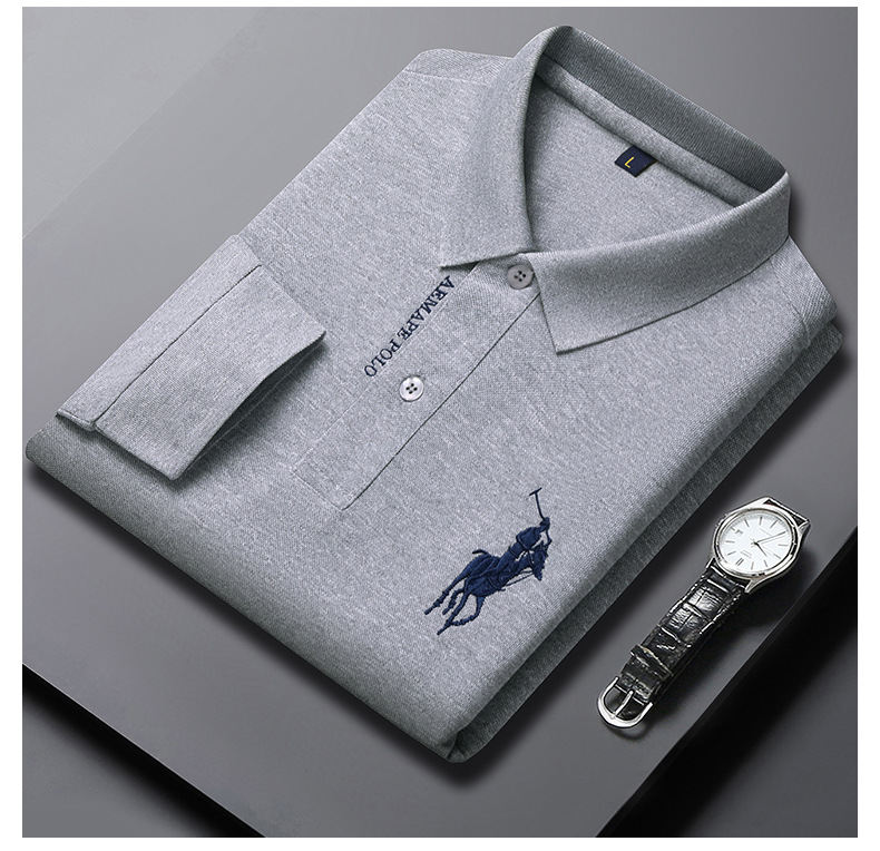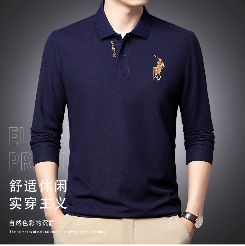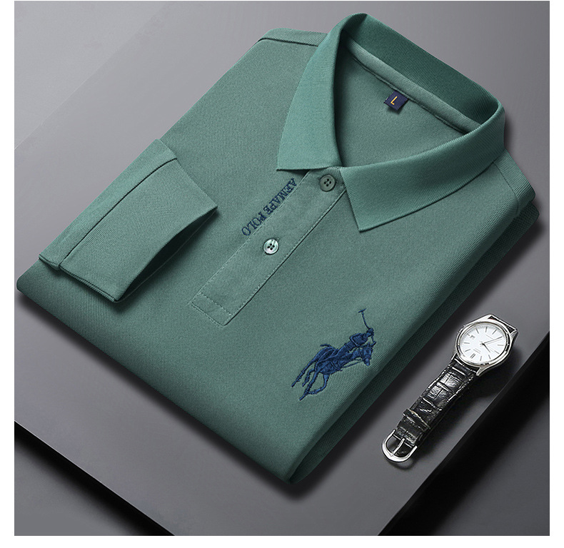 국경 간 대외 무역 봄과 가을 남자 긴팔 자수 젊고 중년의 POLO 셔츠 옷깃 패션 올 매치 캐주얼 아빠 탑