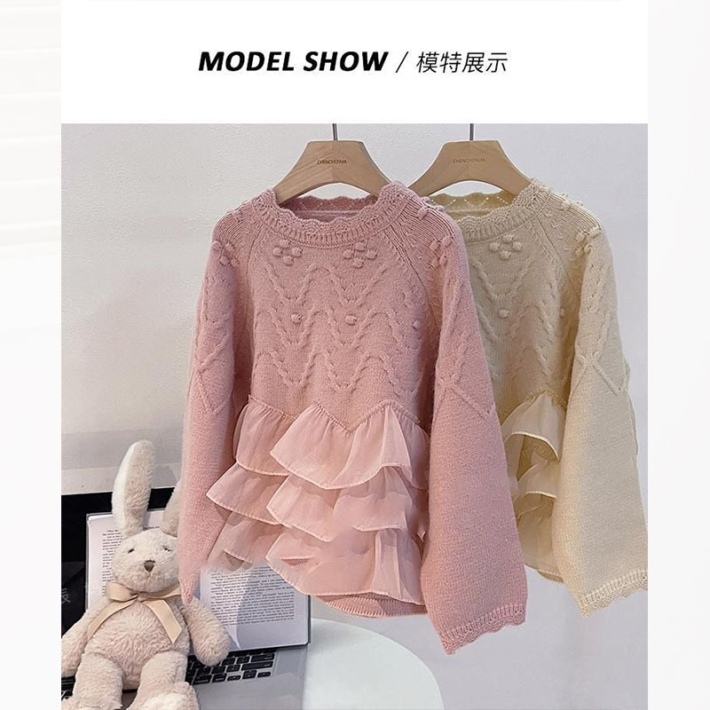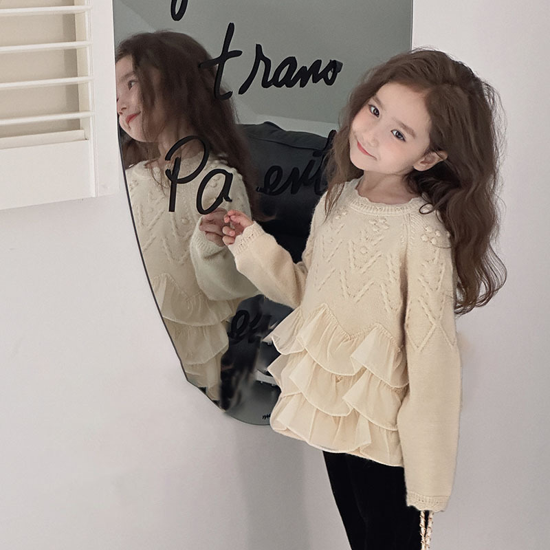 소녀 니트 셔츠베이스 풀오버 레이스 외국 스타일 공주 아우터 탑 레이스 가을 및 겨울 스웨터 아동복스토어 가기