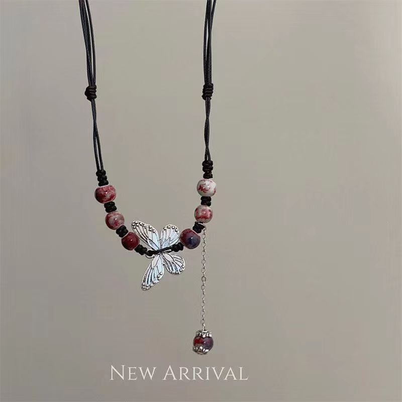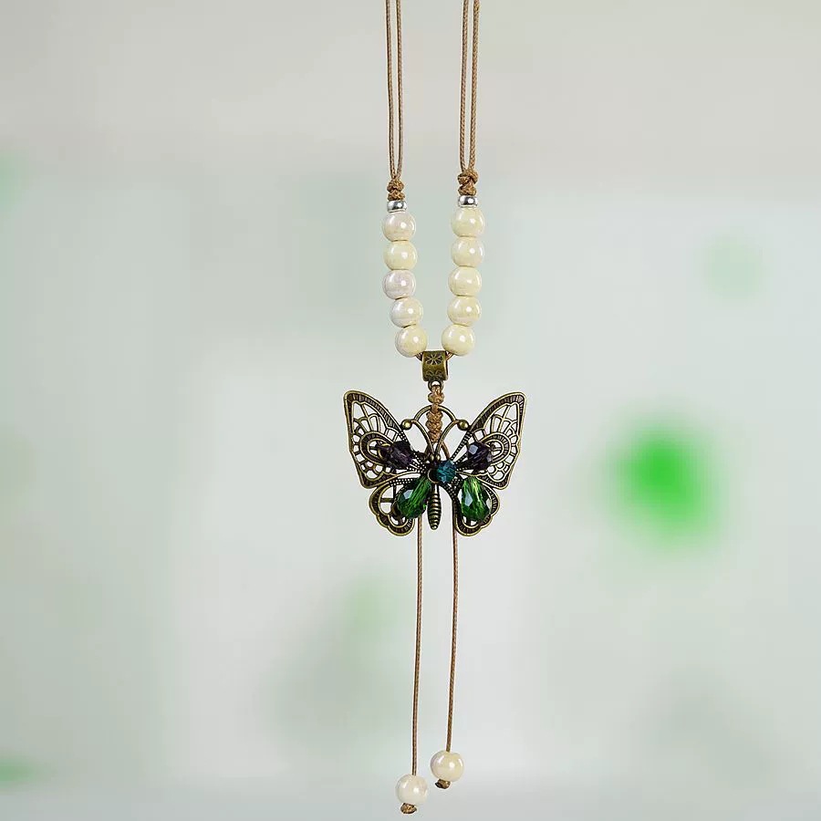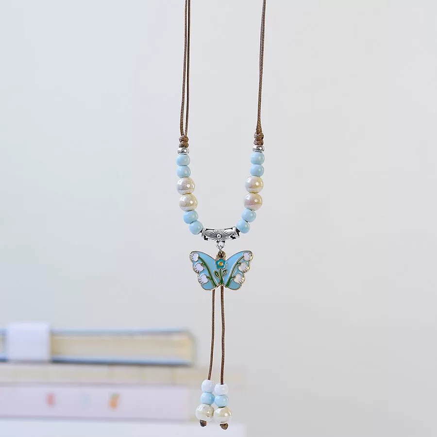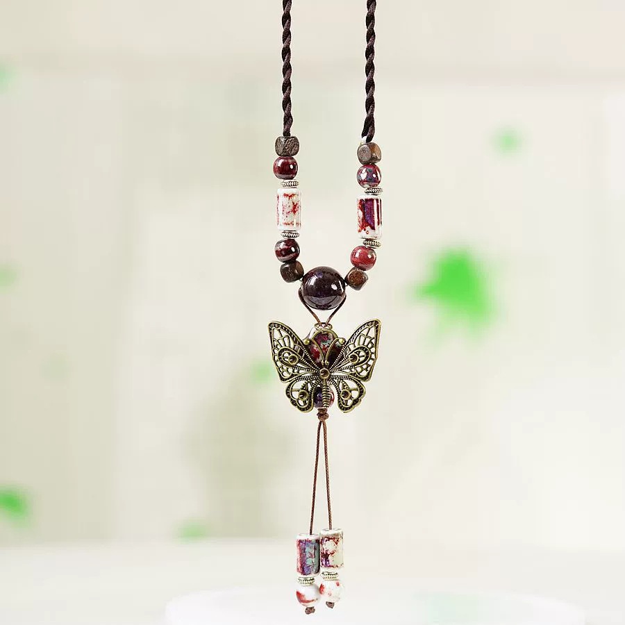 여성을 위한 새로운 중국 스타일 민족 스타일 세라믹 긴 스웨터 체인, 고대 스타일 펜던트, 복고풍 중국 스타일 도자기 목걸이 액세서리