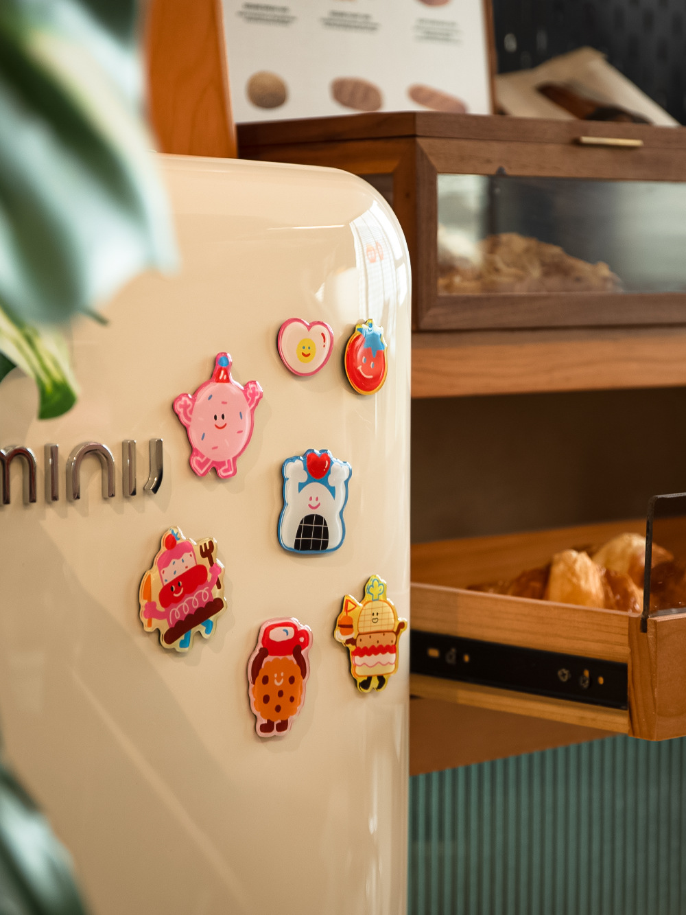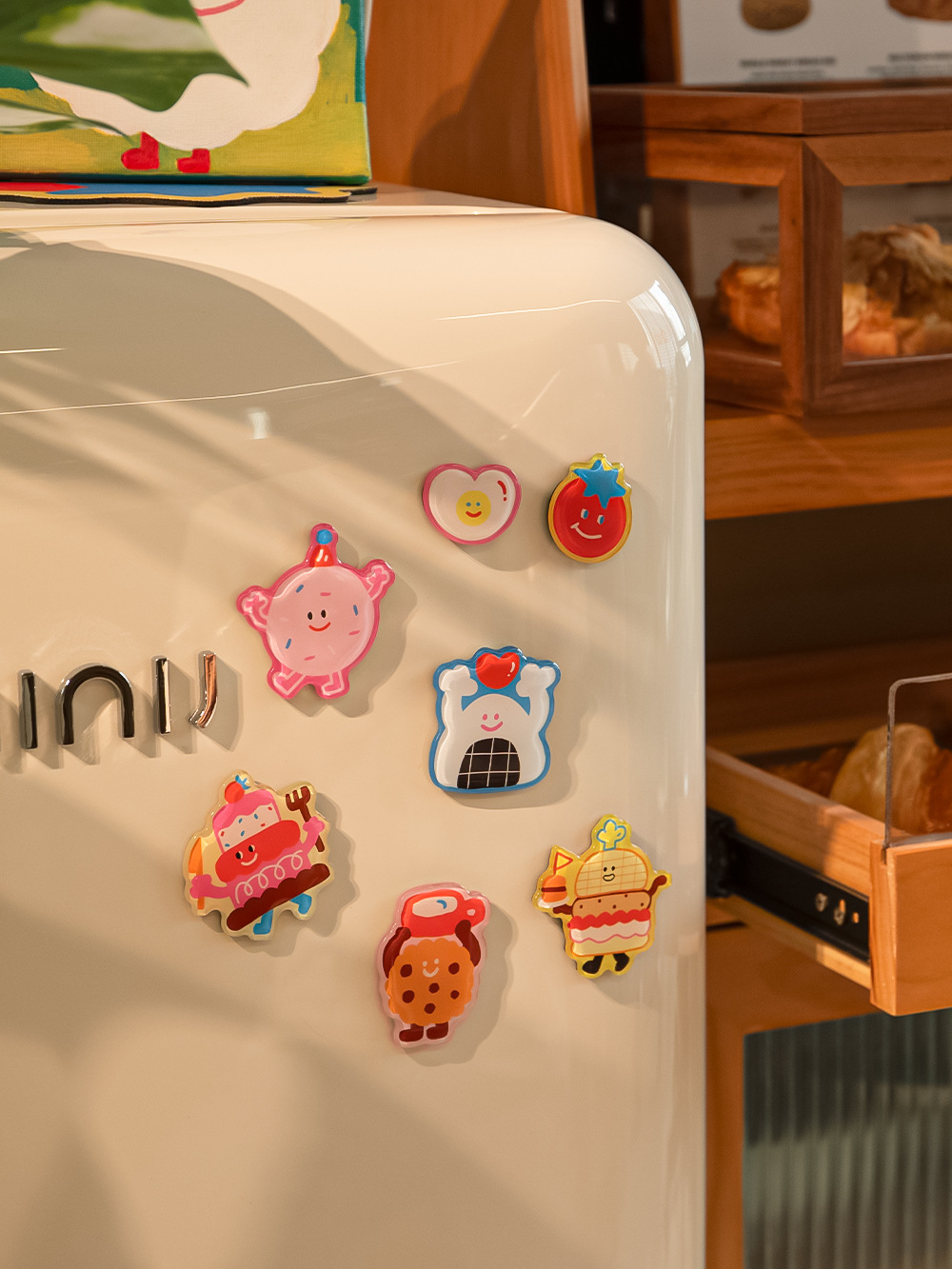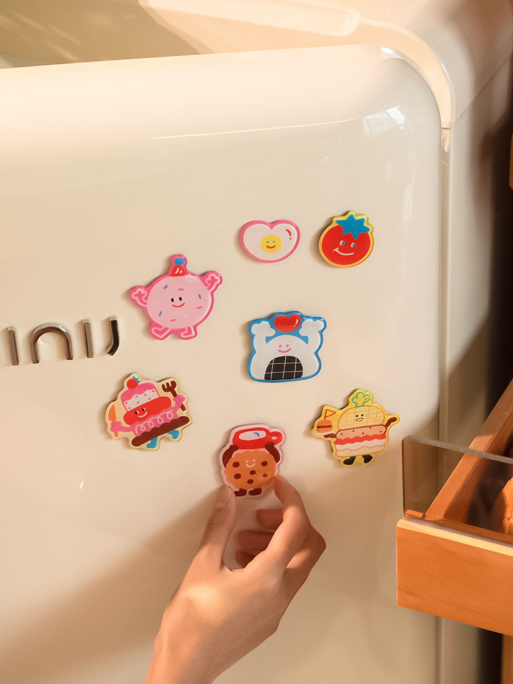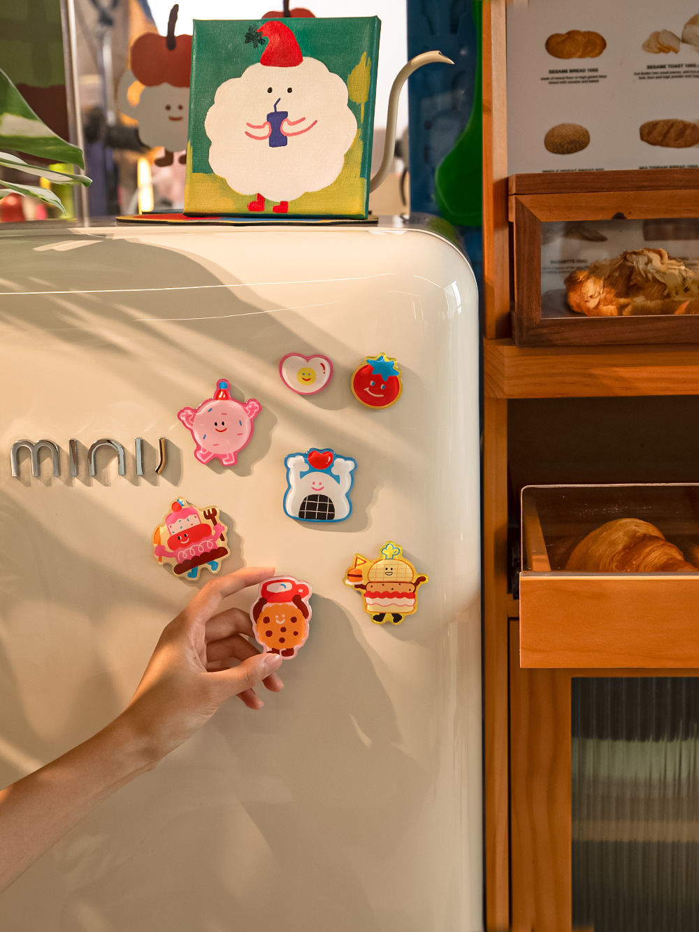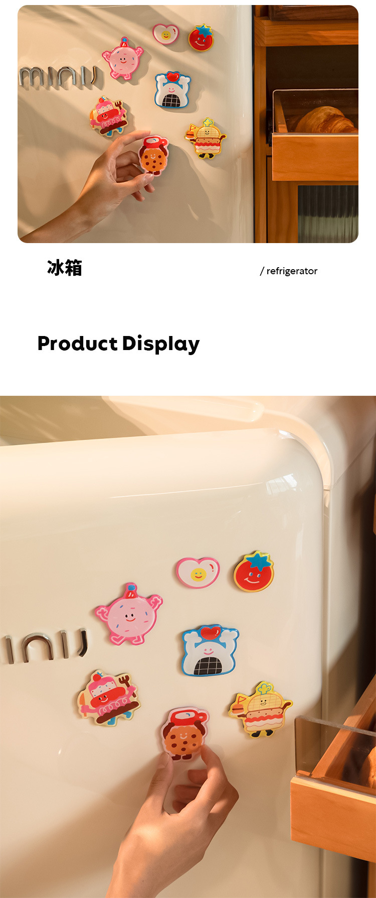 귀여운 냉장고 스티커 새로운 맛있는 매장 플레이트 창조적 인 자석 스테레오 그물 붉은 자기 장식 레이아웃 메시지스토어 가기