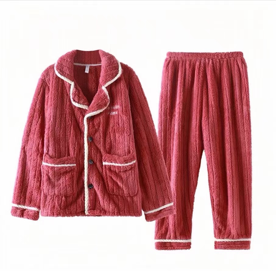 가을과 겨울 커플 잠옷 긴팔 통기성 면 남자와 여자의 두꺼운 따뜻한 겉옷 세트스토어 가기