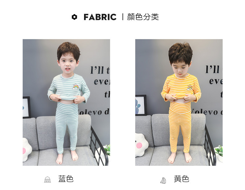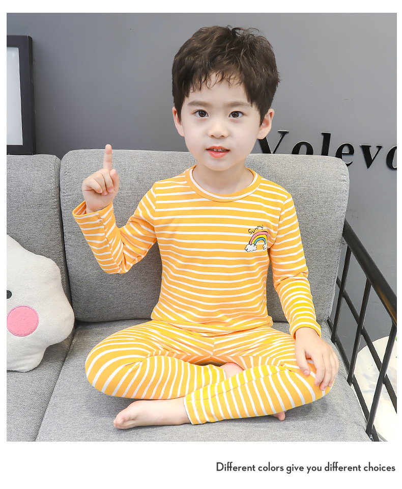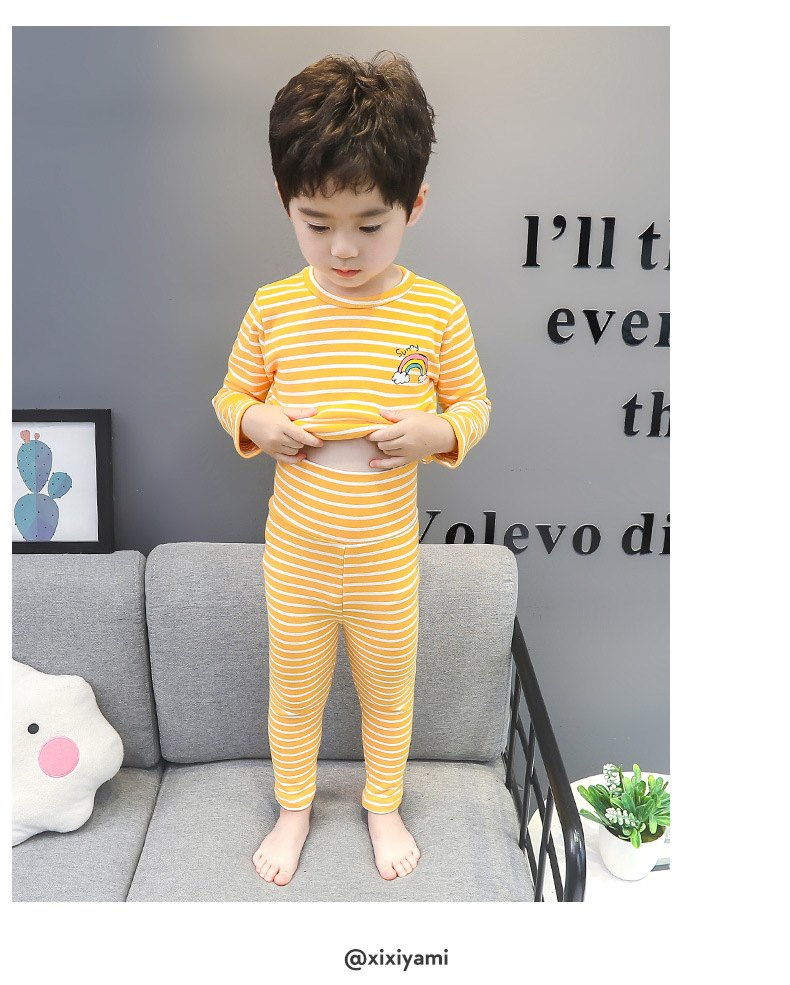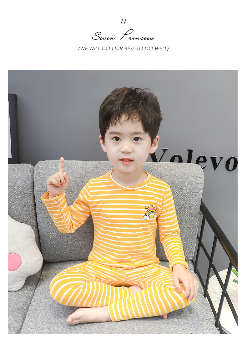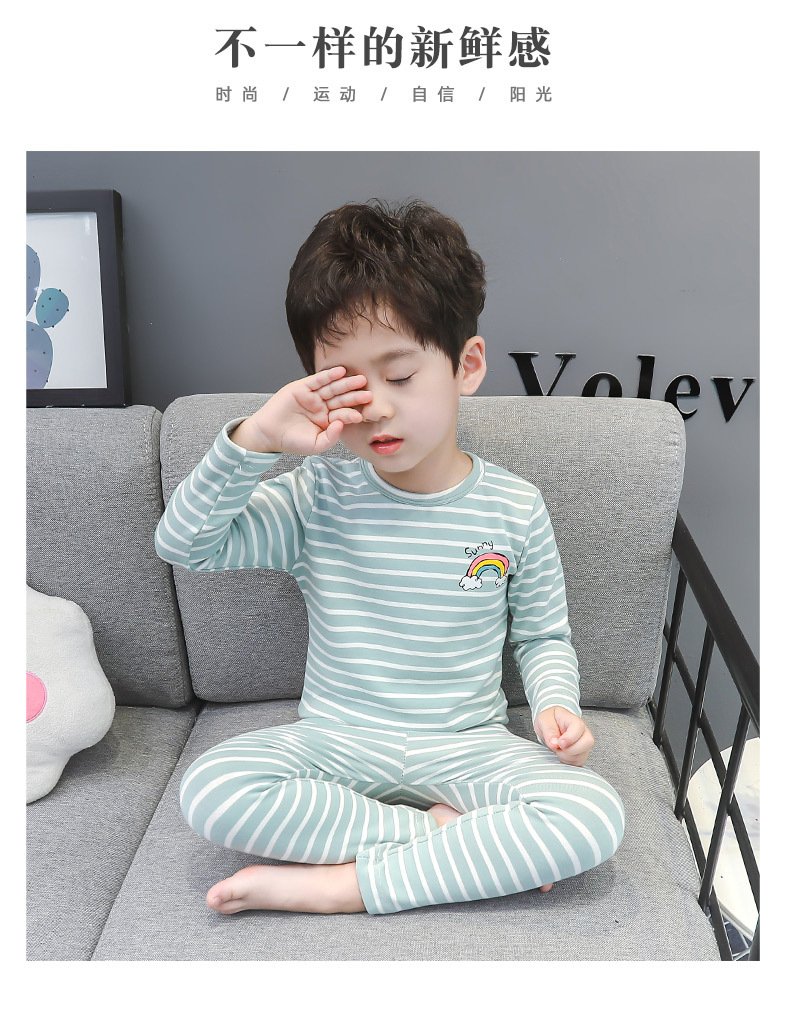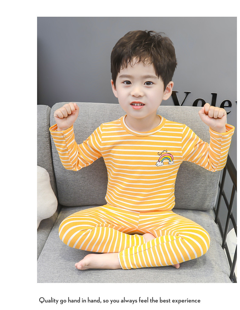 어린이 속옷 세트 가을 옷 줄무늬 긴팔 긴팔 긴팔 롱존 어린이 집 옷 소년 높은 허리 배꼽 보호 잠옷스토어 가기