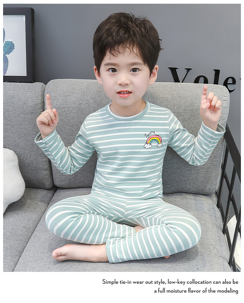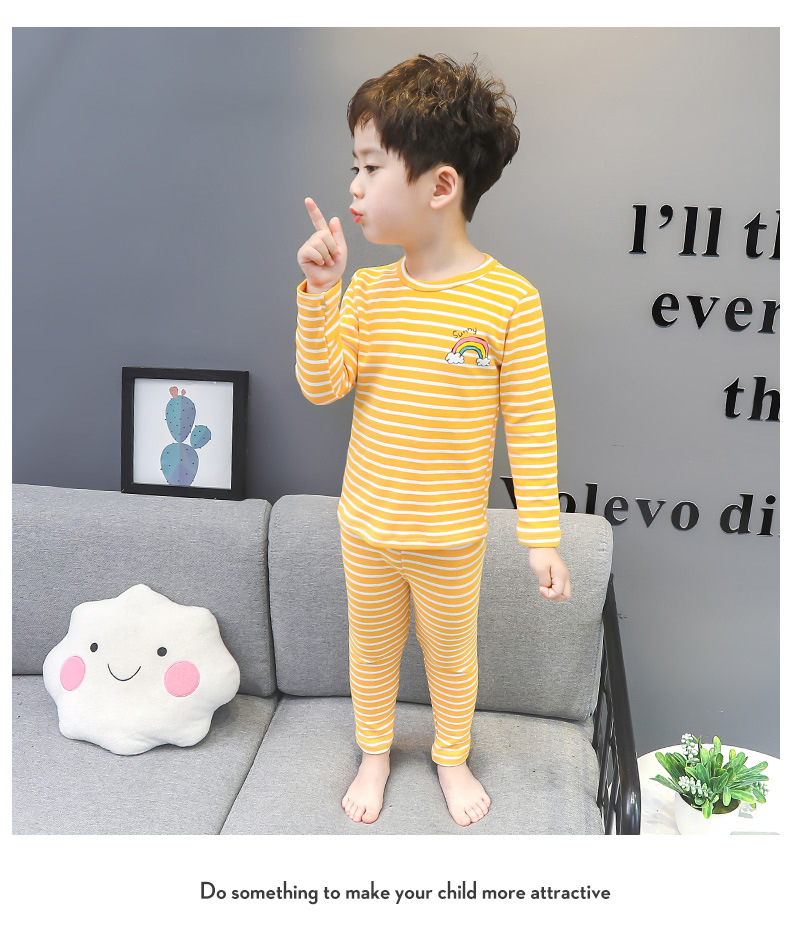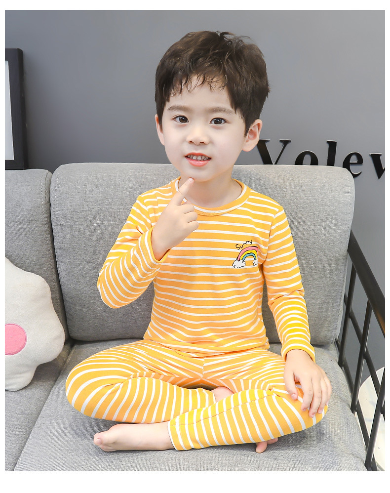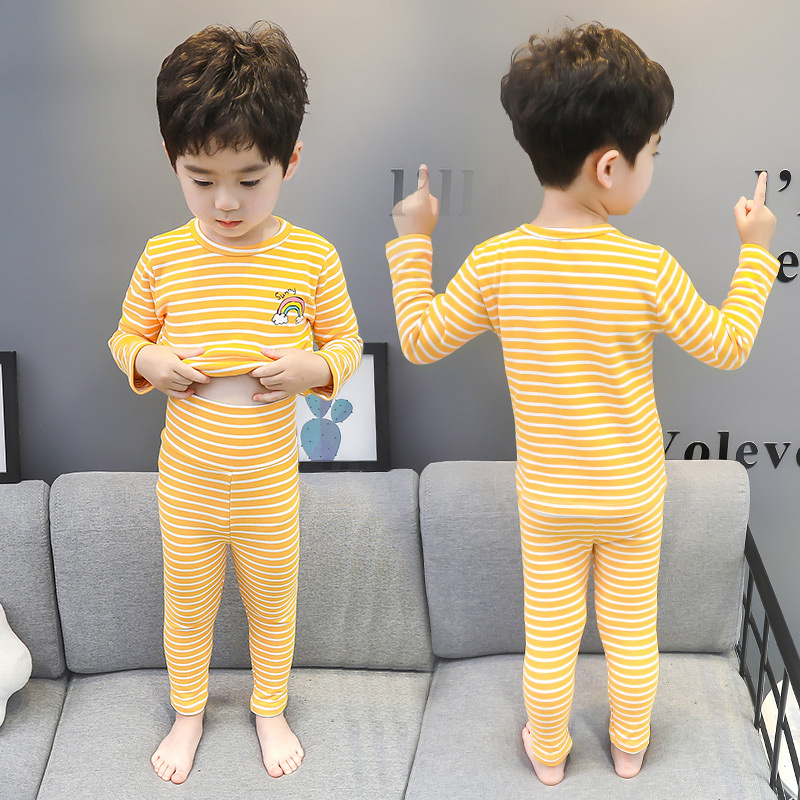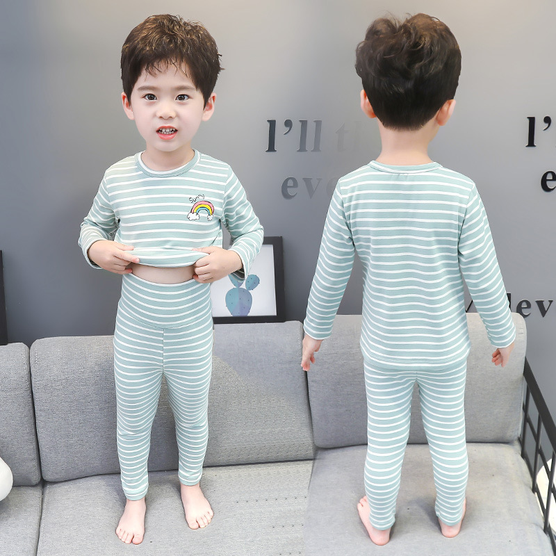 어린이 속옷 세트 가을 옷 줄무늬 긴팔 긴팔 긴팔 롱존 어린이 집 옷 소년 높은 허리 배꼽 보호 잠옷
