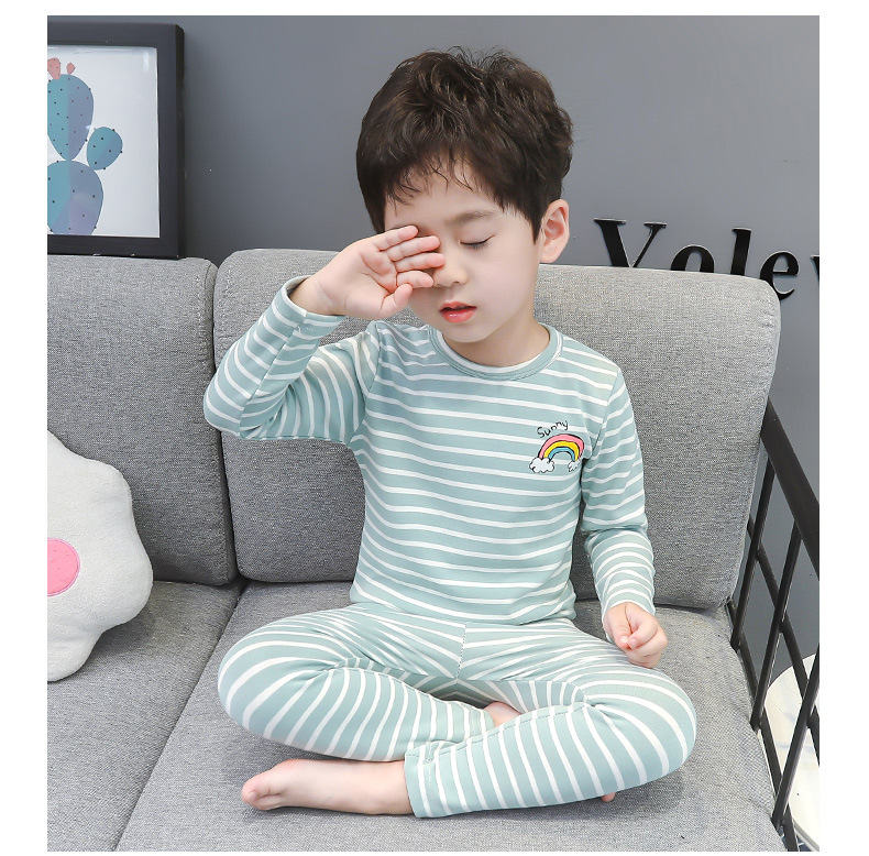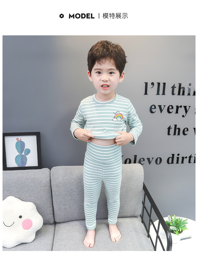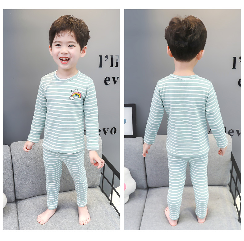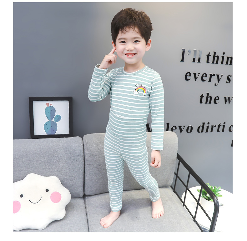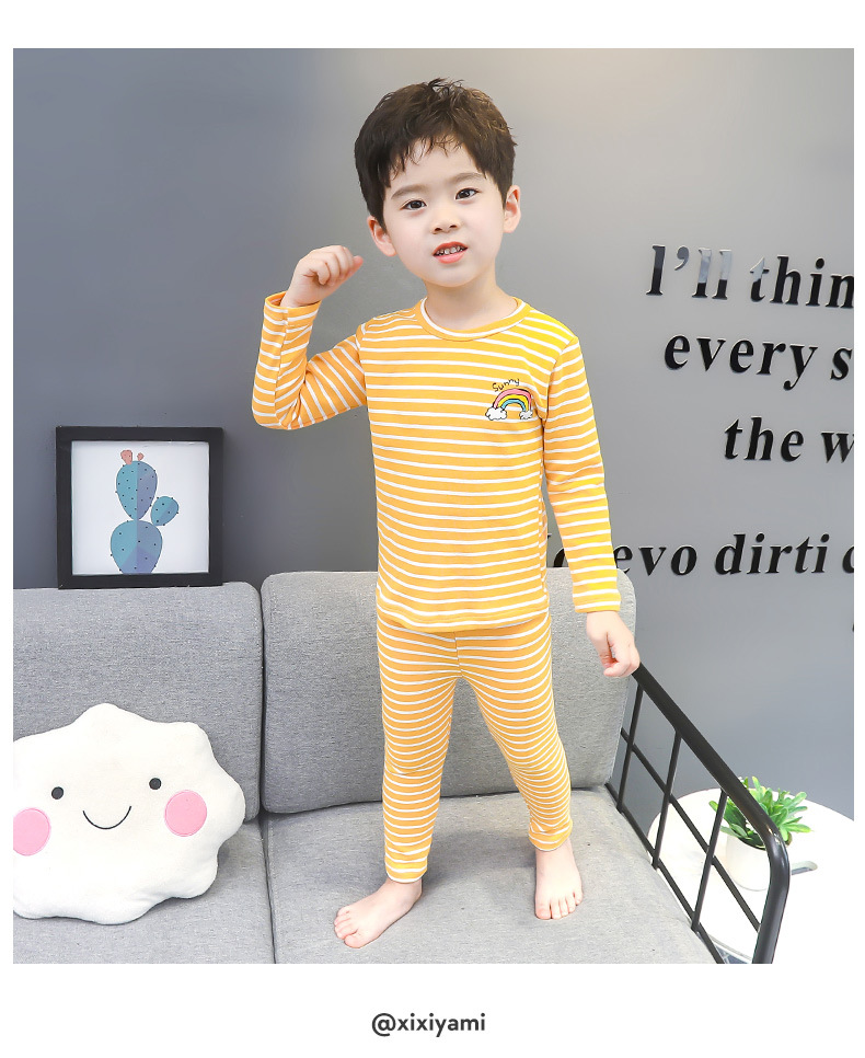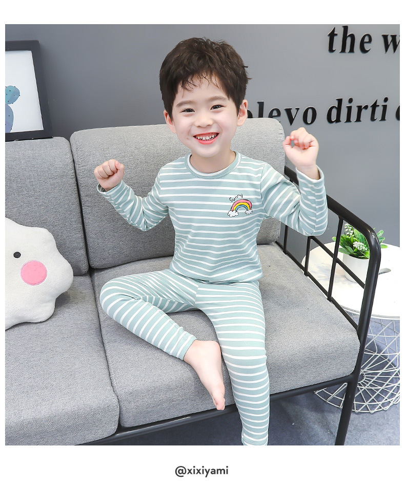 어린이 속옷 세트 가을 옷 줄무늬 긴팔 긴팔 긴팔 롱존 어린이 집 옷 소년 높은 허리 배꼽 보호 잠옷