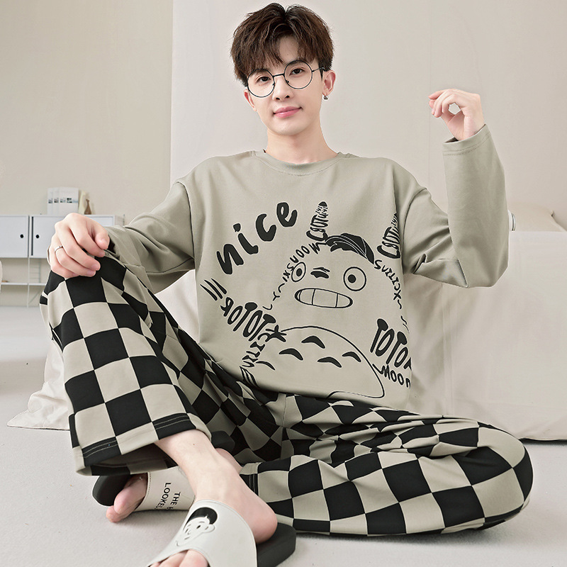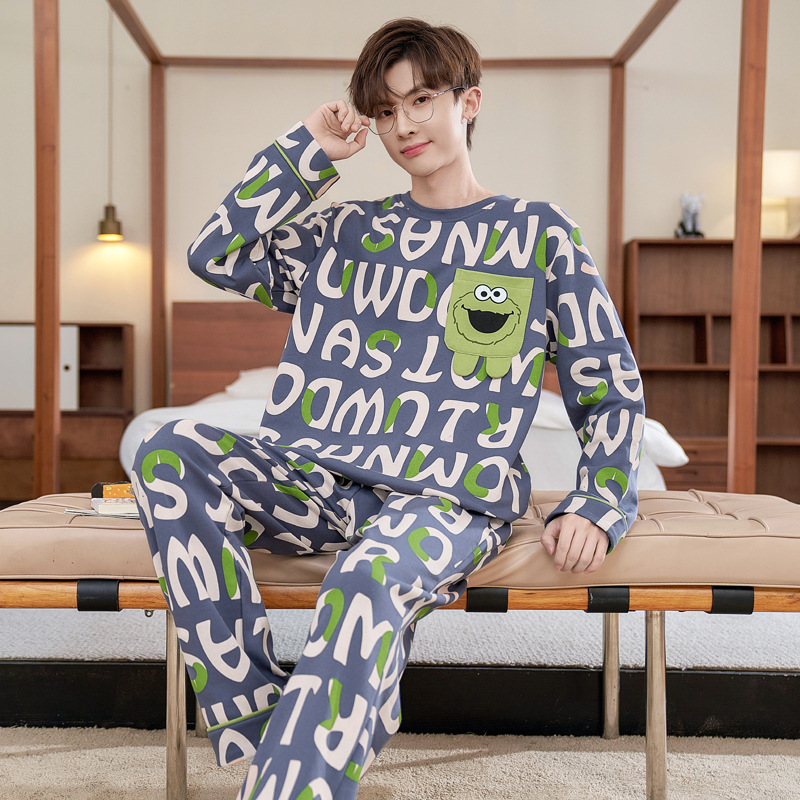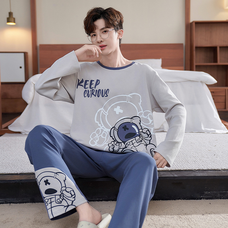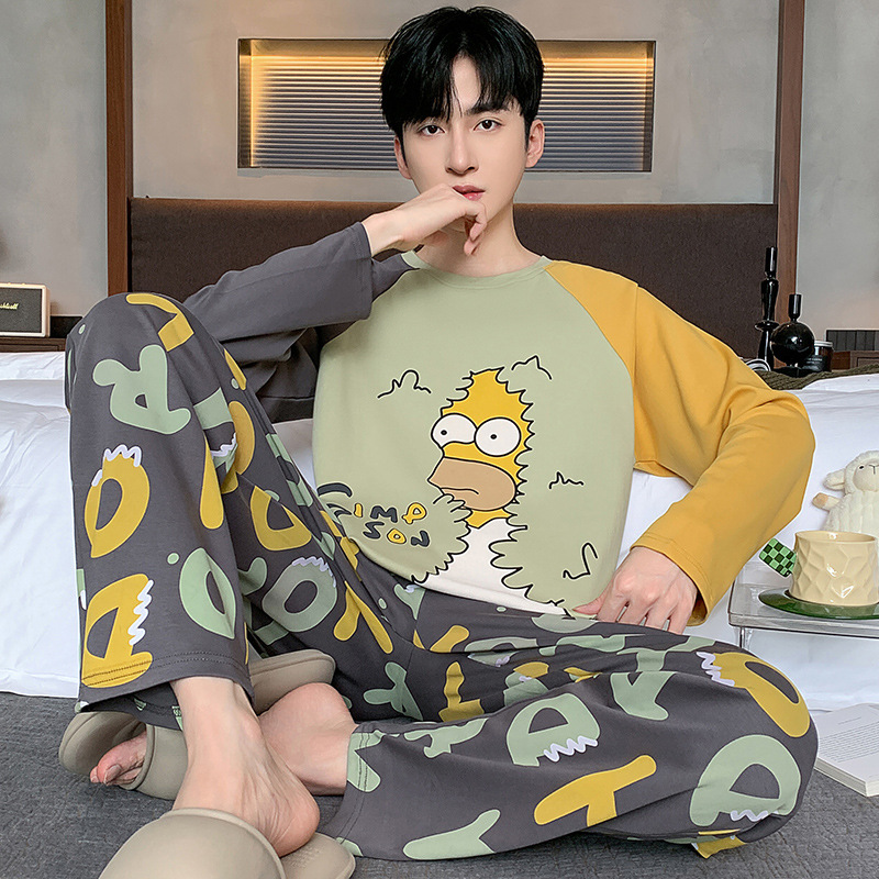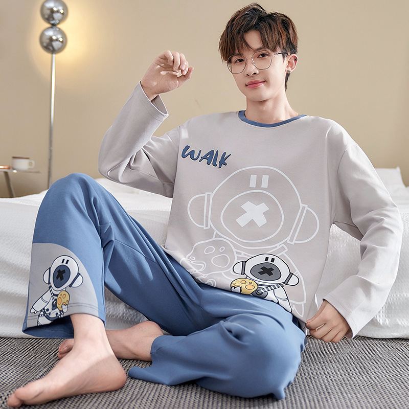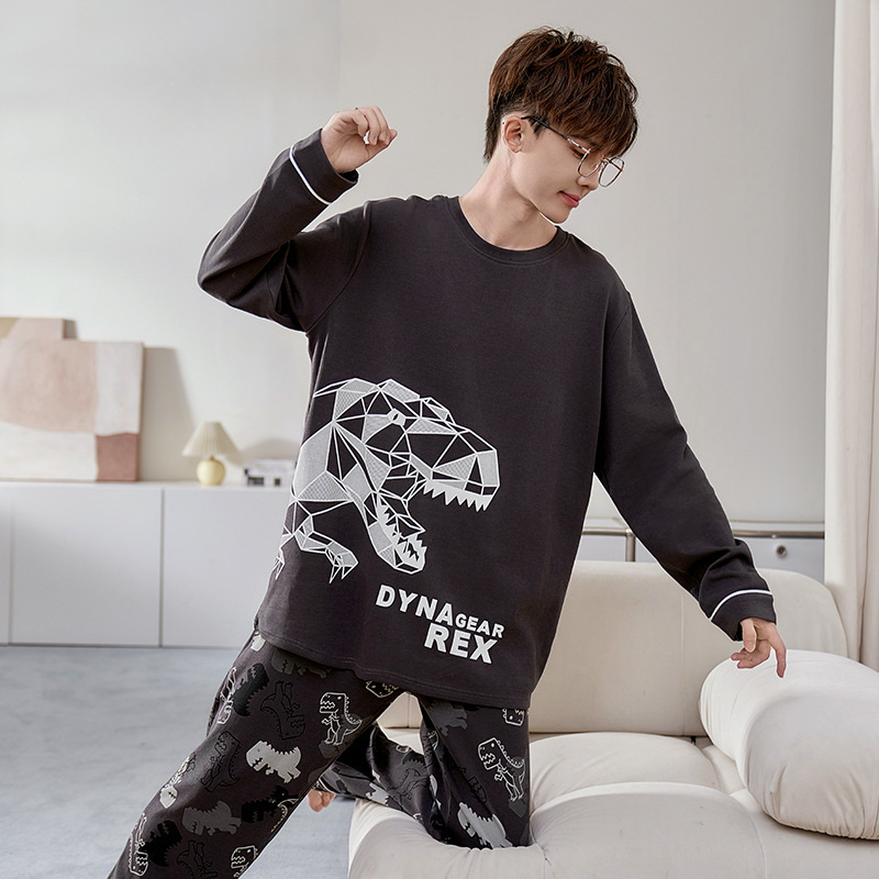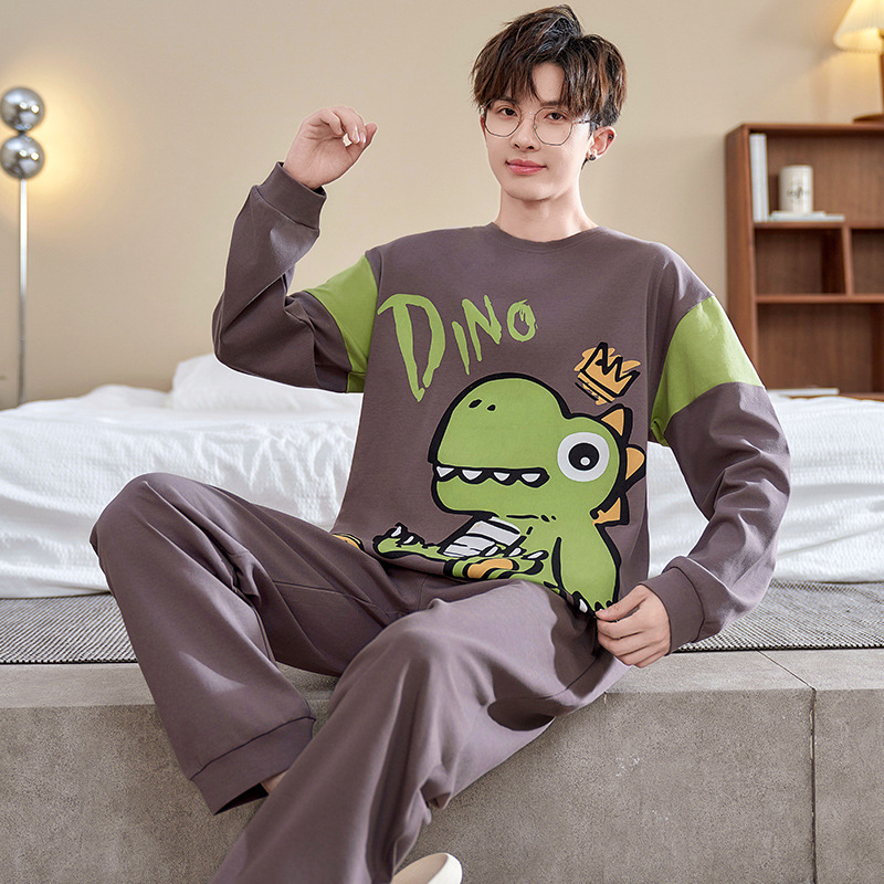 소년의 잠옷 봄과 가을 순면 긴 소매 얇은 십대 귀여운 만화 공룡 남자의 순면 지방 세트
