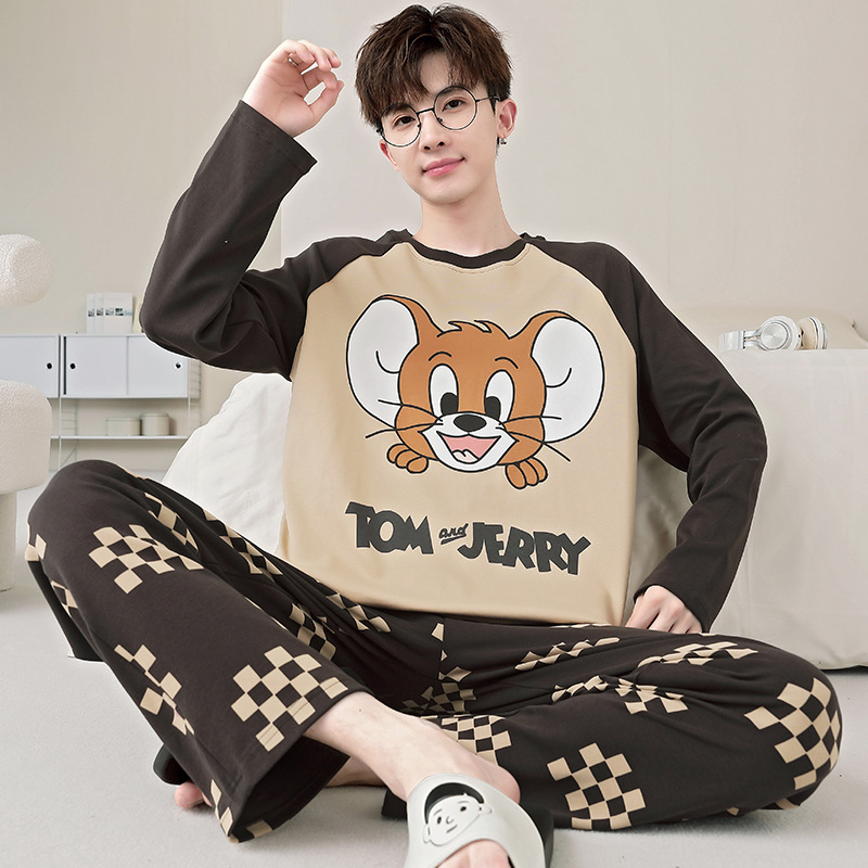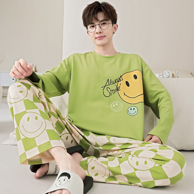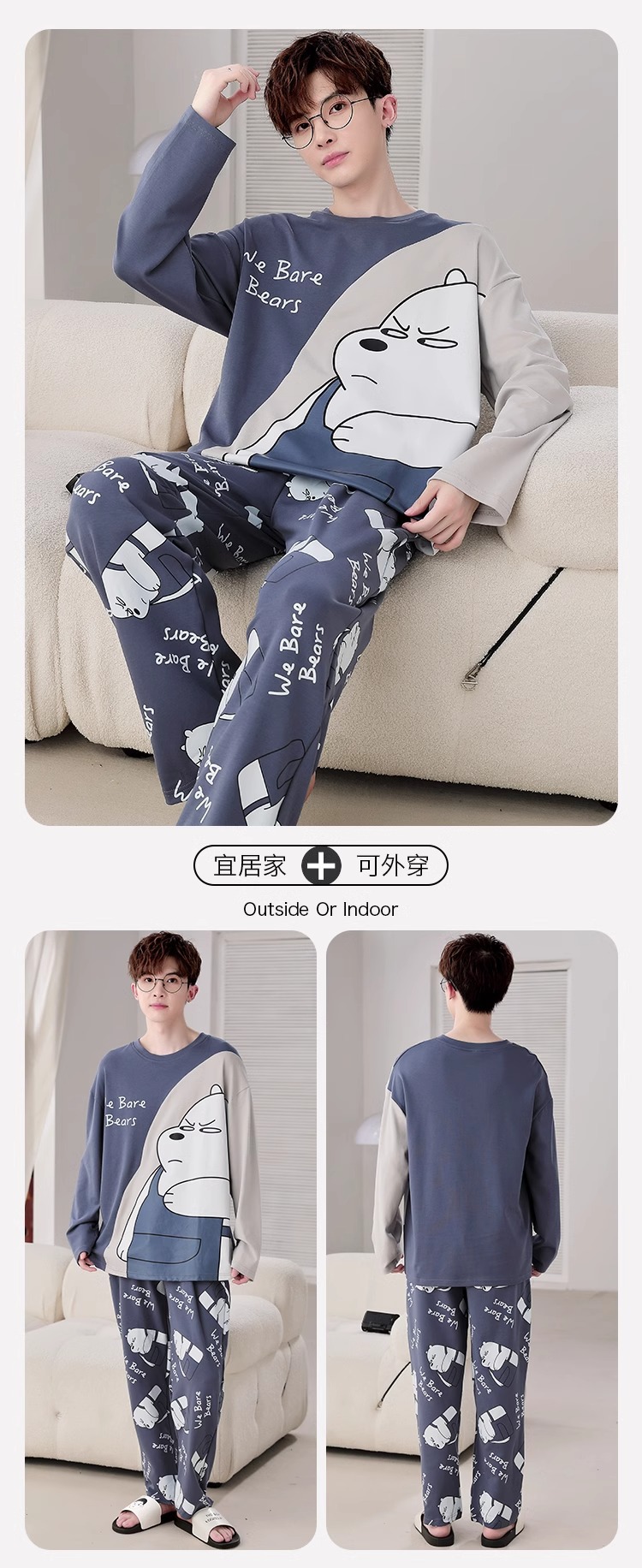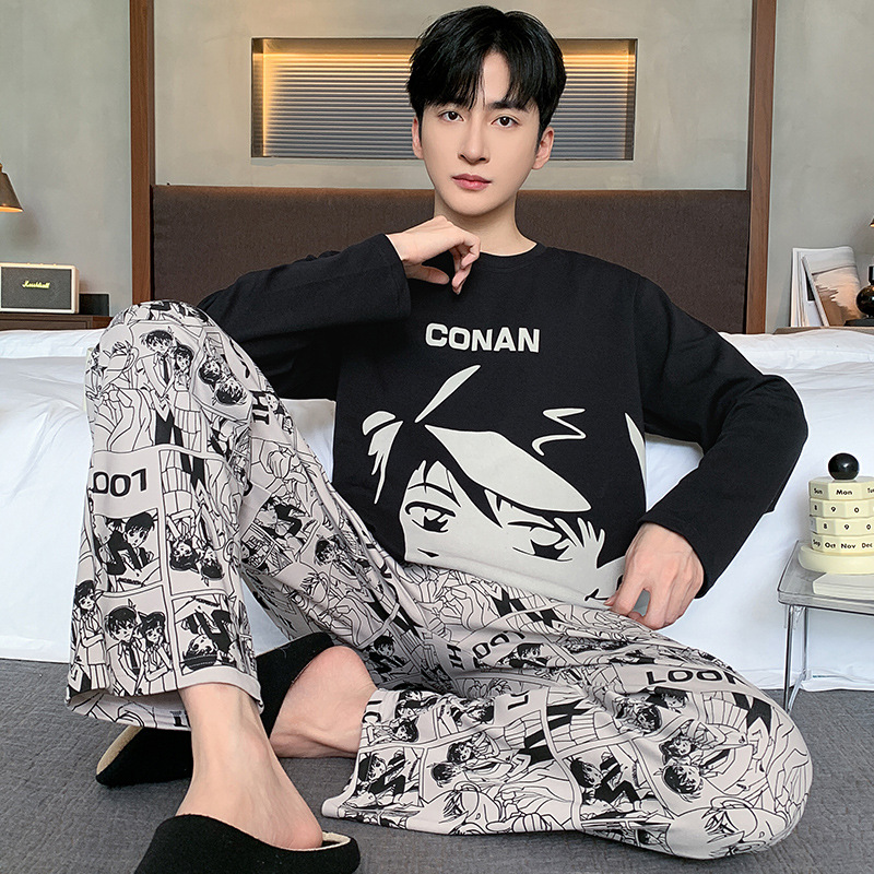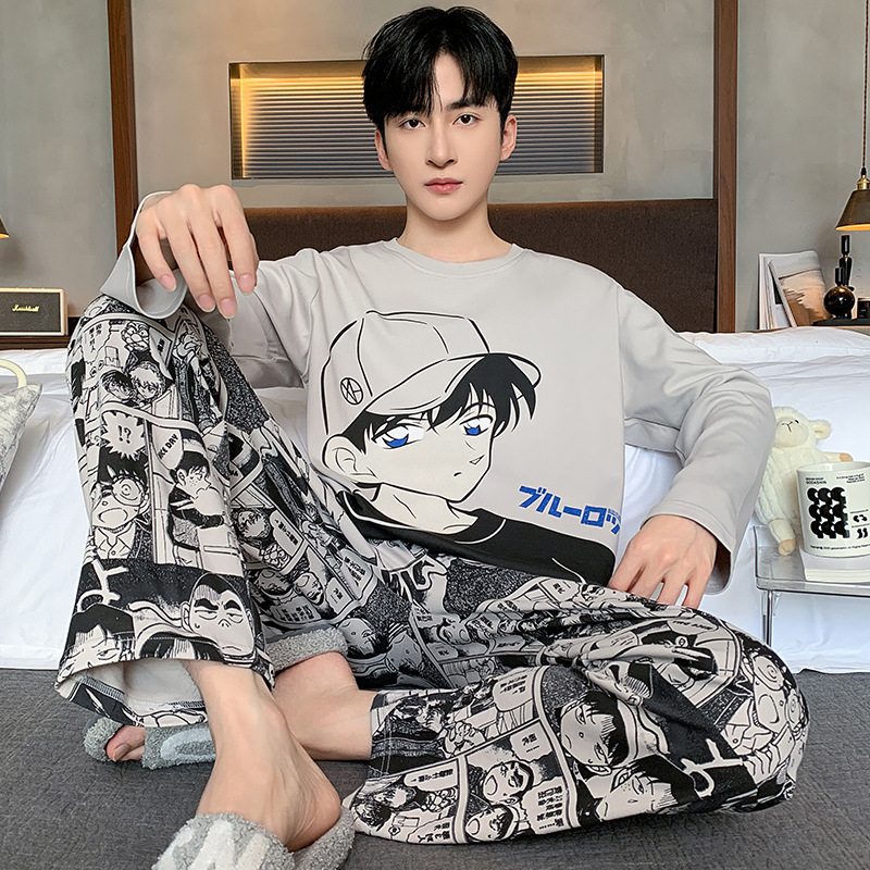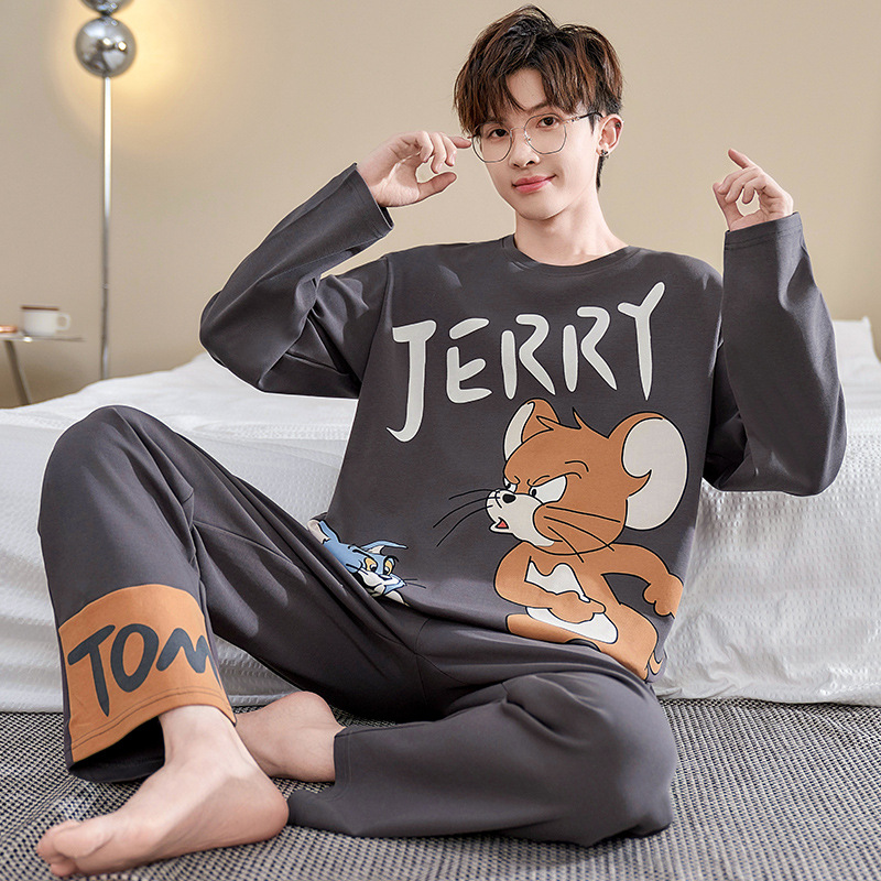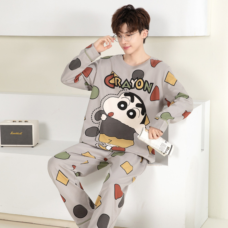 소년의 잠옷 봄과 가을 순면 긴 소매 얇은 십대 귀여운 만화 공룡 남자의 순면 지방 세트