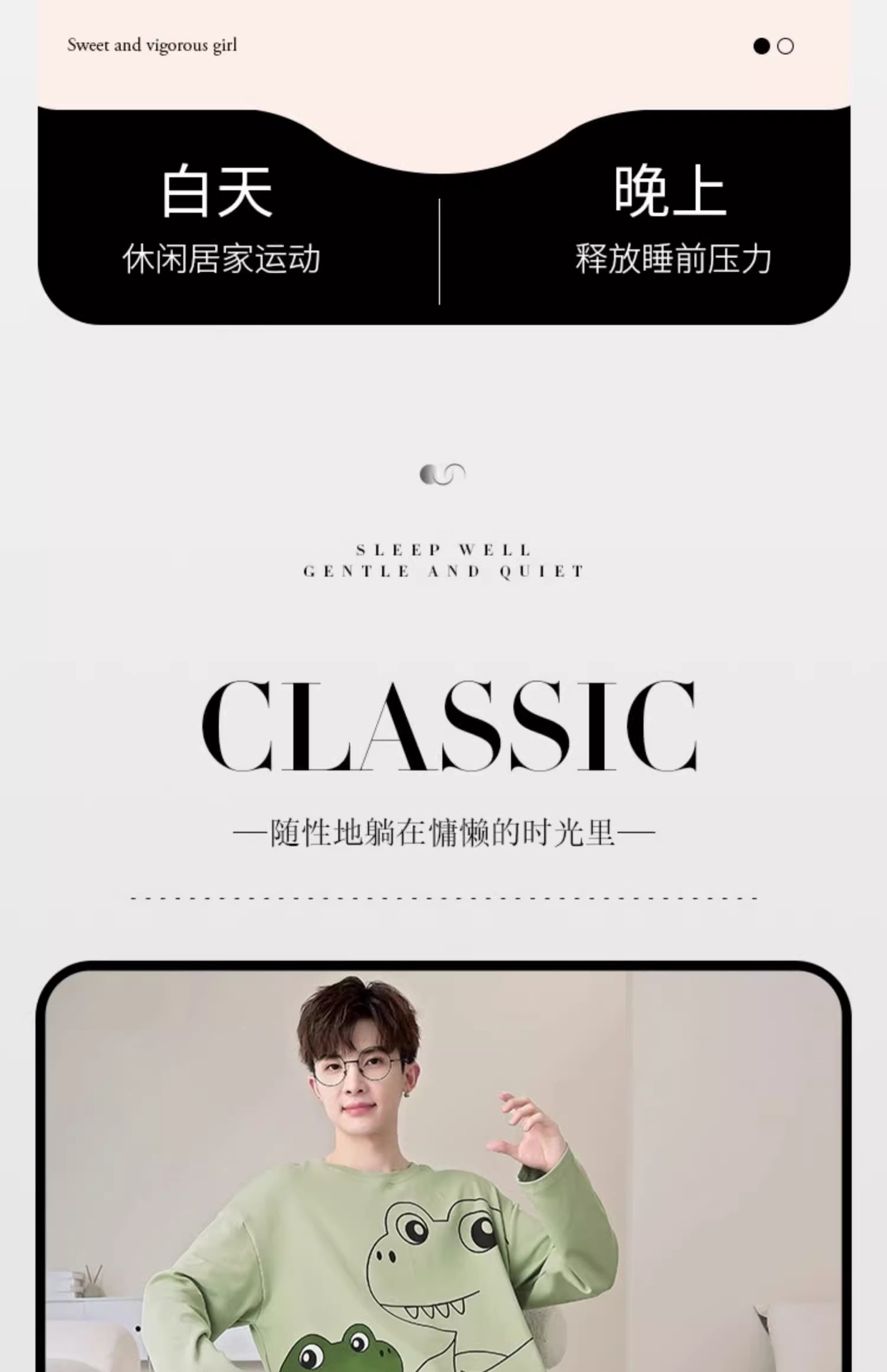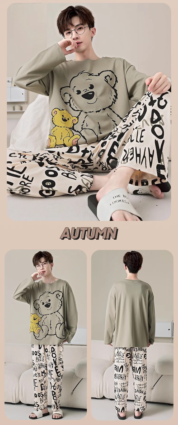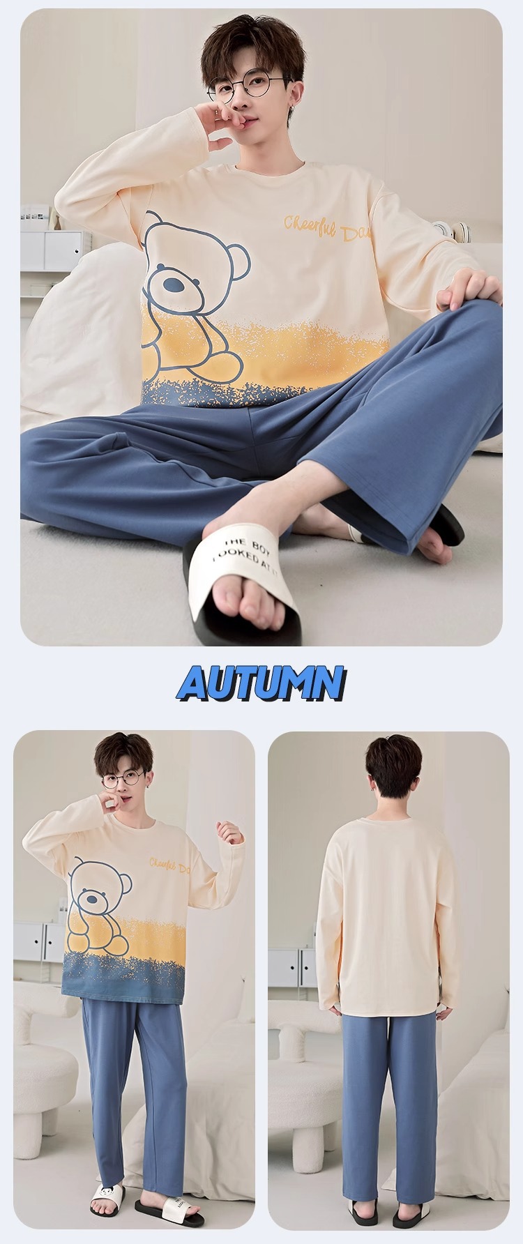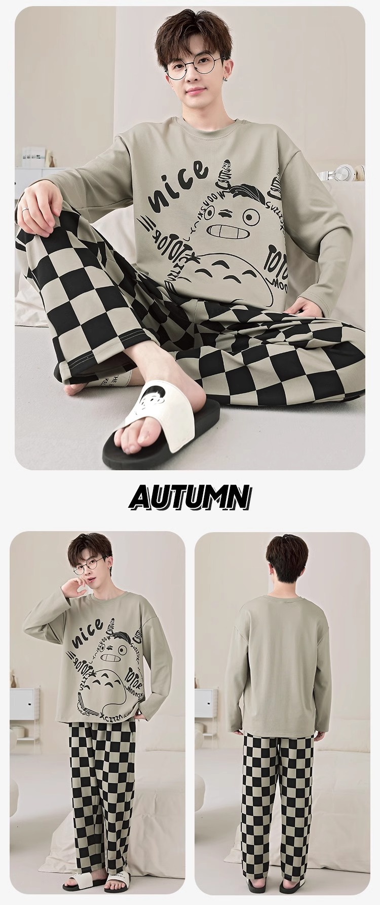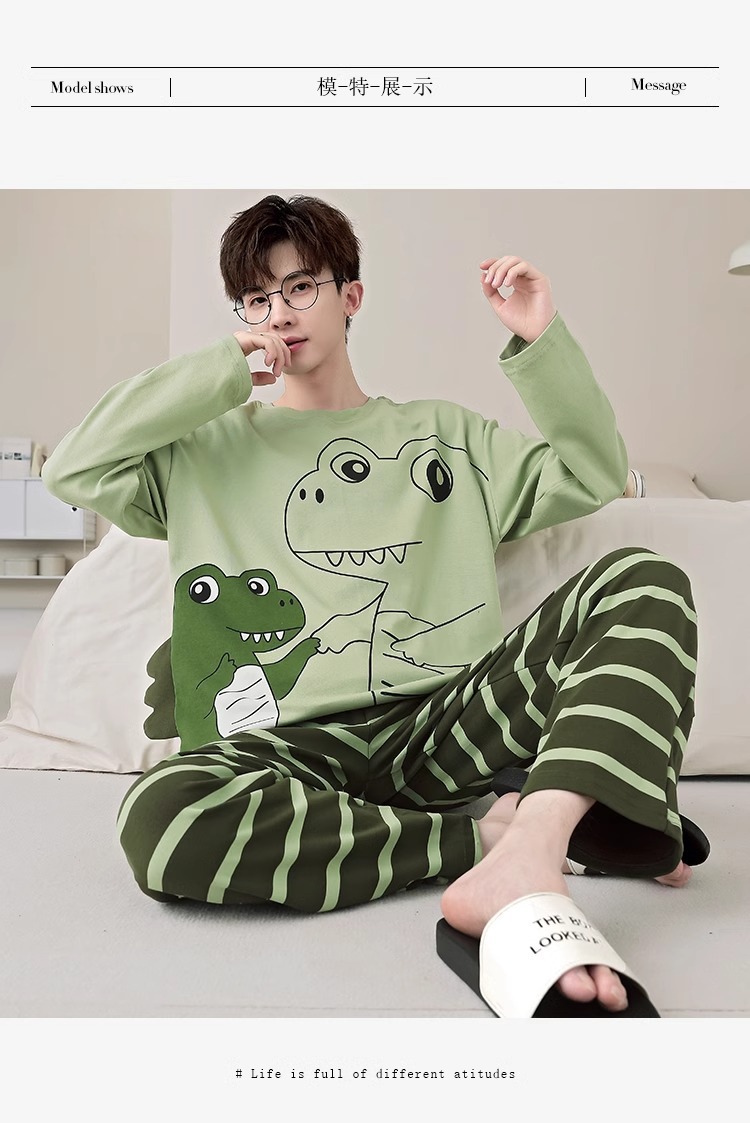 소년의 잠옷 봄과 가을 순면 긴 소매 얇은 십대 귀여운 만화 공룡 남자의 순면 지방 세트스토어 가기