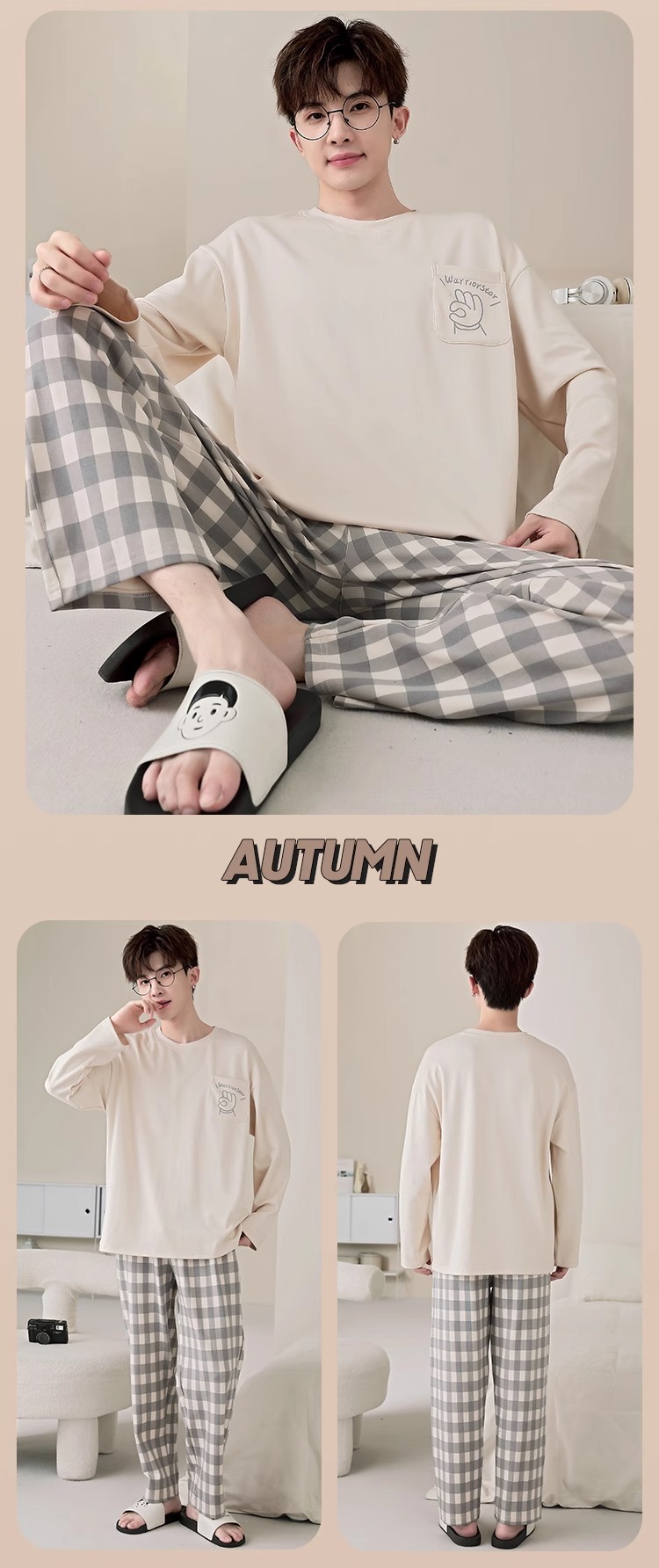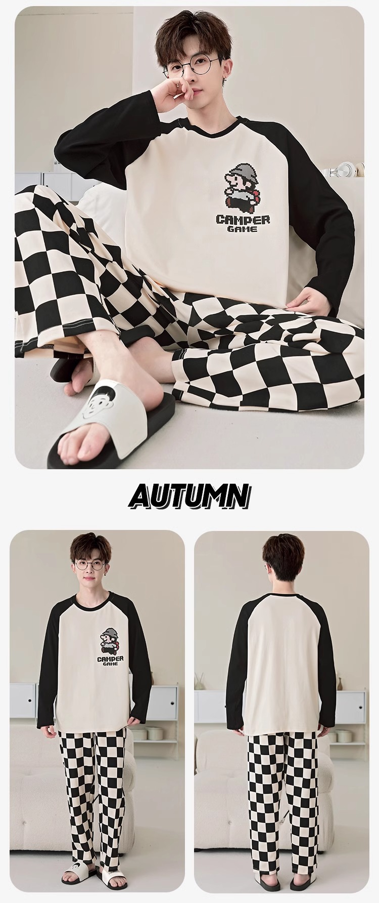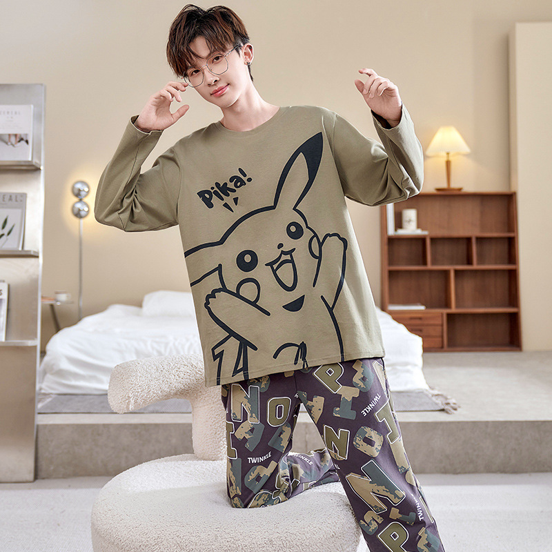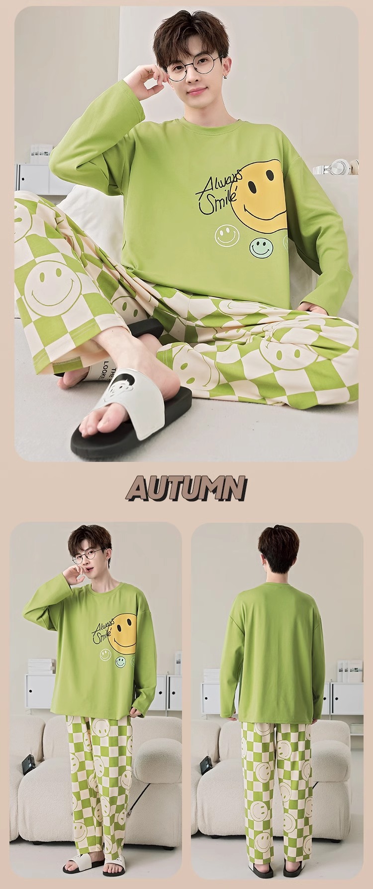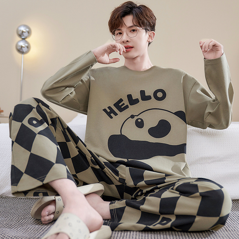 소년의 잠옷 봄과 가을 순면 긴 소매 얇은 십대 귀여운 만화 공룡 남자의 순면 지방 세트스토어 가기