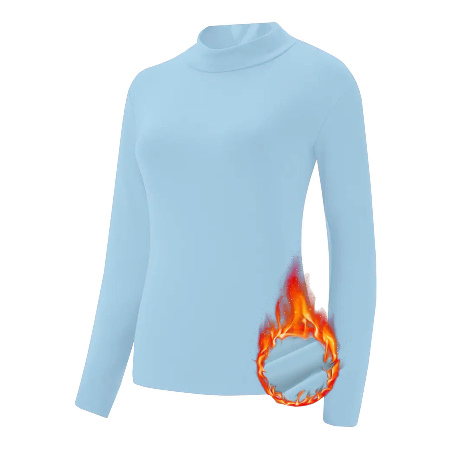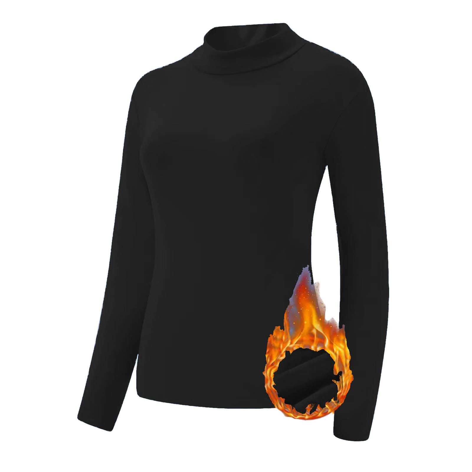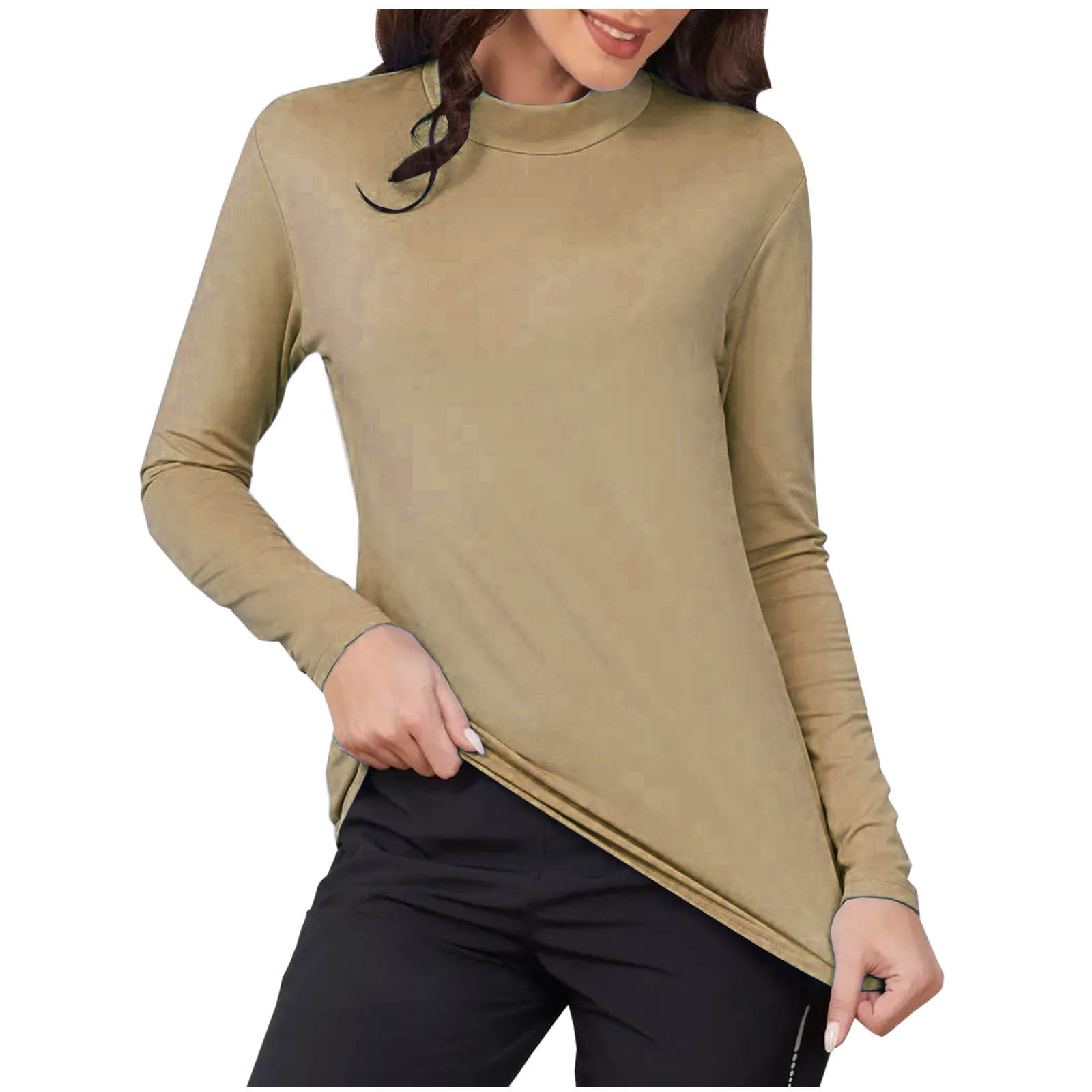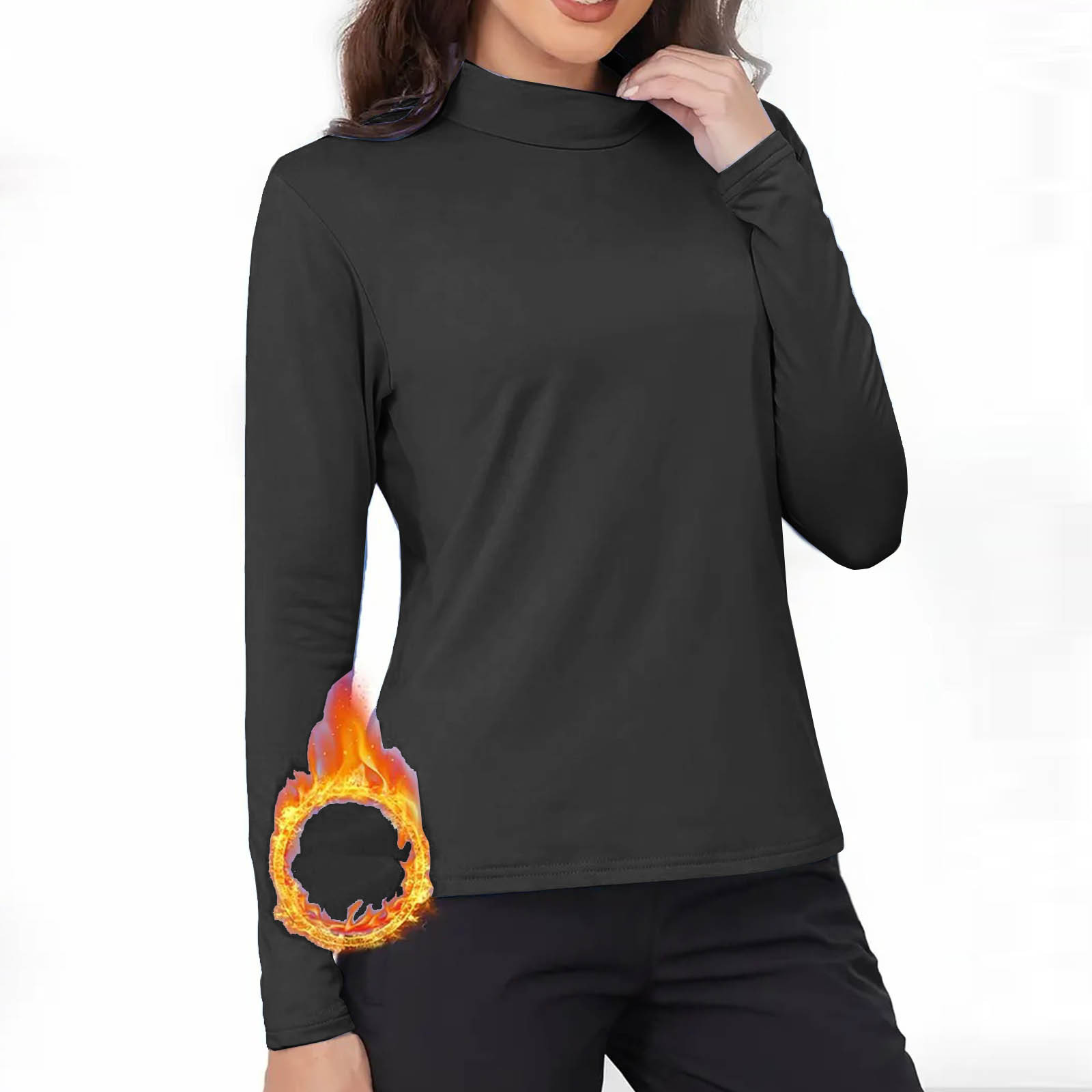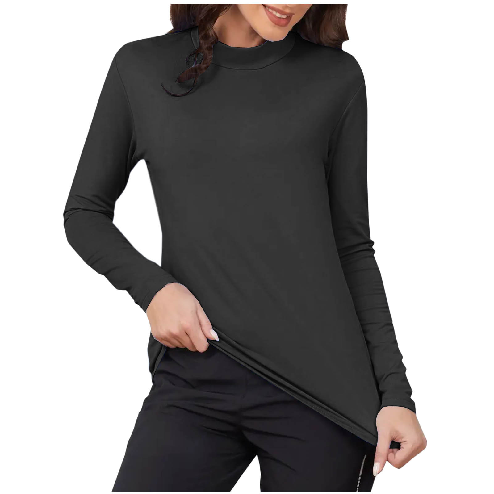 국경을 넘나 드는 유럽과 미국의 2024 단색 반 터틀넥 슬림 핏 스트레치 기모 여성의 가을과 겨울 꽉 긴팔베이스 셔츠