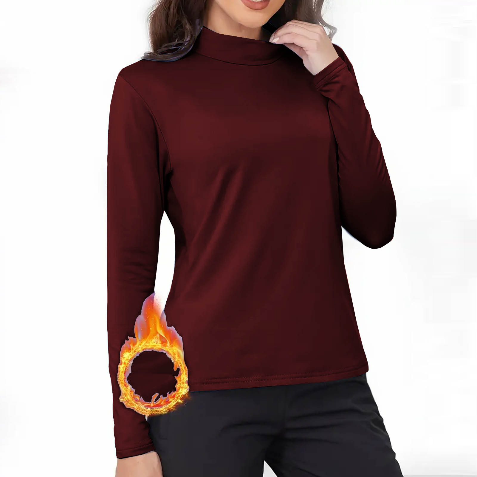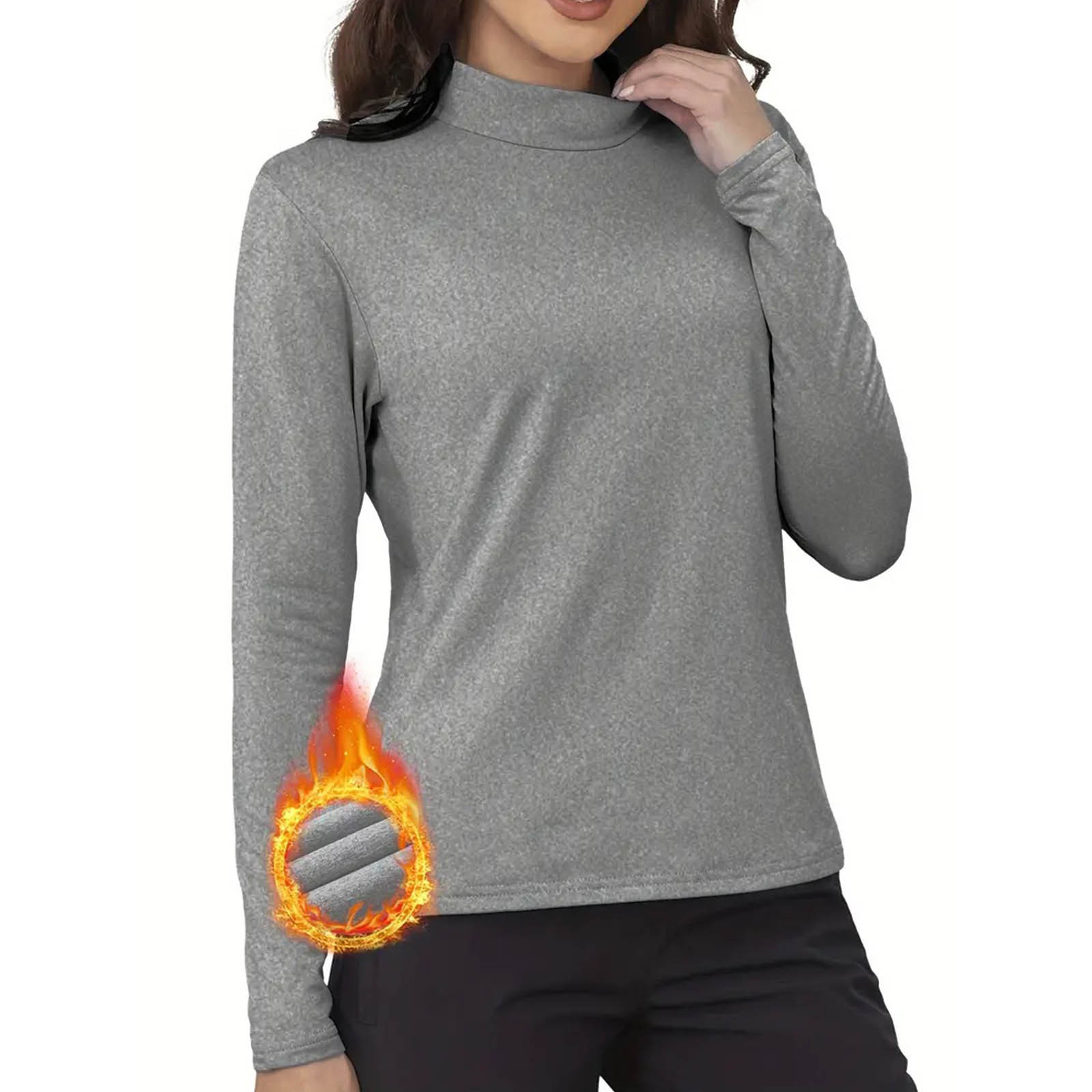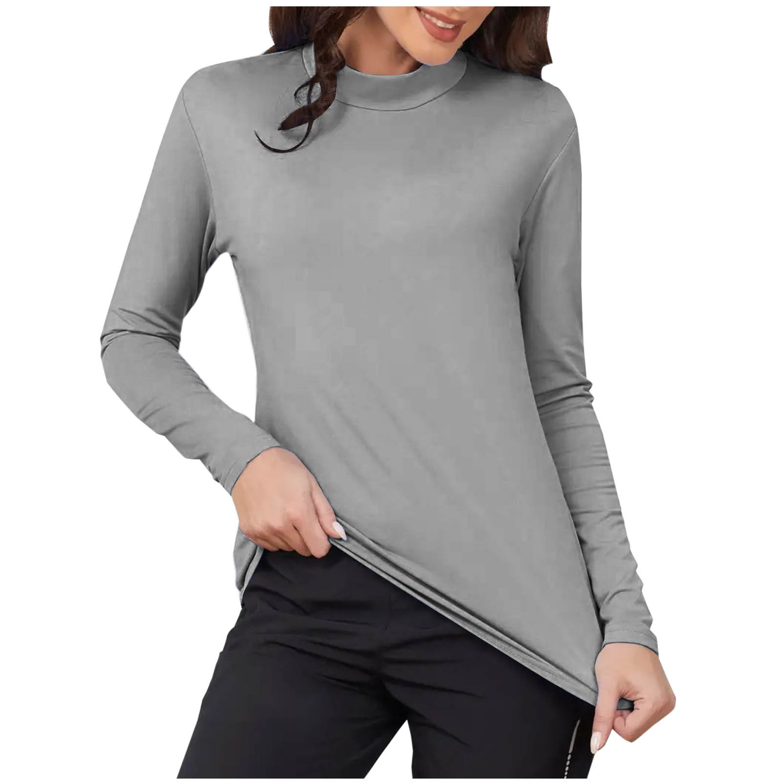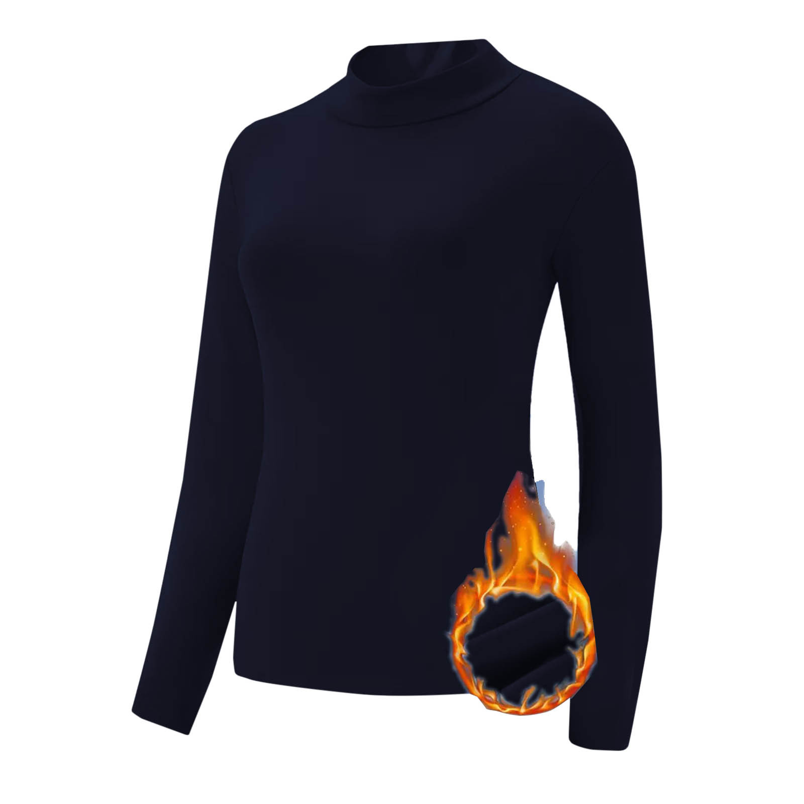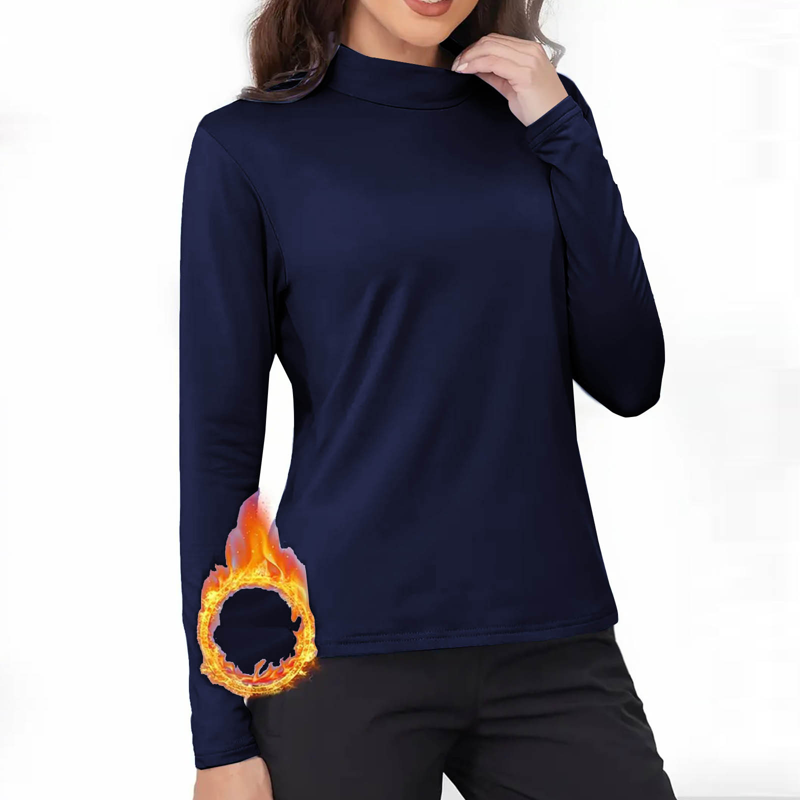 국경을 넘나 드는 유럽과 미국의 2024 단색 반 터틀넥 슬림 핏 스트레치 기모 여성의 가을과 겨울 꽉 긴팔베이스 셔츠