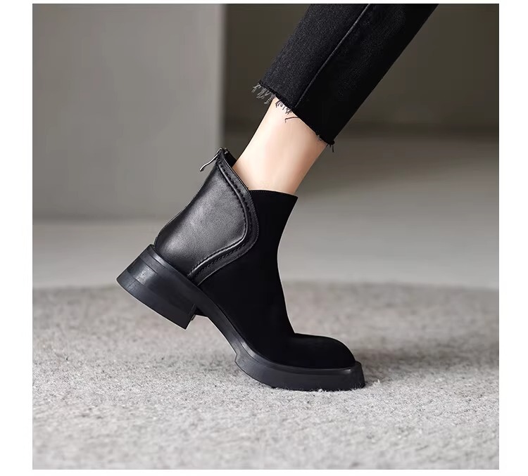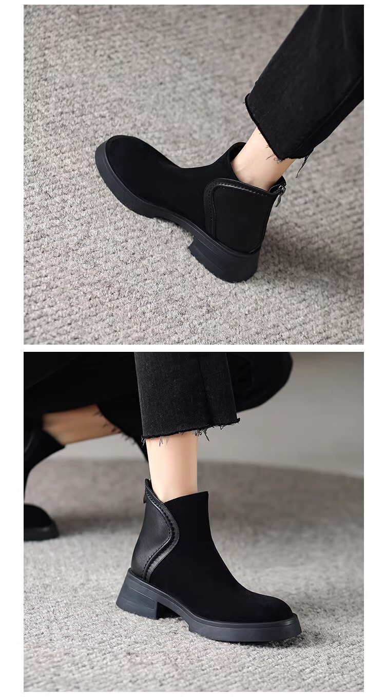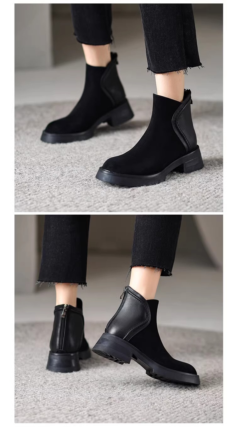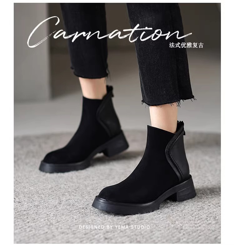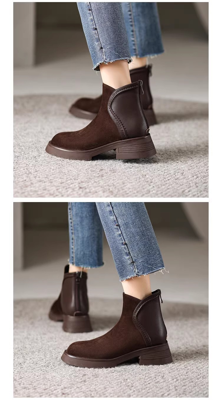 영국풍 무광 숏부츠 여성용 두꺼운 밑창 가을 겨울 신상 천연 가죽 스웨이드 다용도 마틴부츠 굽높이 중간스토어 가기