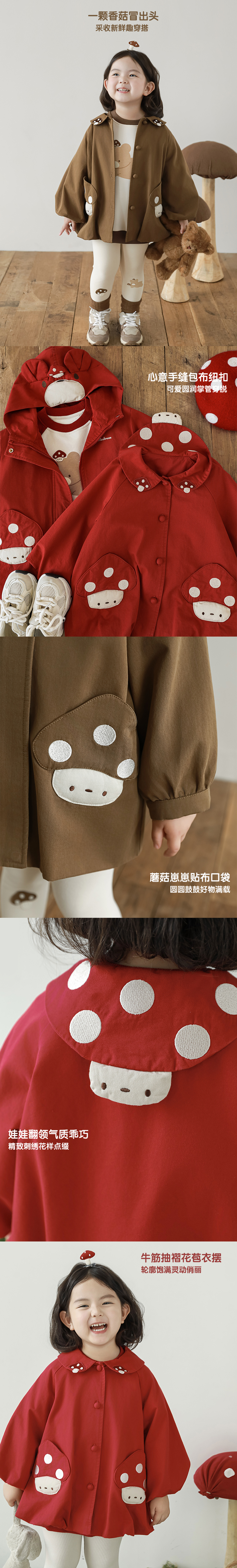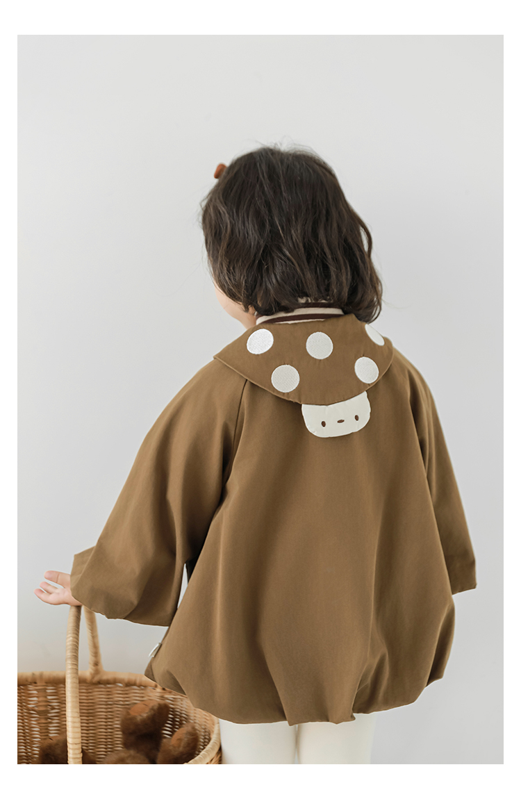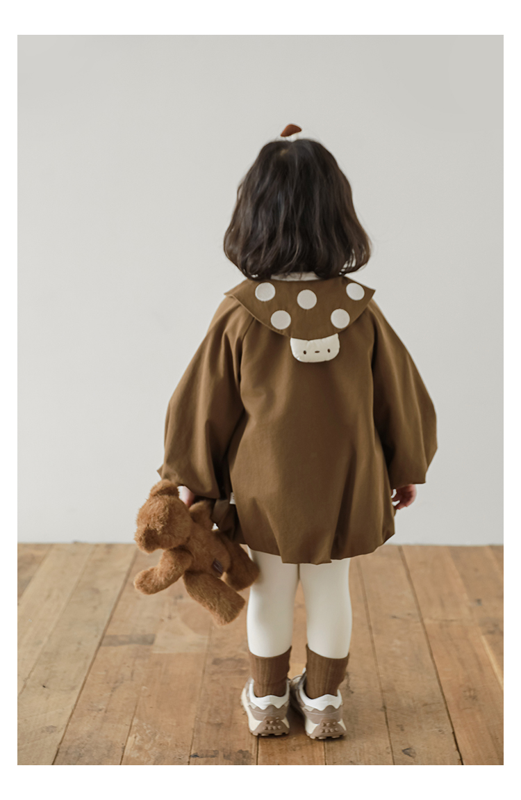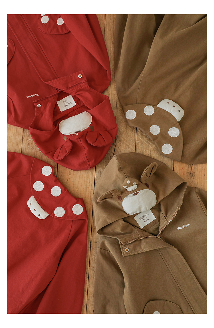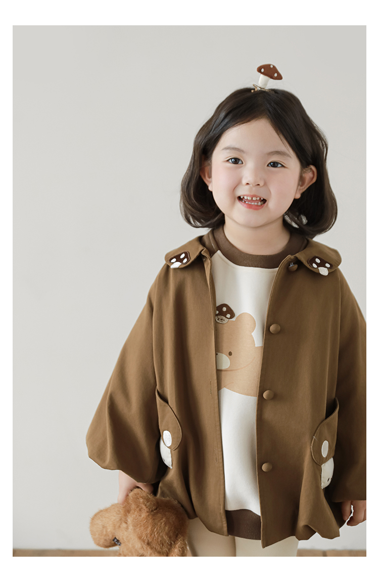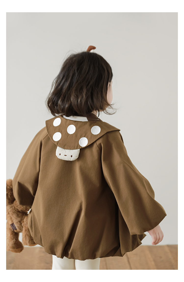 우립 한 소녀 인형 옷깃 코트 가을 어린이 귀여운 버섯 패치 작은 곰 인형 후드 코트스토어 가기