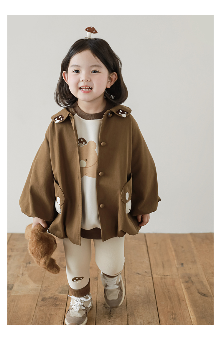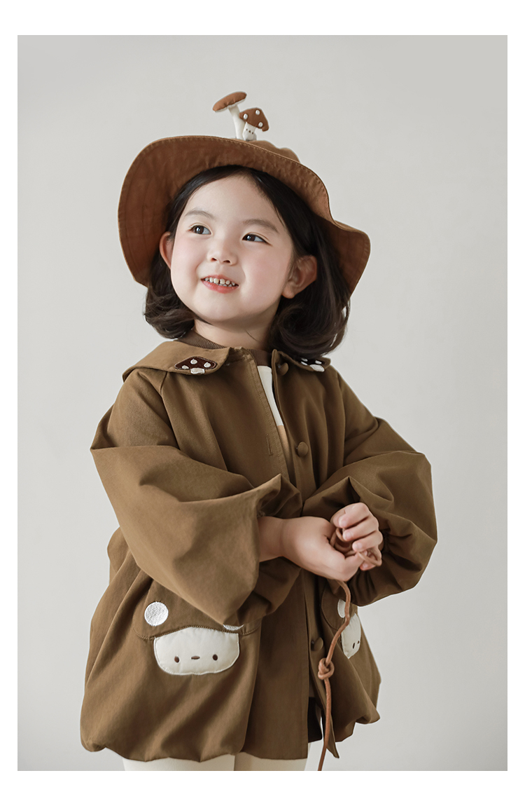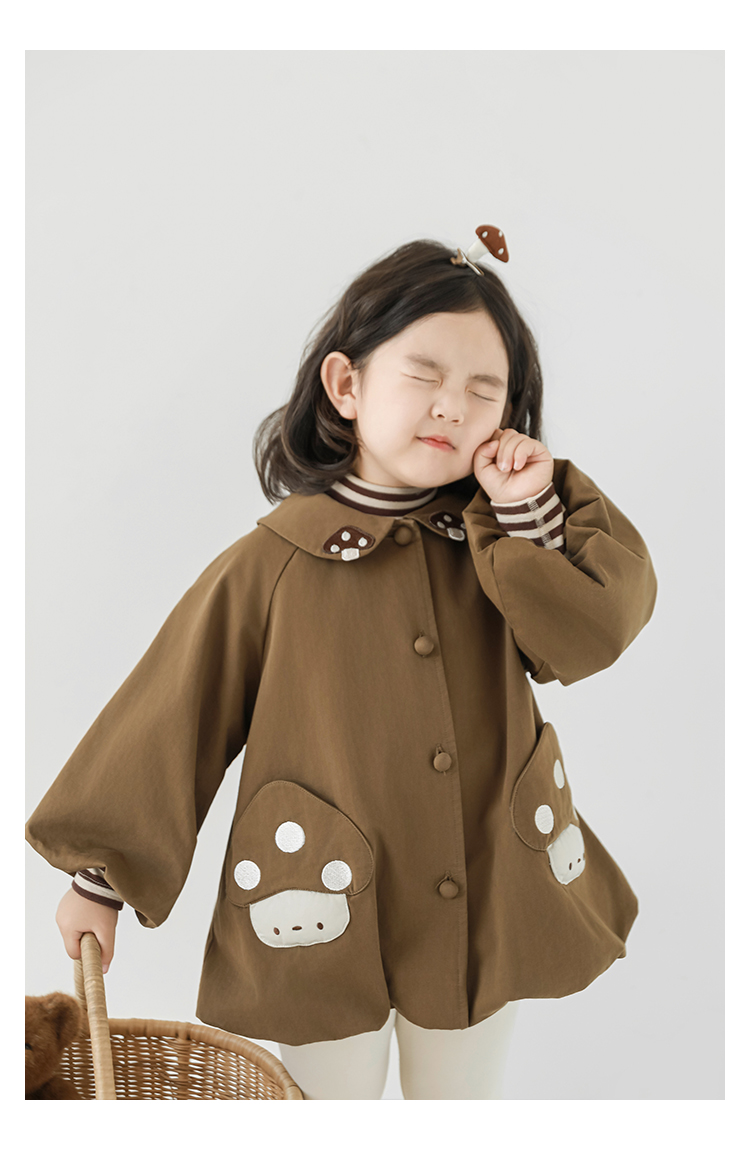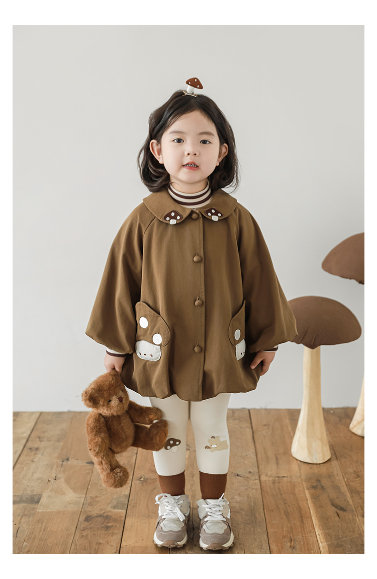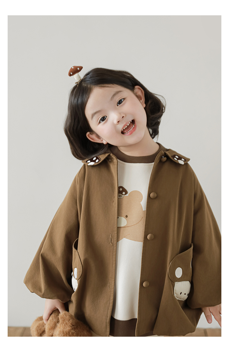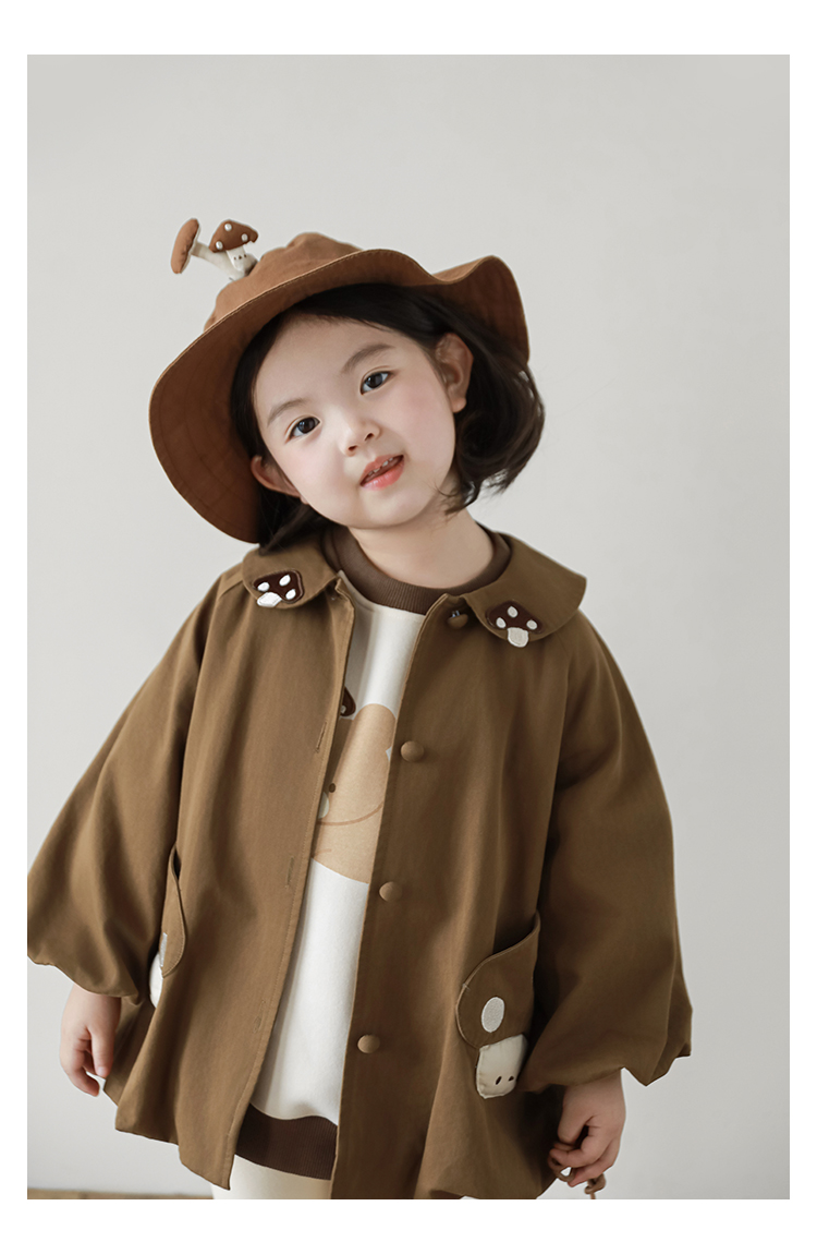 우립 한 소녀 인형 옷깃 코트 가을 어린이 귀여운 버섯 패치 작은 곰 인형 후드 코트스토어 가기