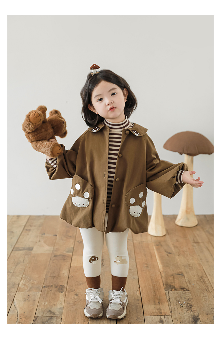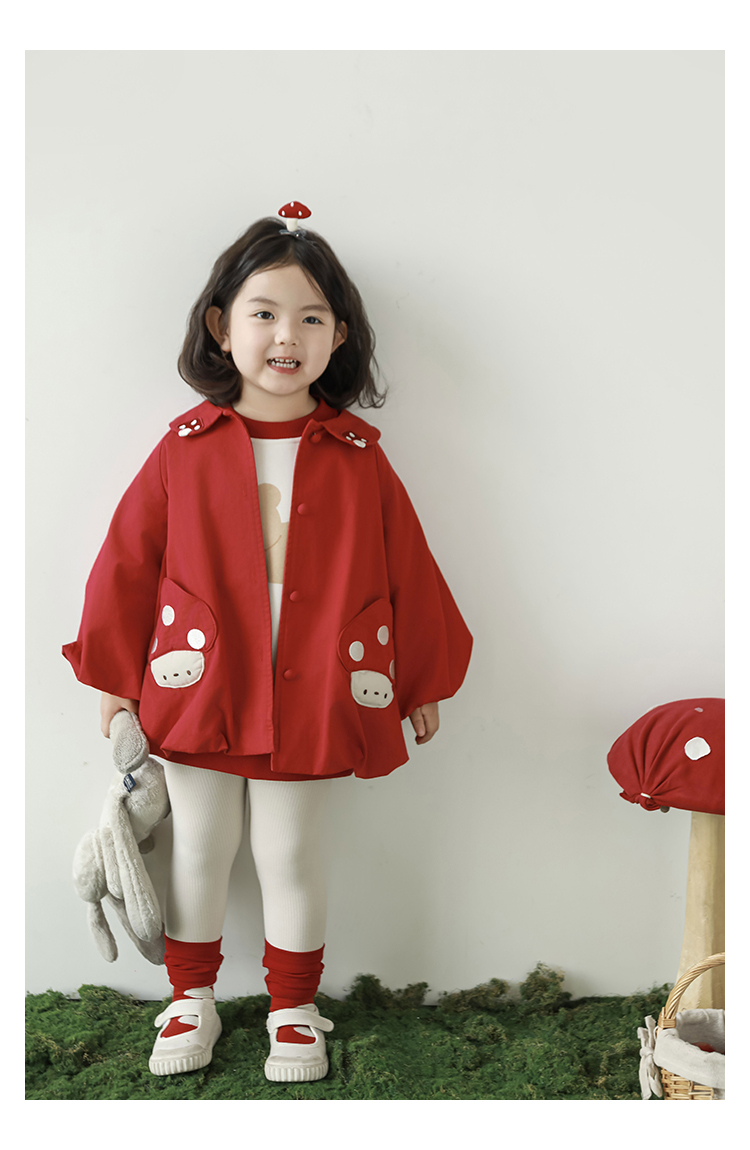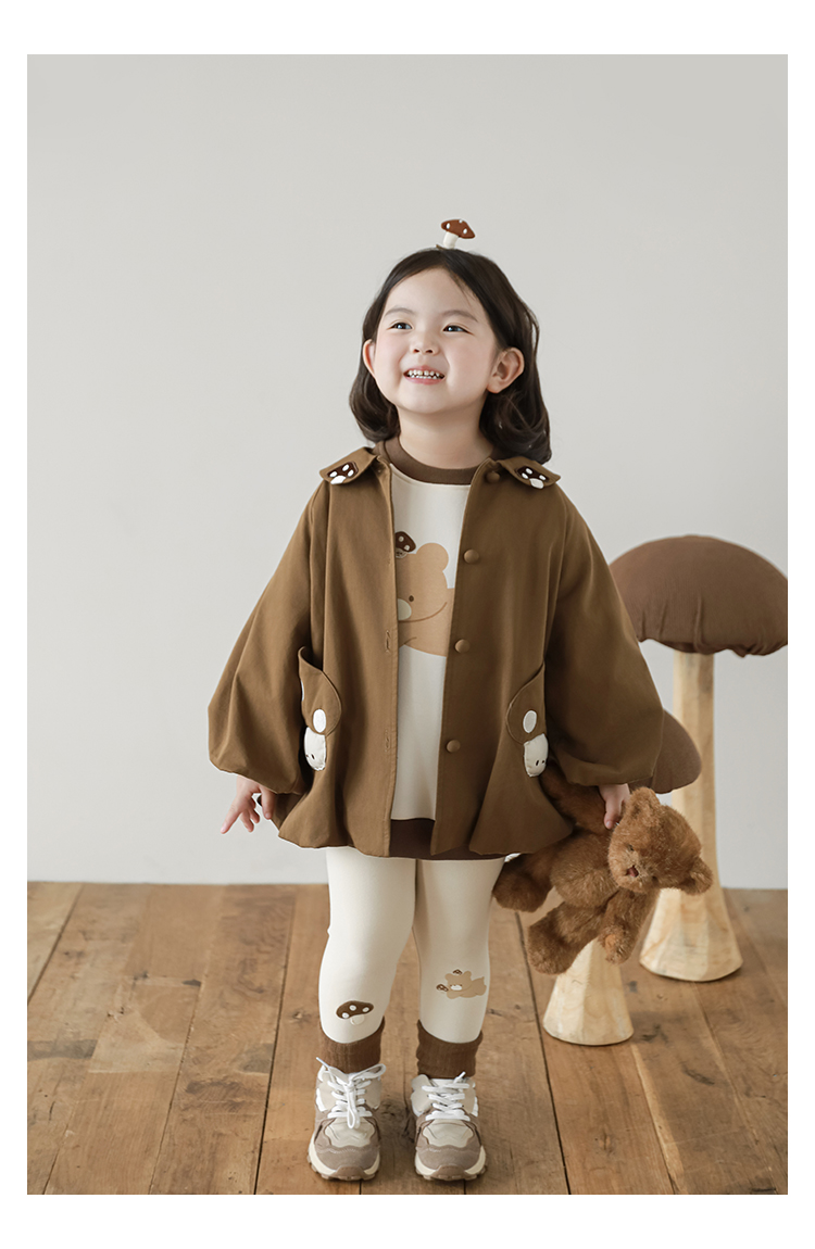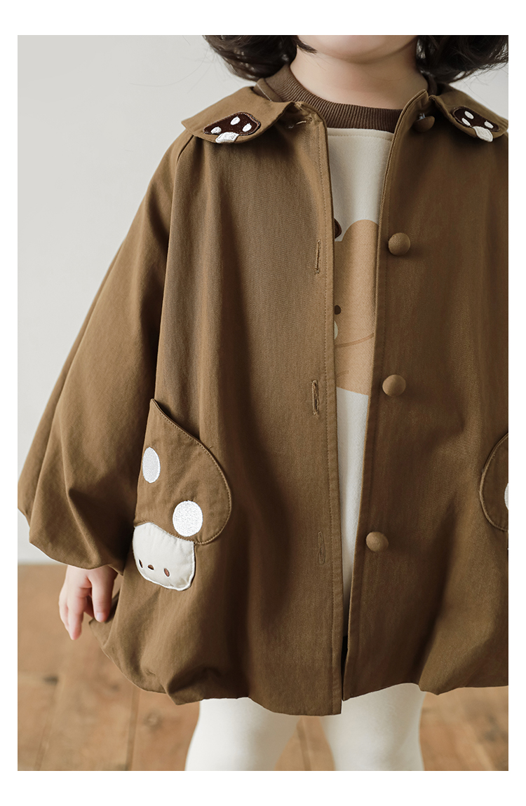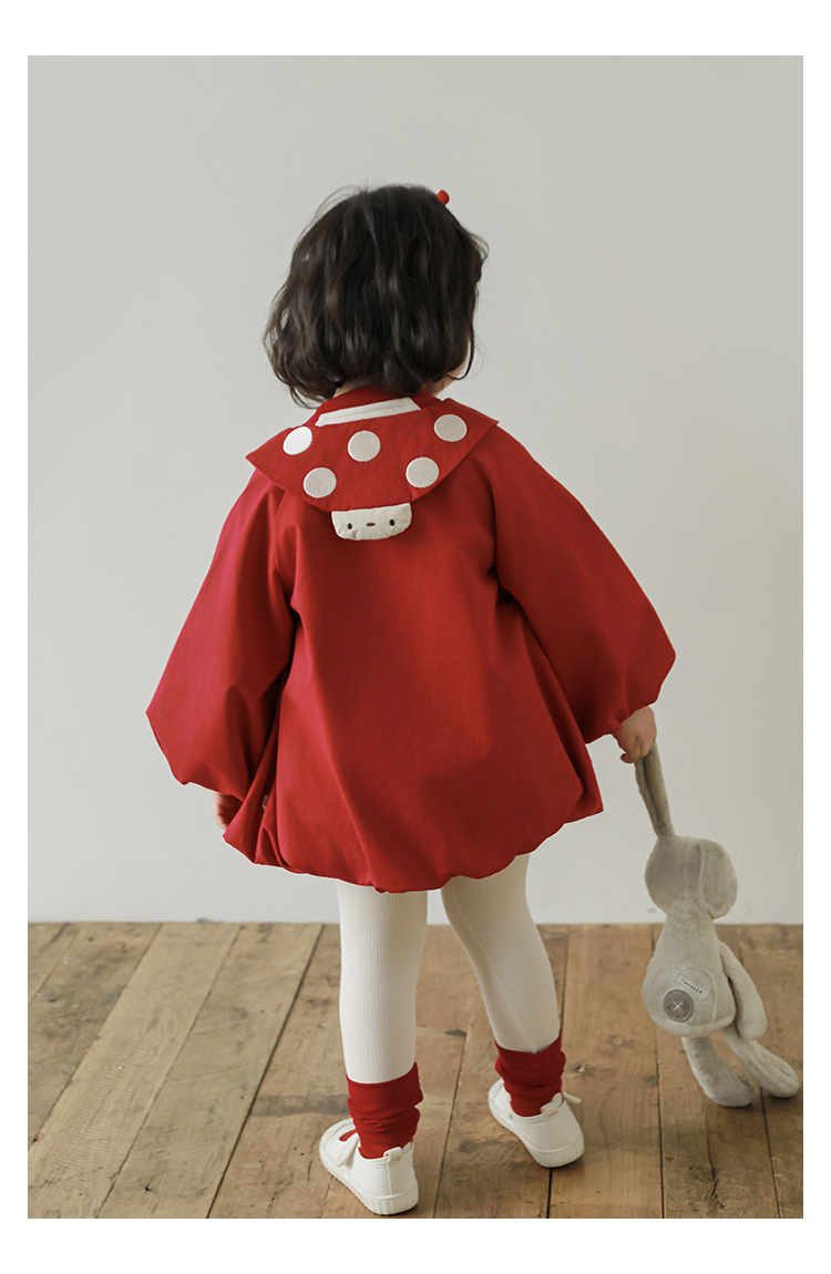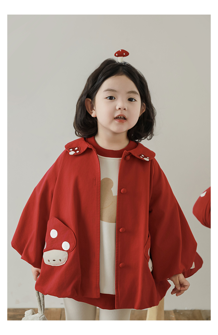 우립 한 소녀 인형 옷깃 코트 가을 어린이 귀여운 버섯 패치 작은 곰 인형 후드 코트스토어 가기