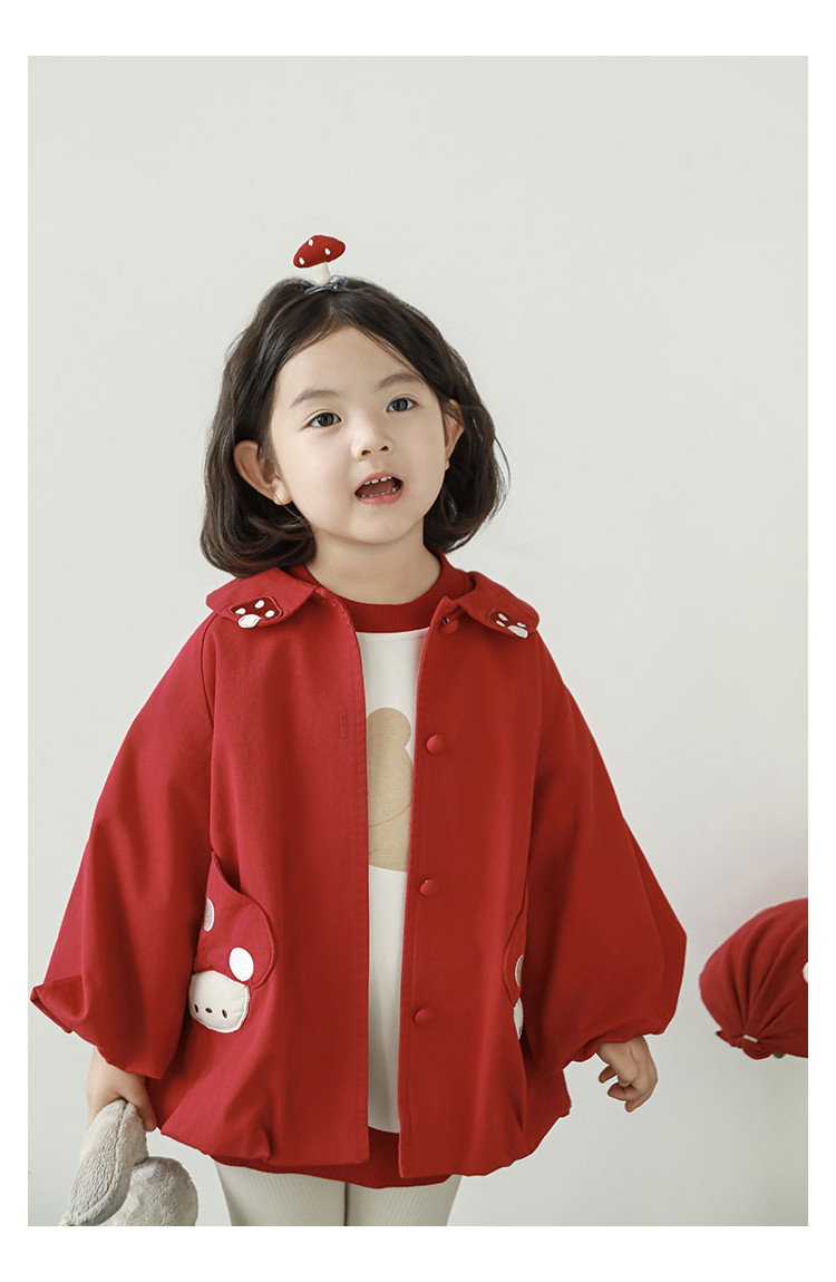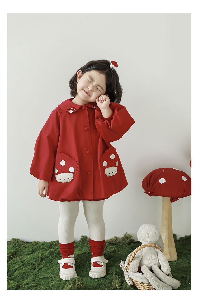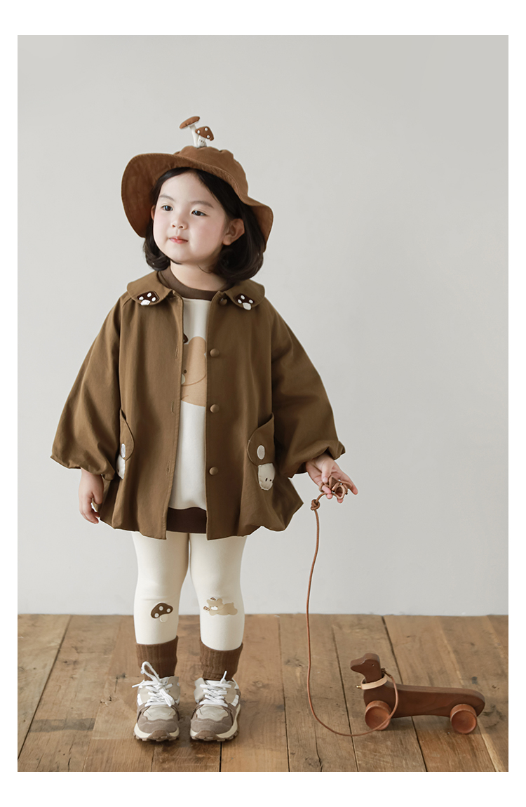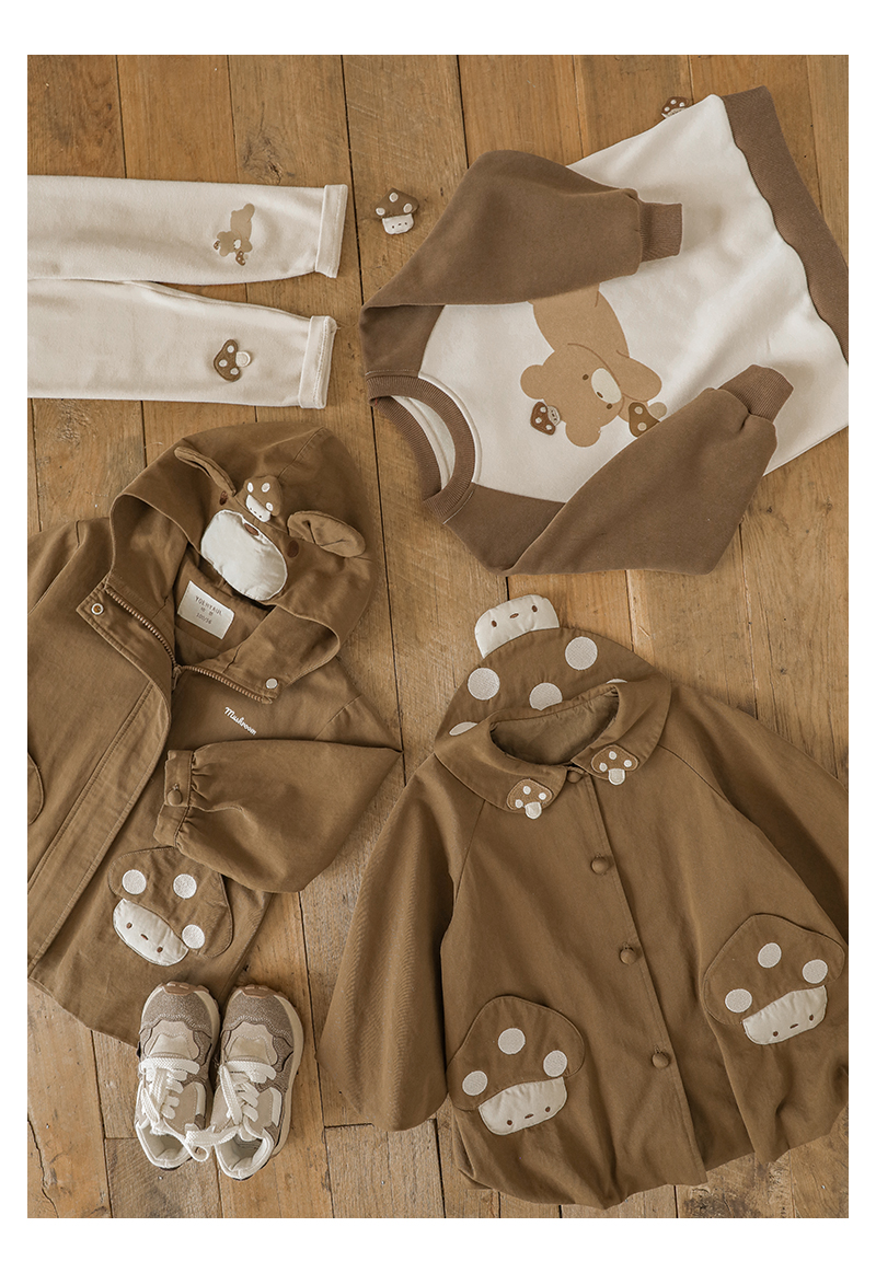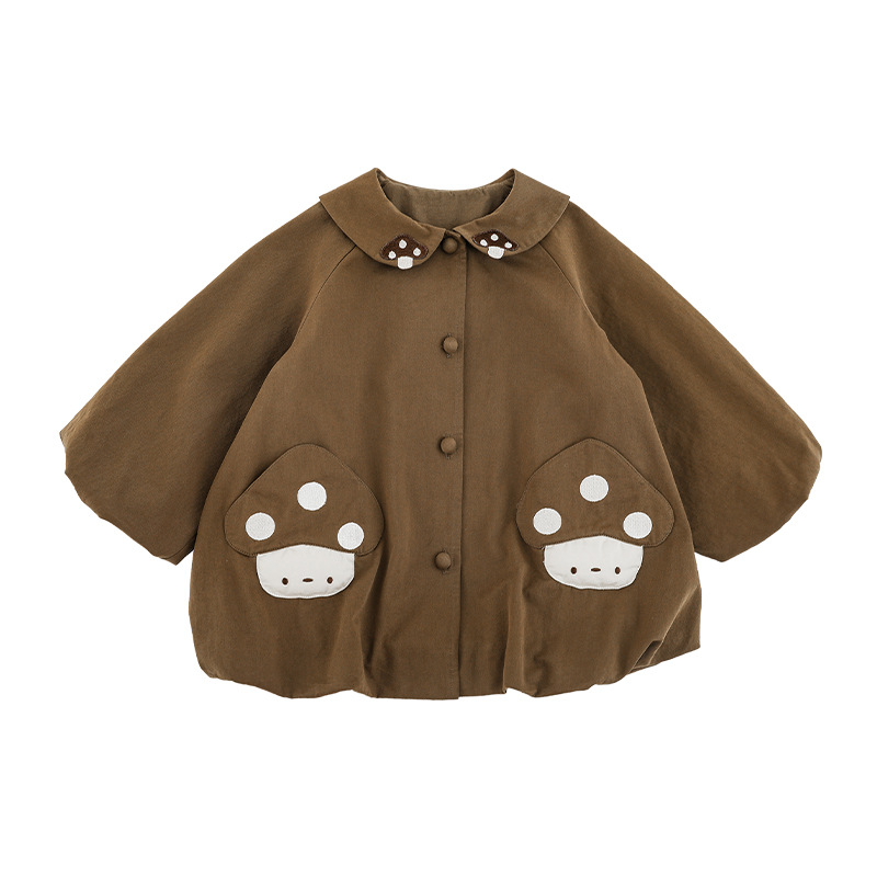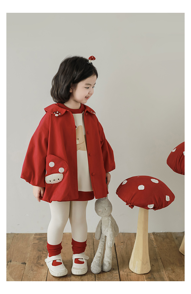 우립 한 소녀 인형 옷깃 코트 가을 어린이 귀여운 버섯 패치 작은 곰 인형 후드 코트스토어 가기