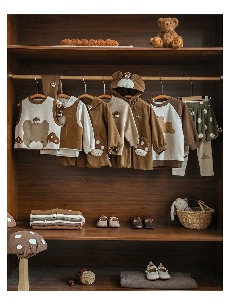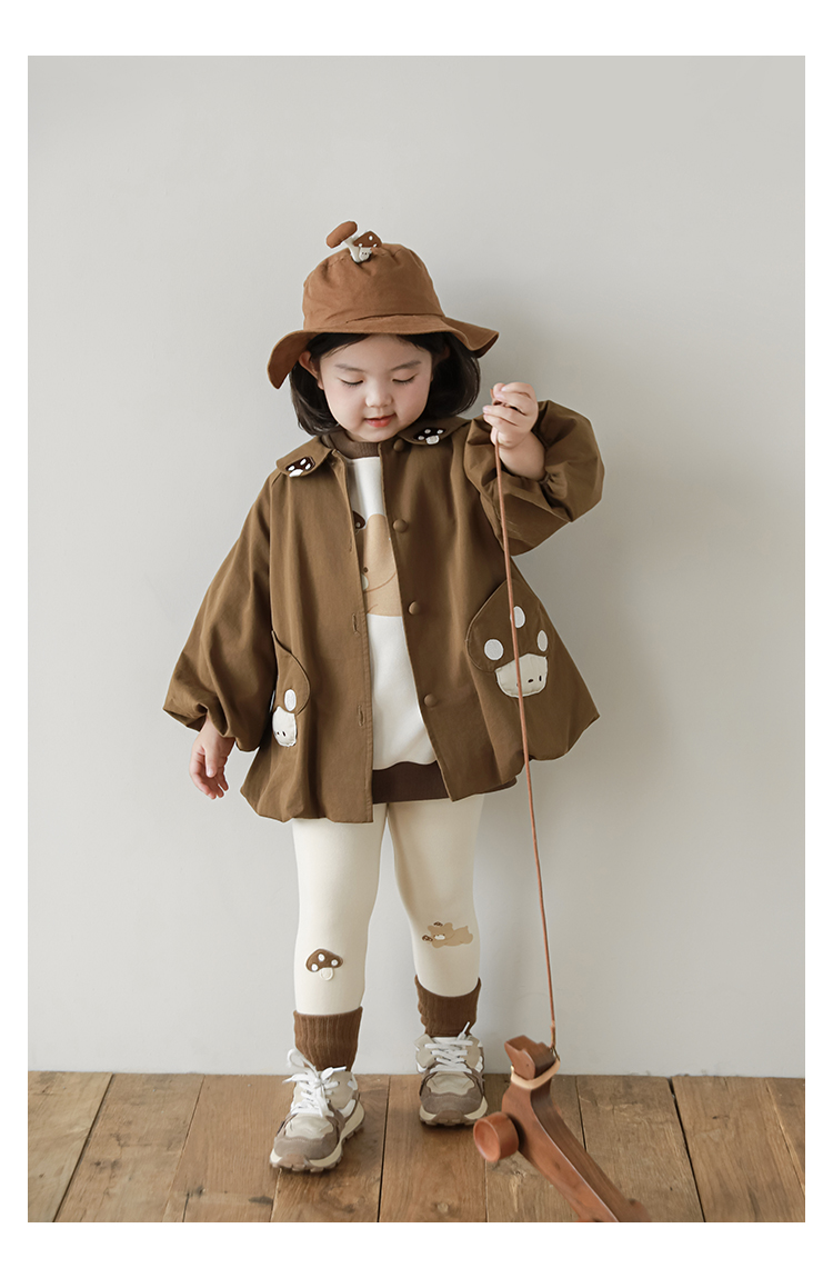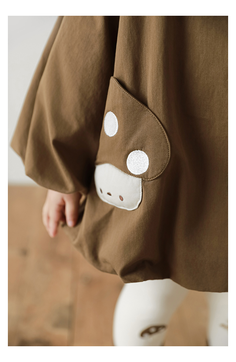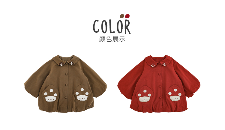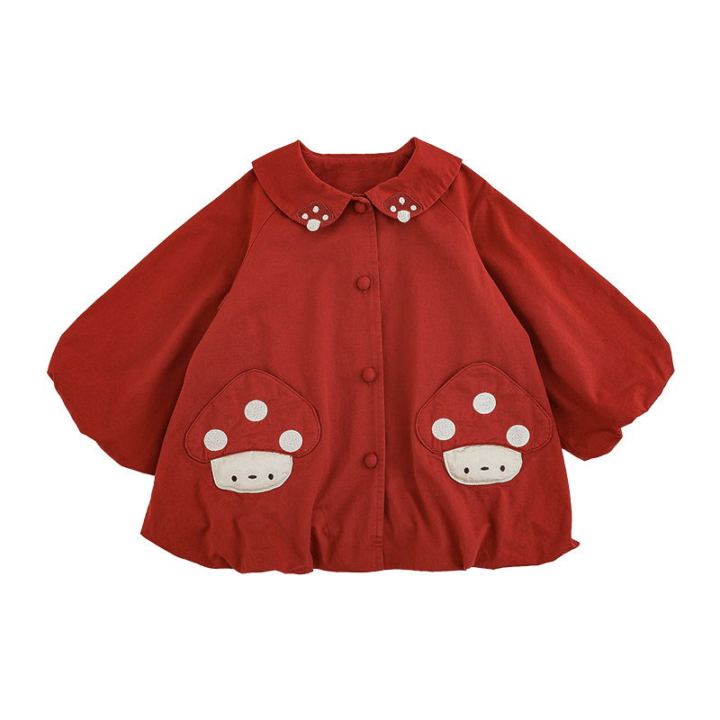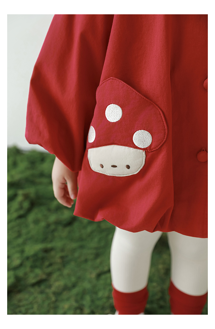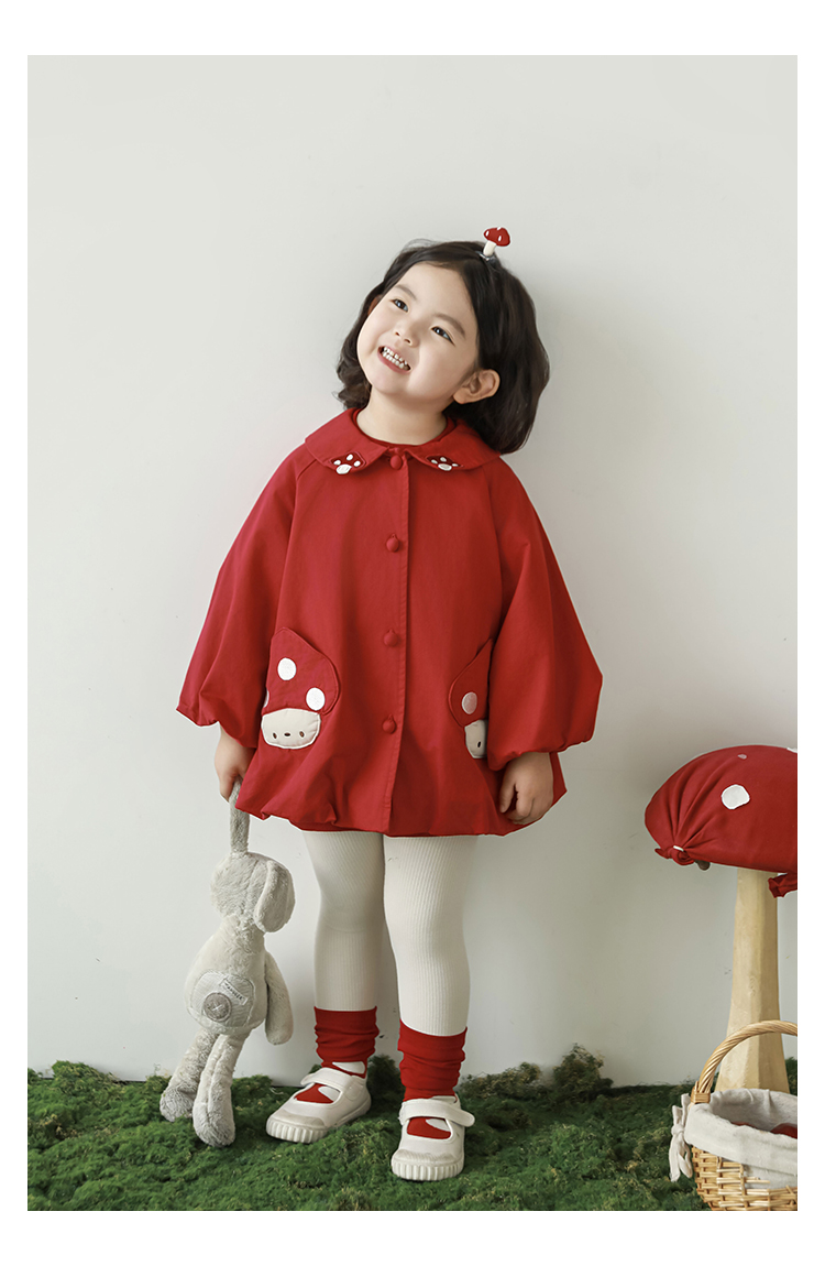우립 한 소녀 인형 옷깃 코트 가을 어린이 귀여운 버섯 패치 작은 곰 인형 후드 코트스토어 가기