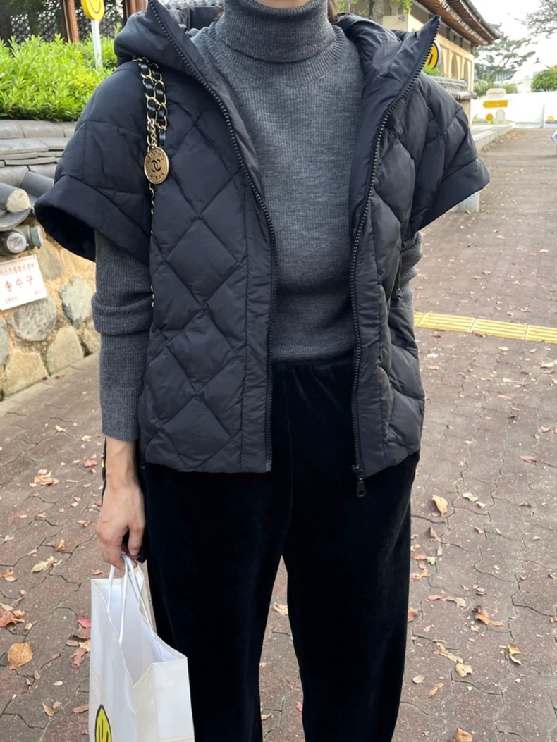 가을과 겨울 2024 조끼 여성 짧은 느슨한 후드 외부 조끼 착용스토어 가기