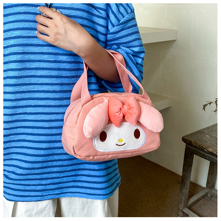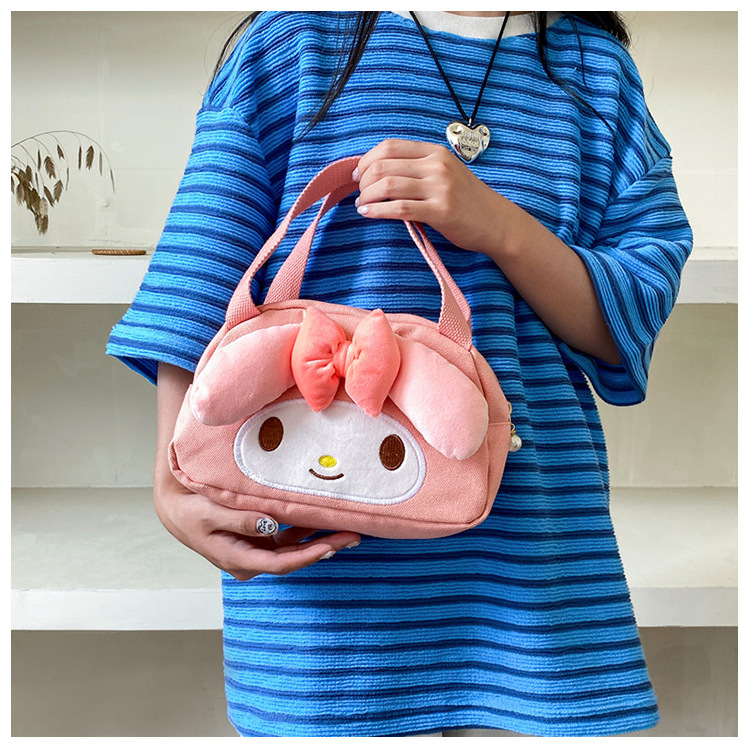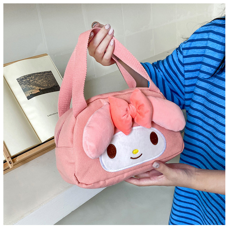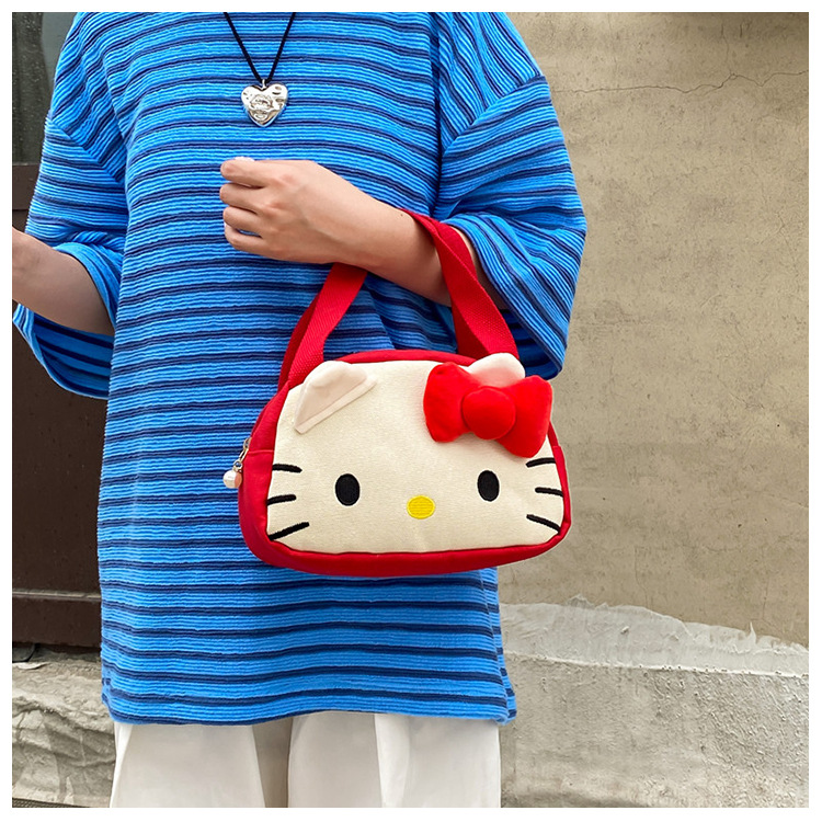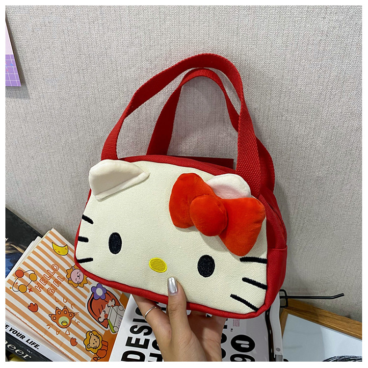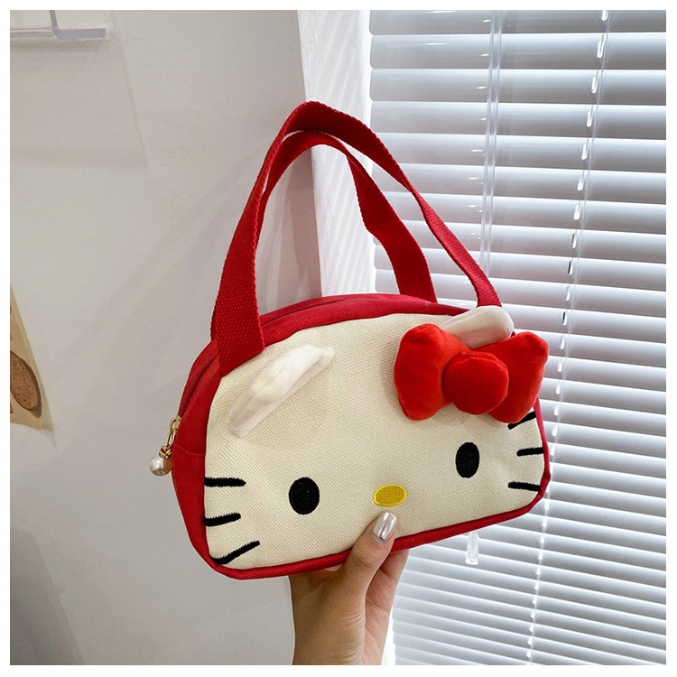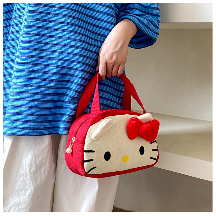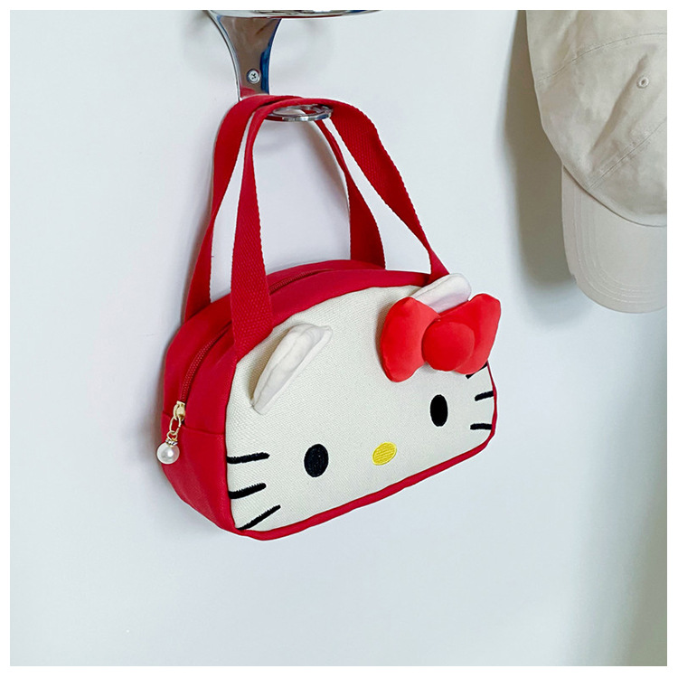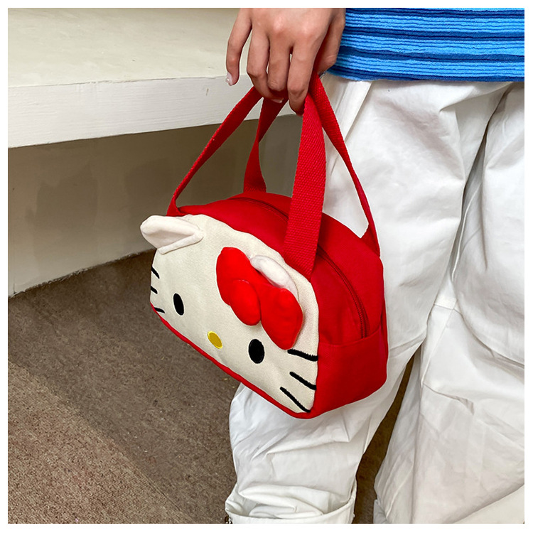 메를로 KT 고양이 핸드 헬드 캔버스 대용량 작업 핸드백 만화 헝겊 가방 패션 자수 화장품 가방