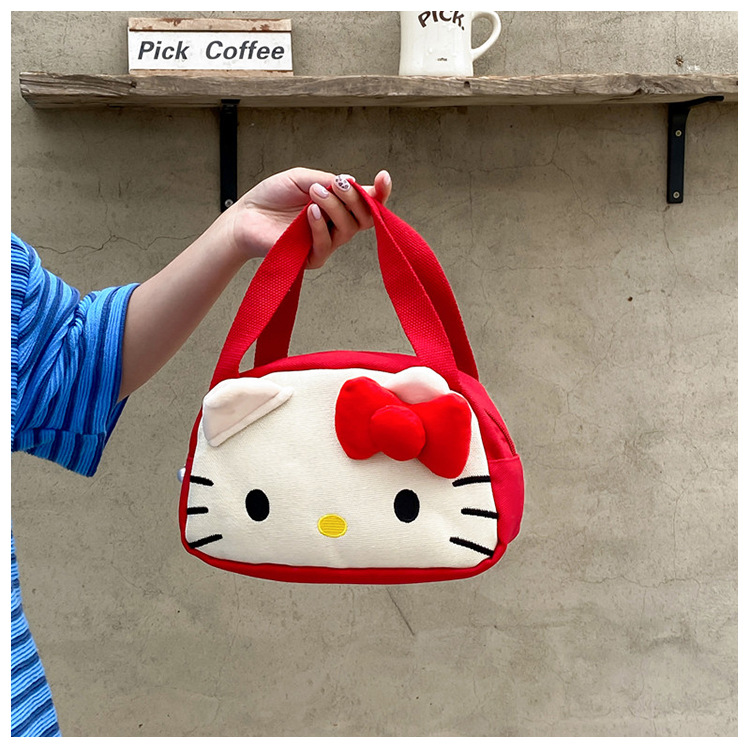 메를로 KT 고양이 핸드 헬드 캔버스 대용량 작업 핸드백 만화 헝겊 가방 패션 자수 화장품 가방스토어 가기