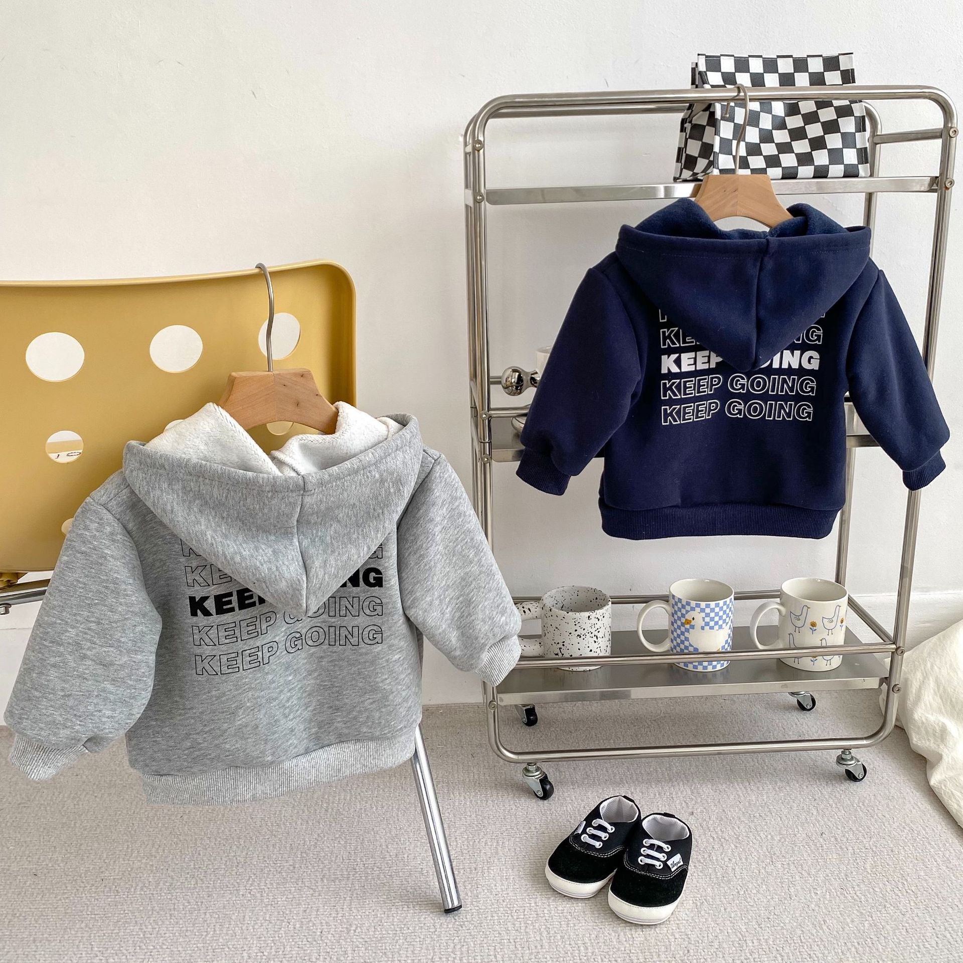 INS 가을/겨울 뉴 보이즈 기모 후드 재킷 편지 카디건 스웨터 소년의 아기 유행 재킷 코트스토어 가기