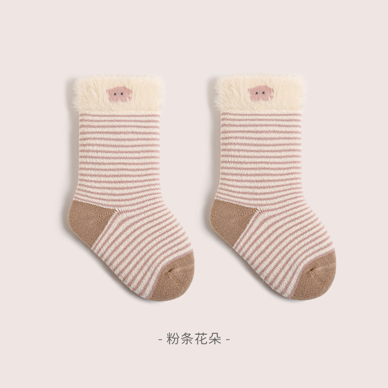 가을 겨울 두꺼운 아기 양말 신생아 A급 중목 양말 밍크 벨벳 어린이 무봉제 루즈핏 양말